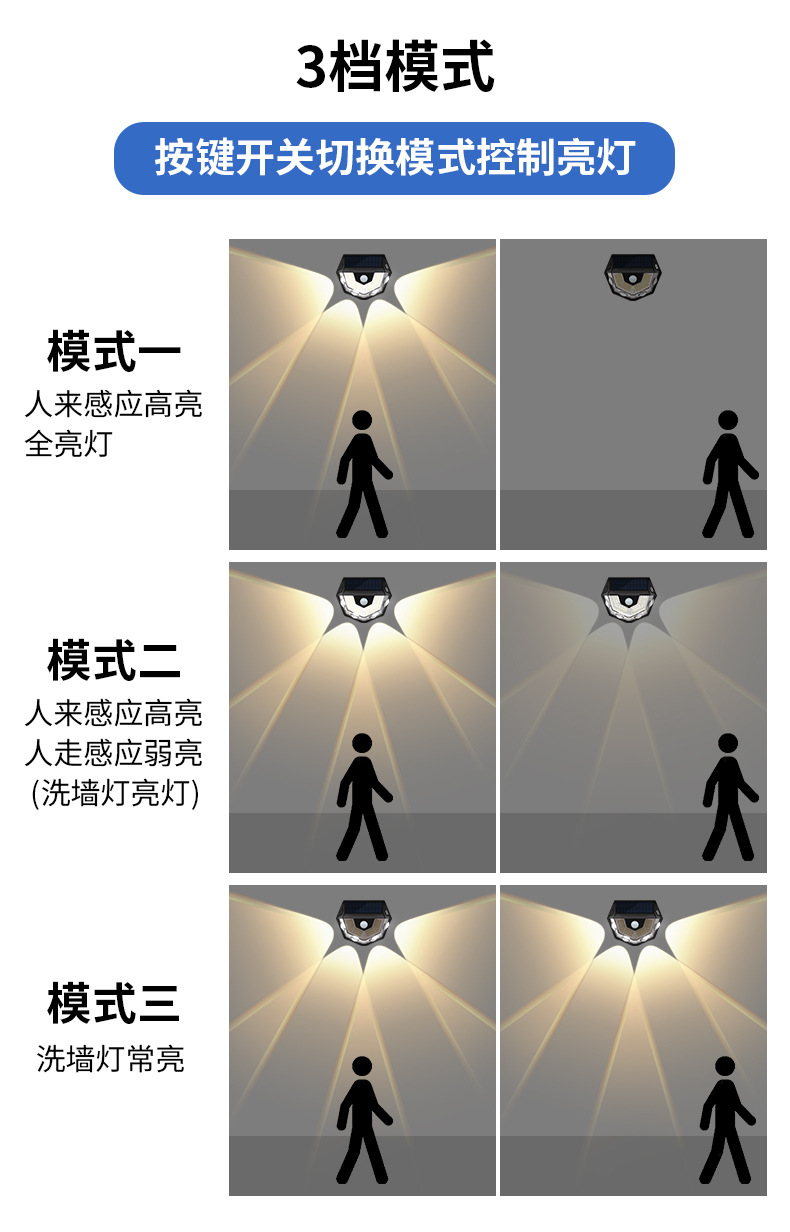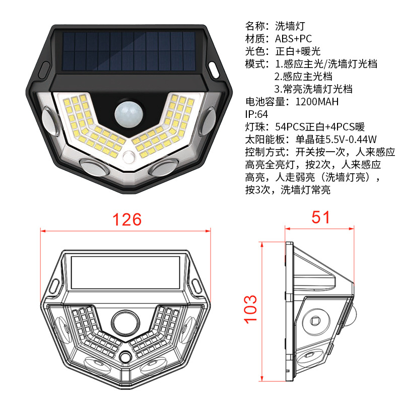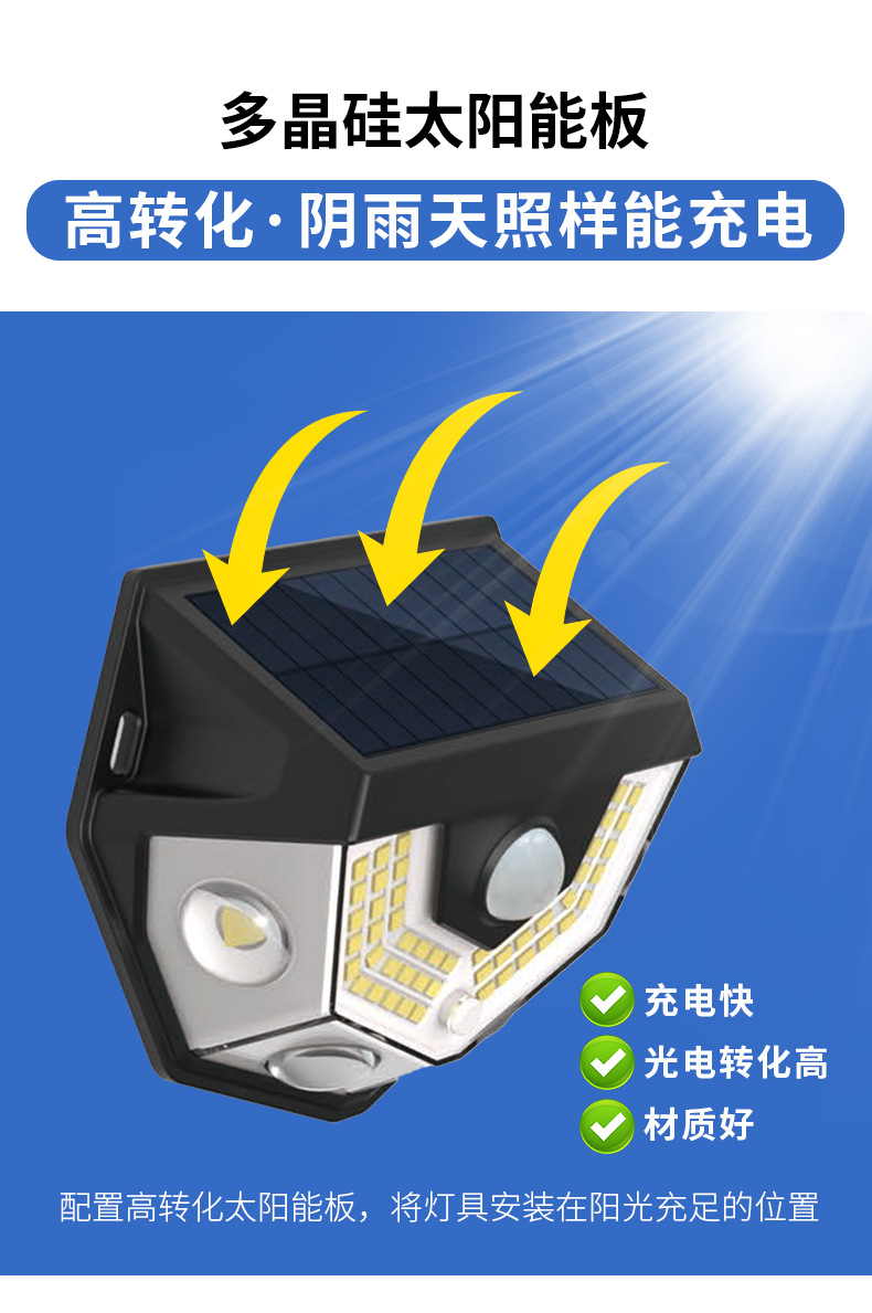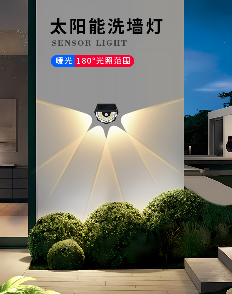 국경을 넘는 태양광 벽등 야외 정원 장식 가정용 실외 볼록 렌즈 인체 감지 벽등 적외선스토어 가기