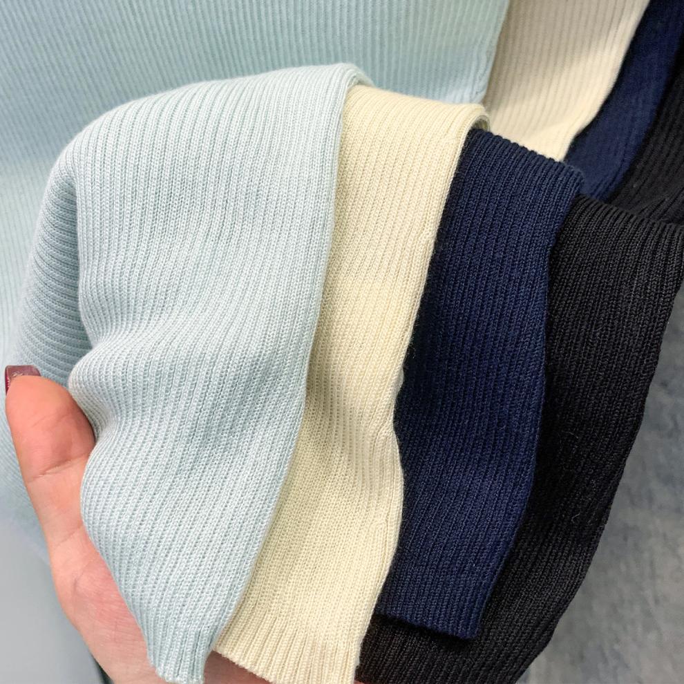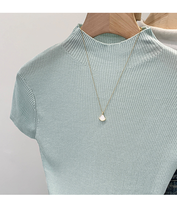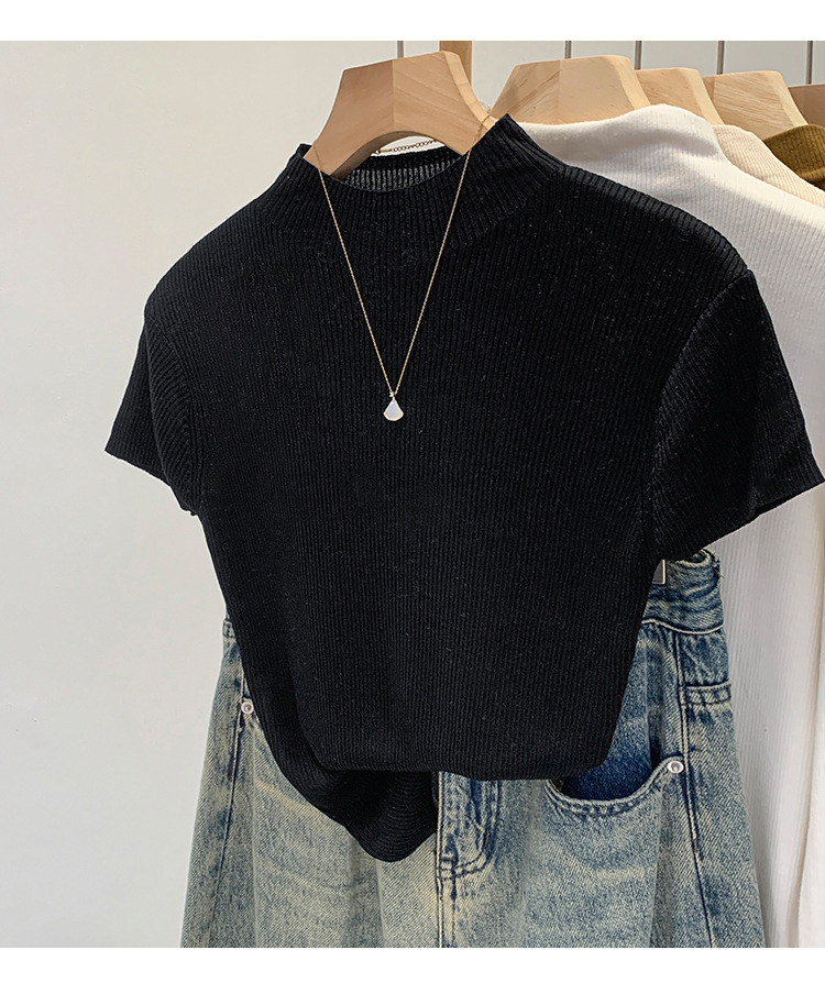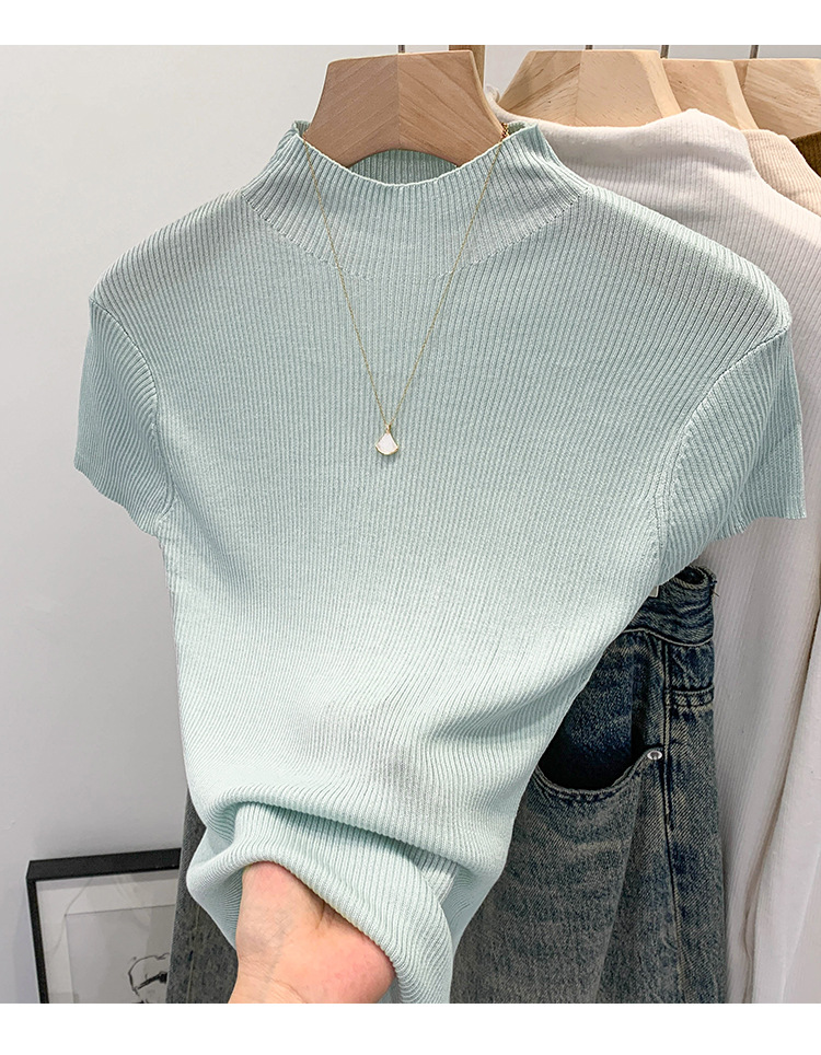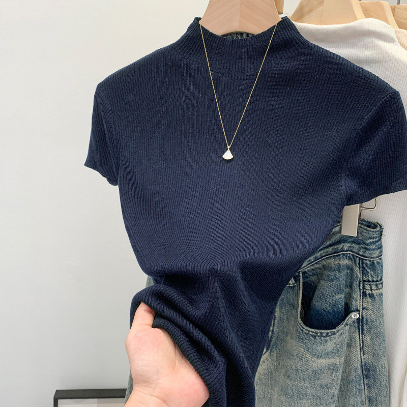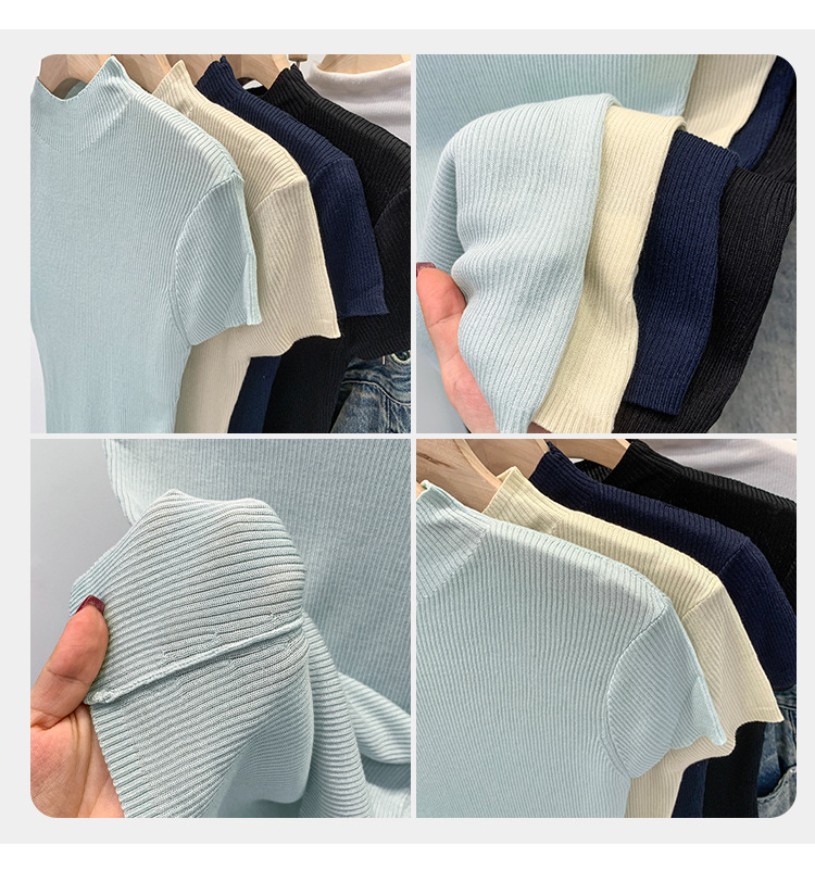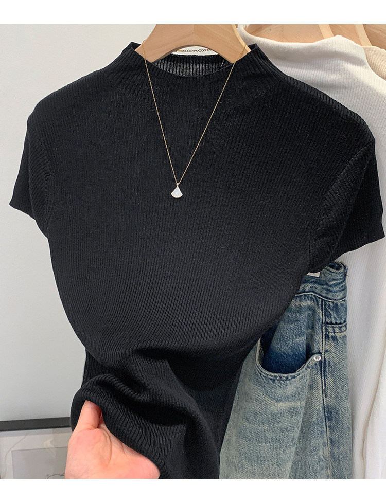 공장 직접 판매 Lyocell Tencel 프렌치 하프 터틀넥 오른쪽 어깨 반팔 스웨터 여성 통근 여름 새 스타일 싱글웨어스토어 가기