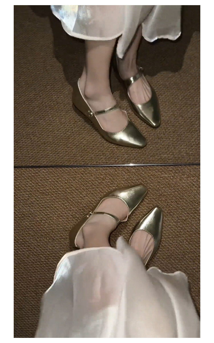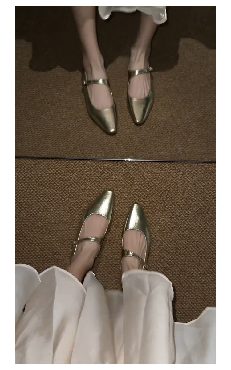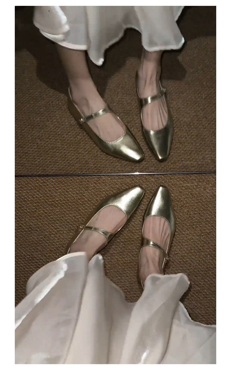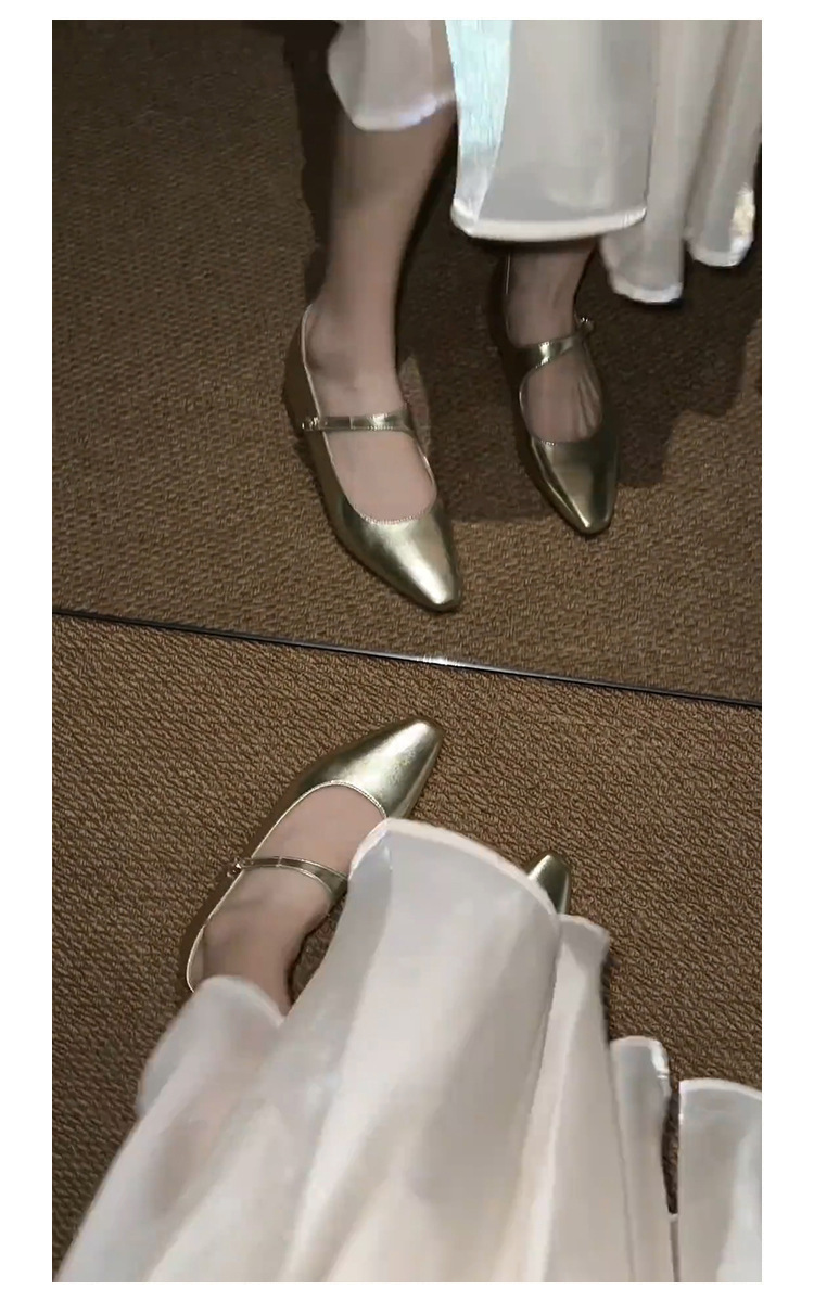 양가죽 버전 ~ 프렌치 골드 포인티드 토 메리제인 슈즈, 여성용 플랫 슈즈, 여성용 키높이 슈즈스토어 가기