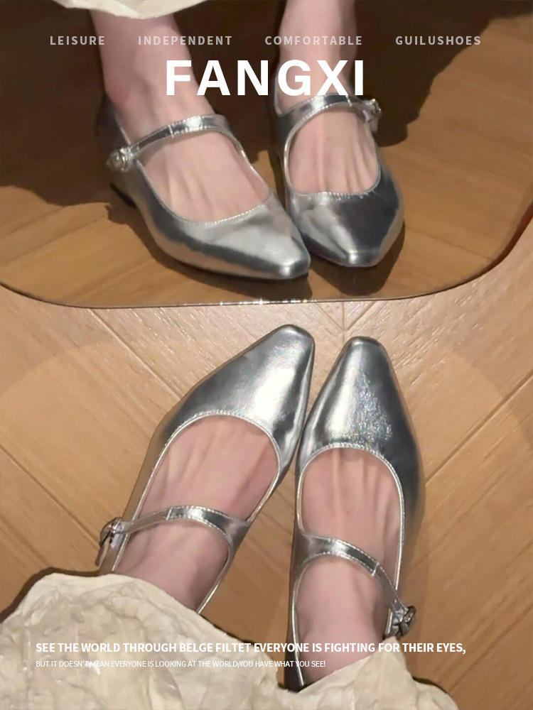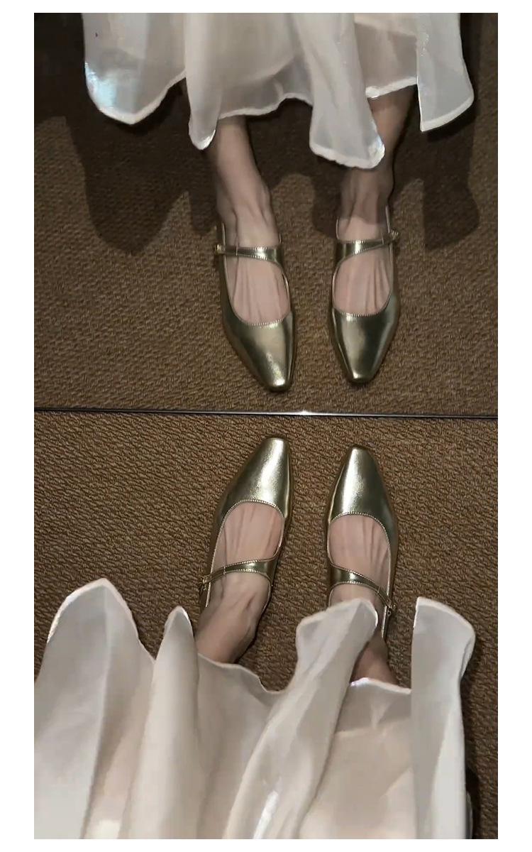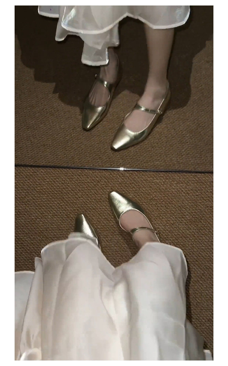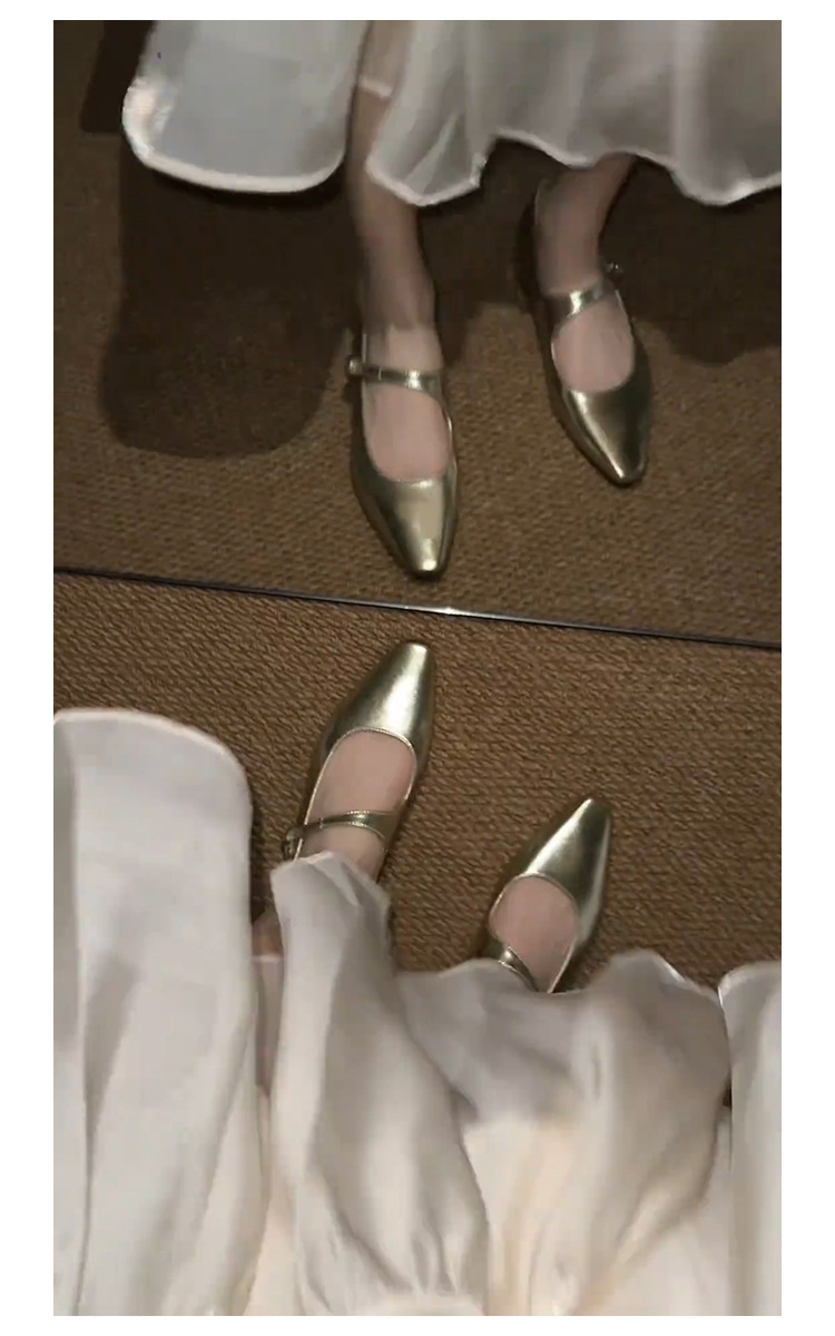 양가죽 버전 ~ 프렌치 골드 포인티드 토 메리제인 슈즈, 여성용 플랫 슈즈, 여성용 키높이 슈즈스토어 가기