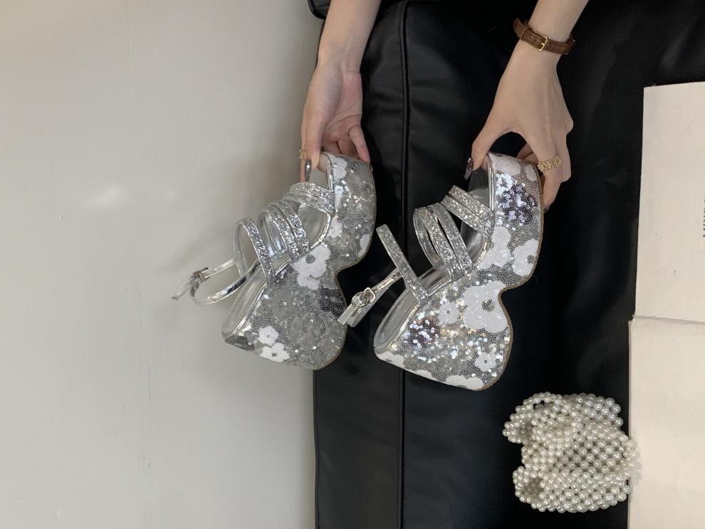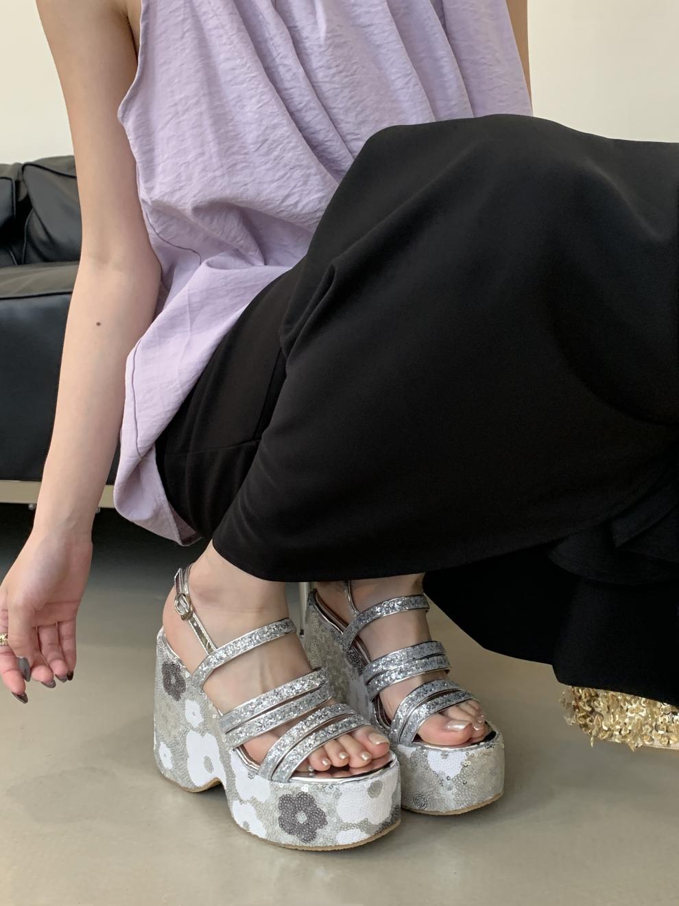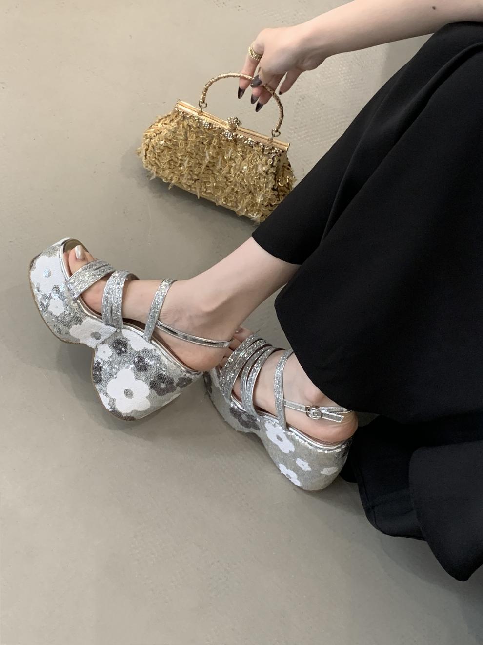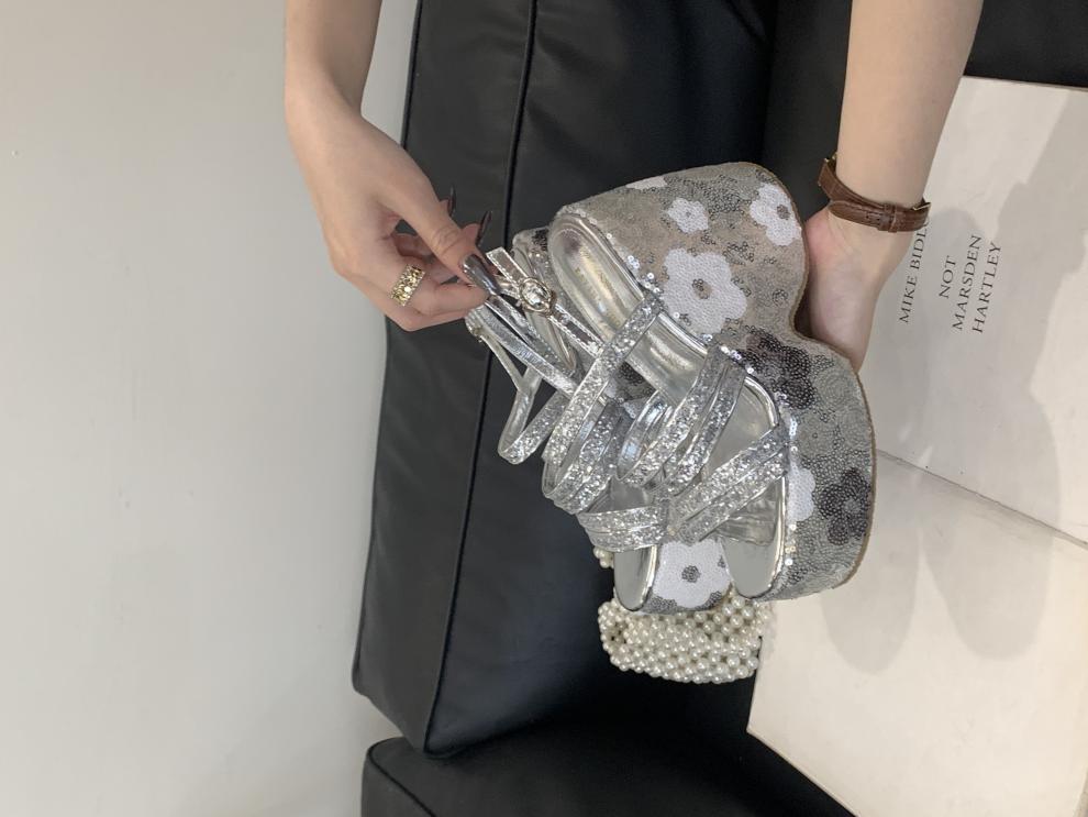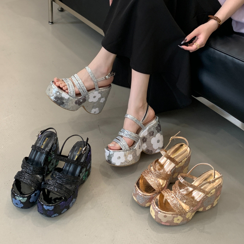 2025 여름 새로운 패션 작은 웨지 플랫폼 샌들 여성 오픈 발가락 실버 슈퍼 하이힐 여성 신발스토어 가기