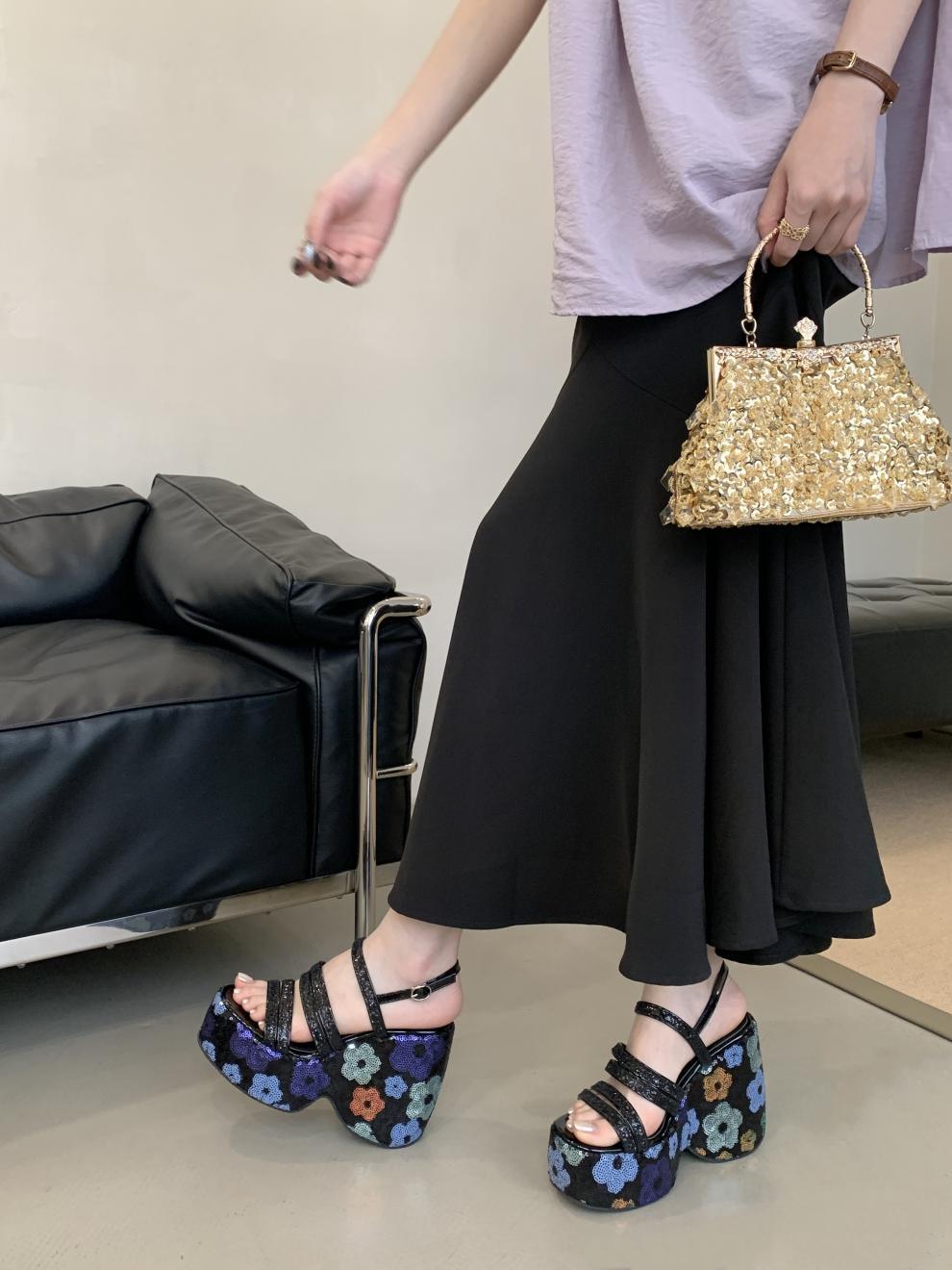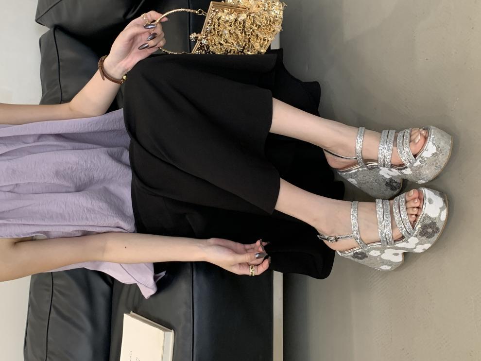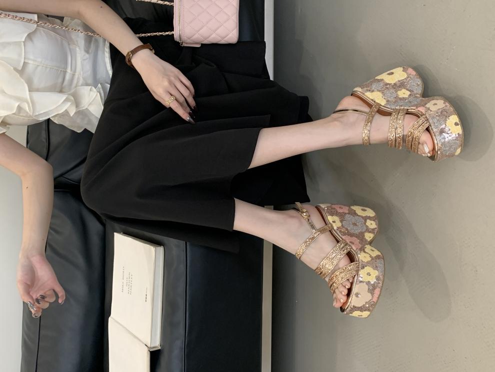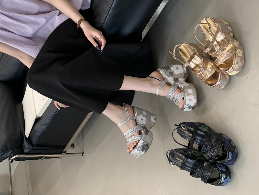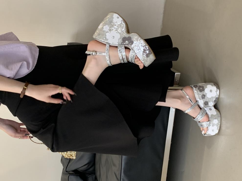 2025 여름 새로운 패션 작은 웨지 플랫폼 샌들 여성 오픈 발가락 실버 슈퍼 하이힐 여성 신발스토어 가기