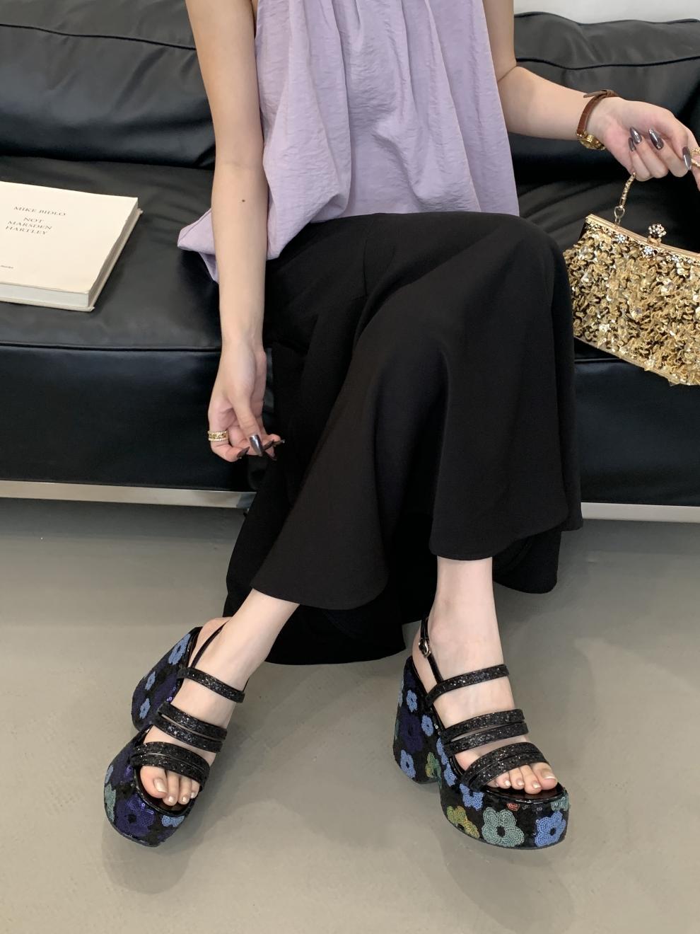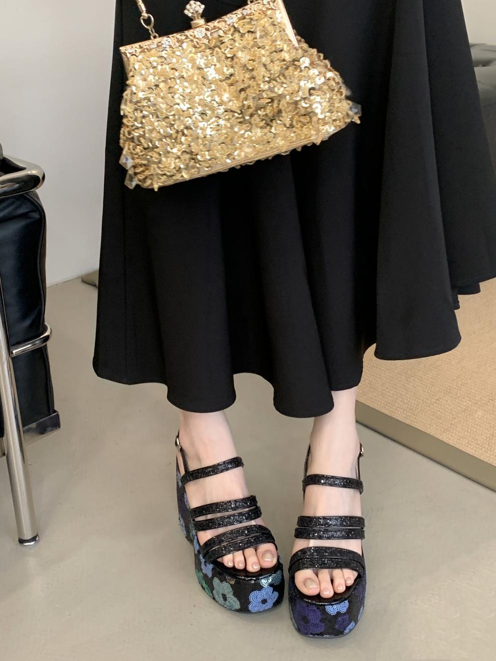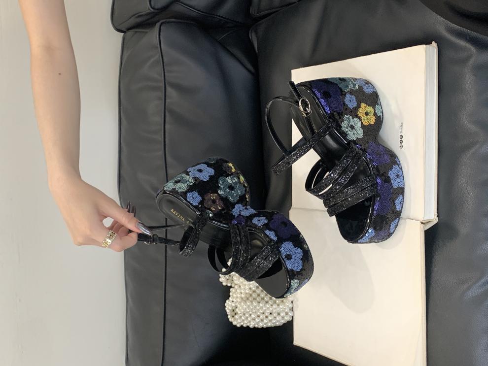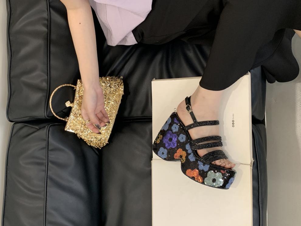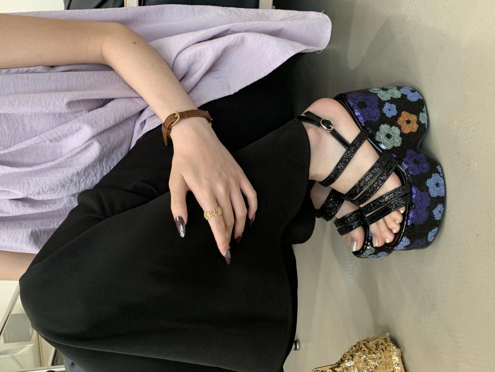 2025 여름 새로운 패션 작은 웨지 플랫폼 샌들 여성 오픈 발가락 실버 슈퍼 하이힐 여성 신발스토어 가기