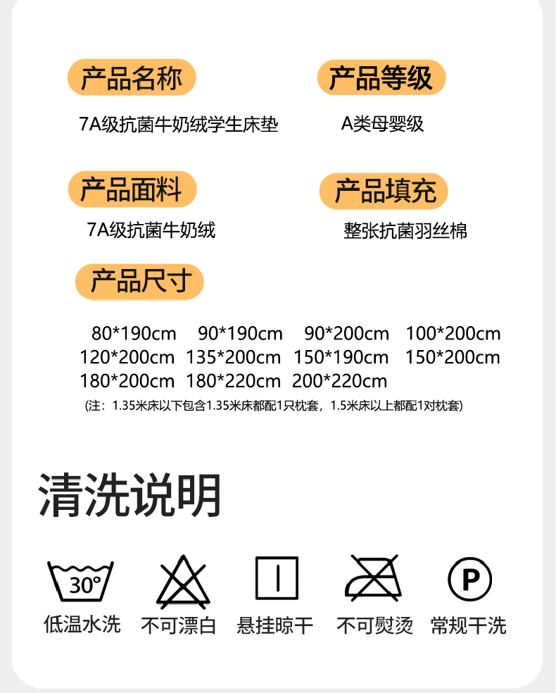 • ↤ ↤ ↤ 90x190cm 밀크 벨벳 매트리스 + 베갯잇 1개 ↞↦↦