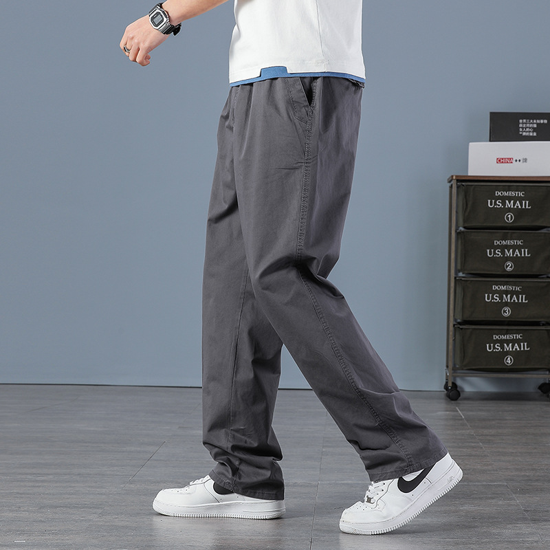 국경 간 남성 바지 여름 얇은 캐주얼 바지 플러스 사이즈 잡힌 바지 유럽 크기 버전 느슨한 바지 코튼 스트레이트 실린더 팔꿈치 허리