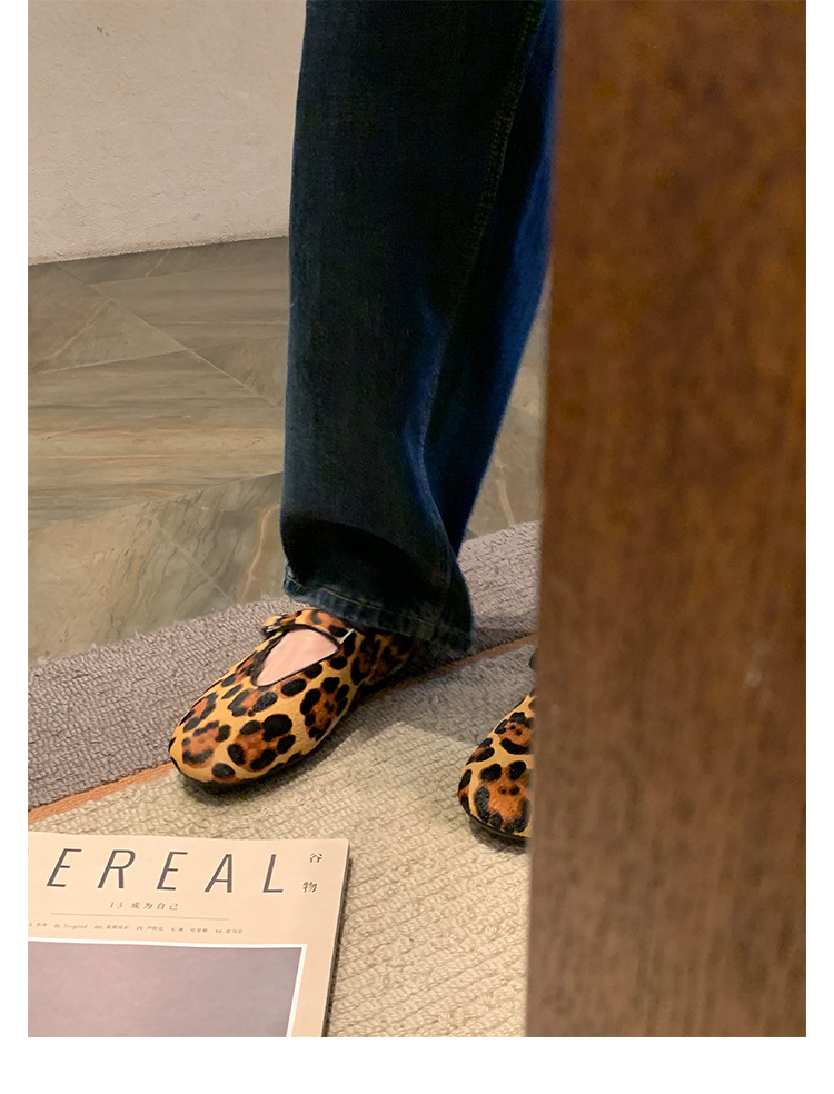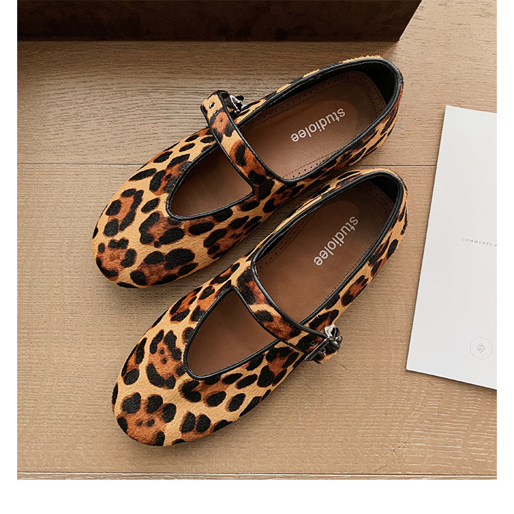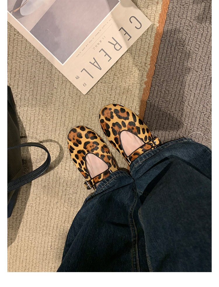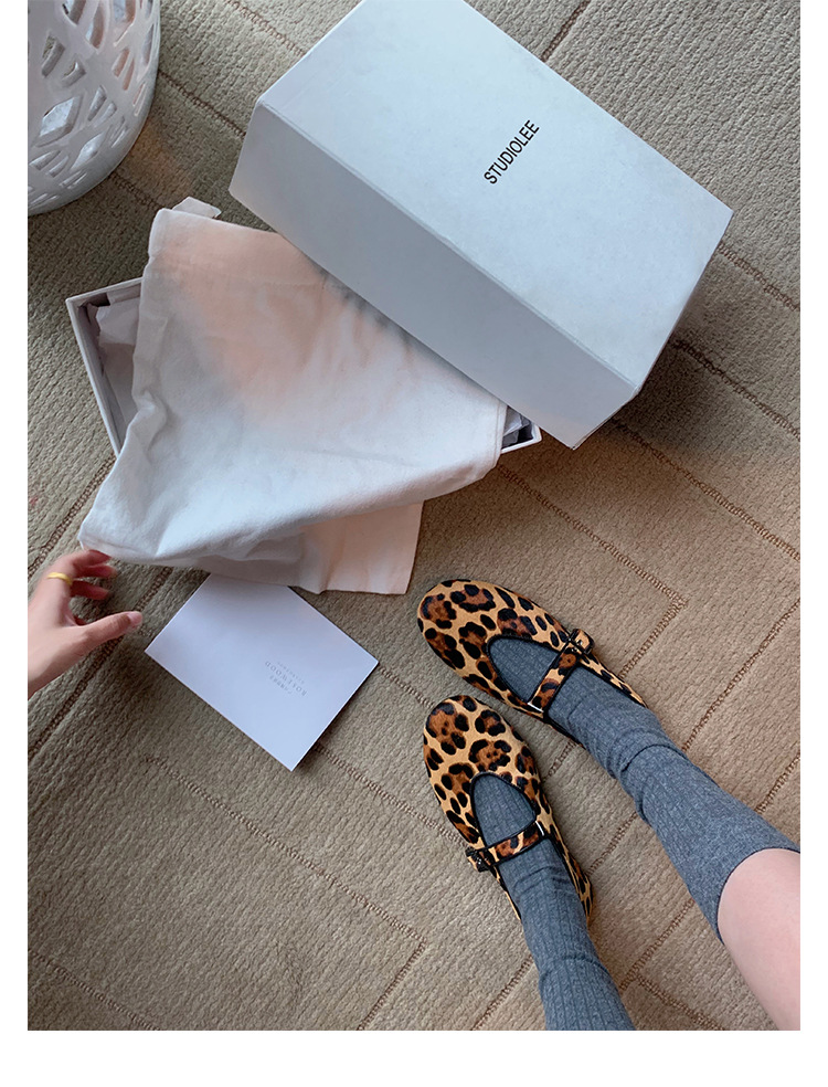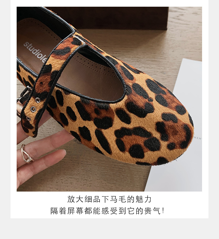 양가죽 버전 ~ 5CM 이내 키높이 여성화, 말털, 연령감소, 둥근코, 로우힐, 다용도 레오파드 프린트 메리제인 슈즈스토어 가기