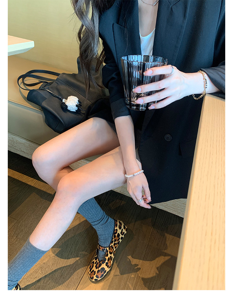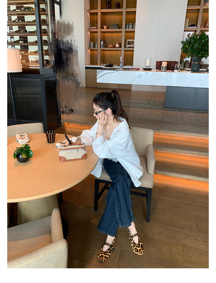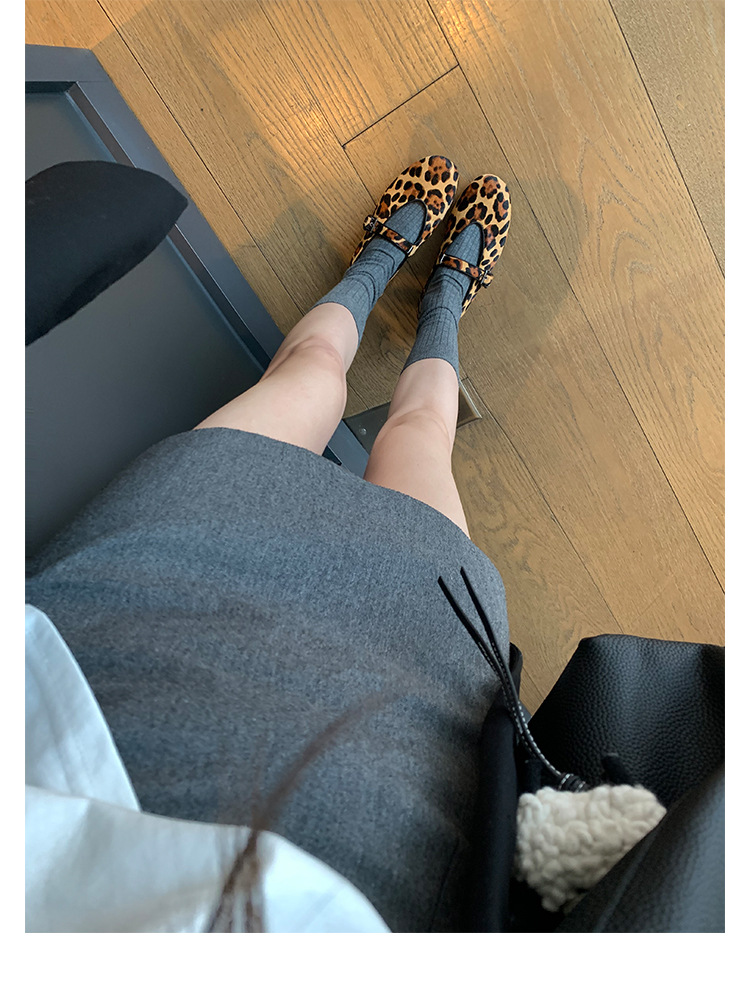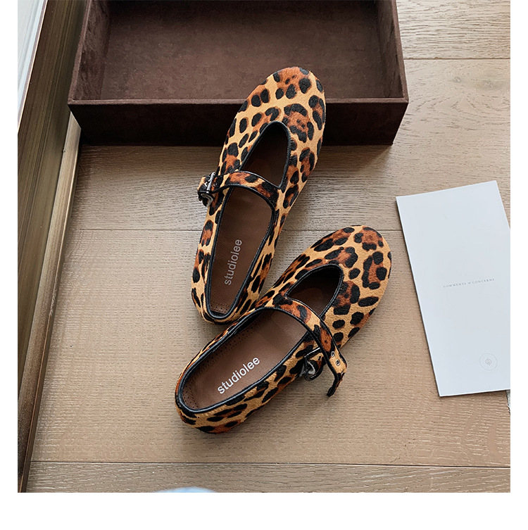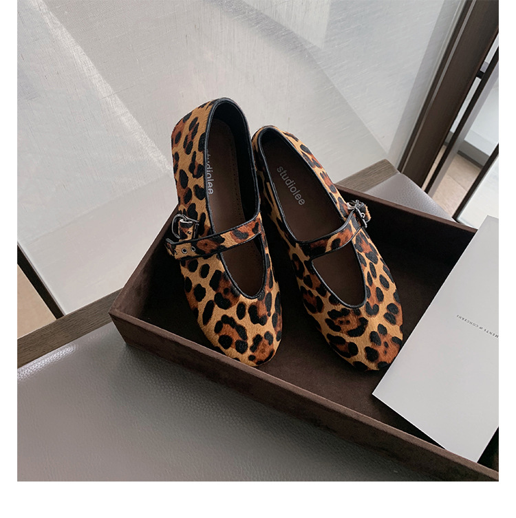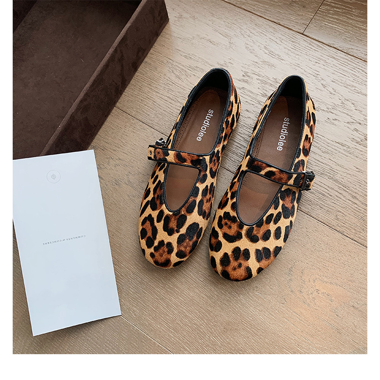 양가죽 버전 ~ 5CM 이내 키높이 여성화, 말털, 연령감소, 둥근코, 로우힐, 다용도 레오파드 프린트 메리제인 슈즈스토어 가기