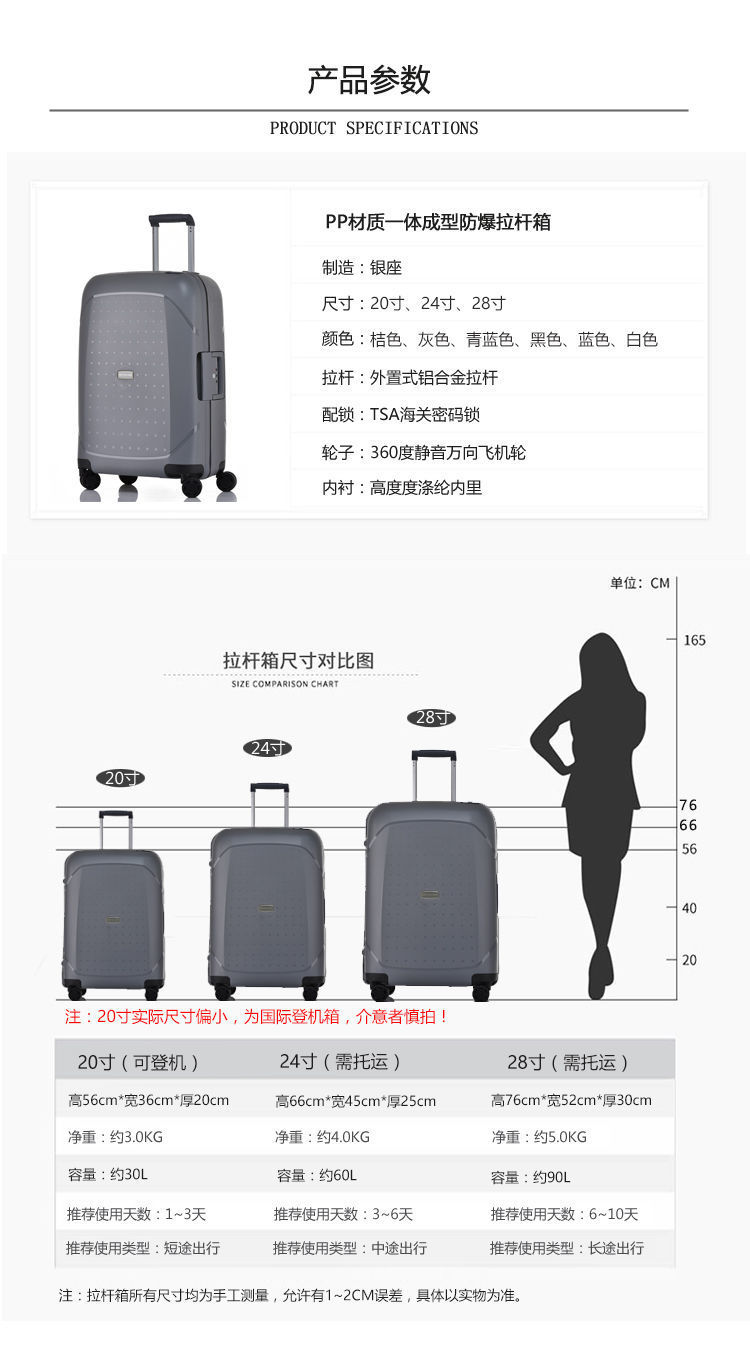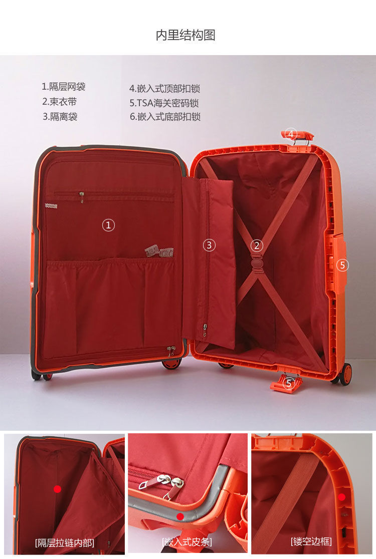 여성용 트롤리 케이스 PP 소재 초경량 내구성 여행 가방 20 비밀번호 소형 탑승 케이스 남성용 24