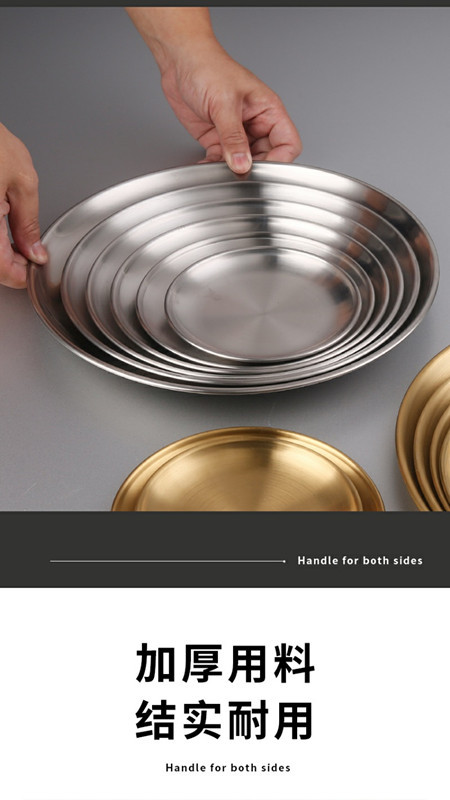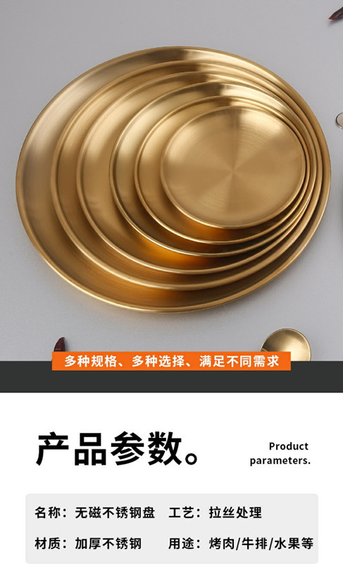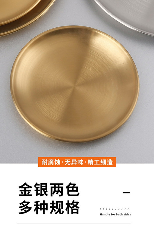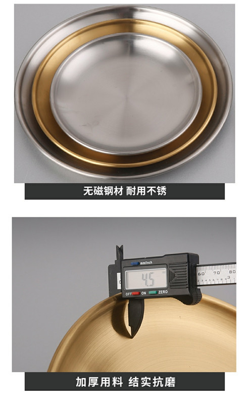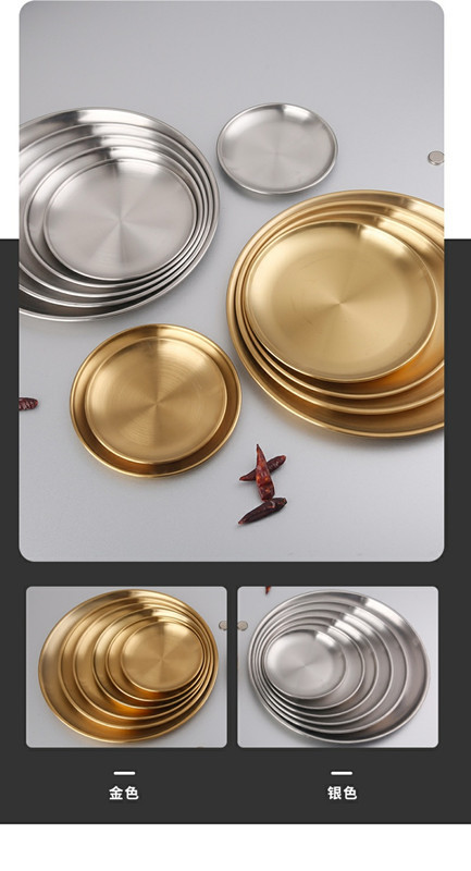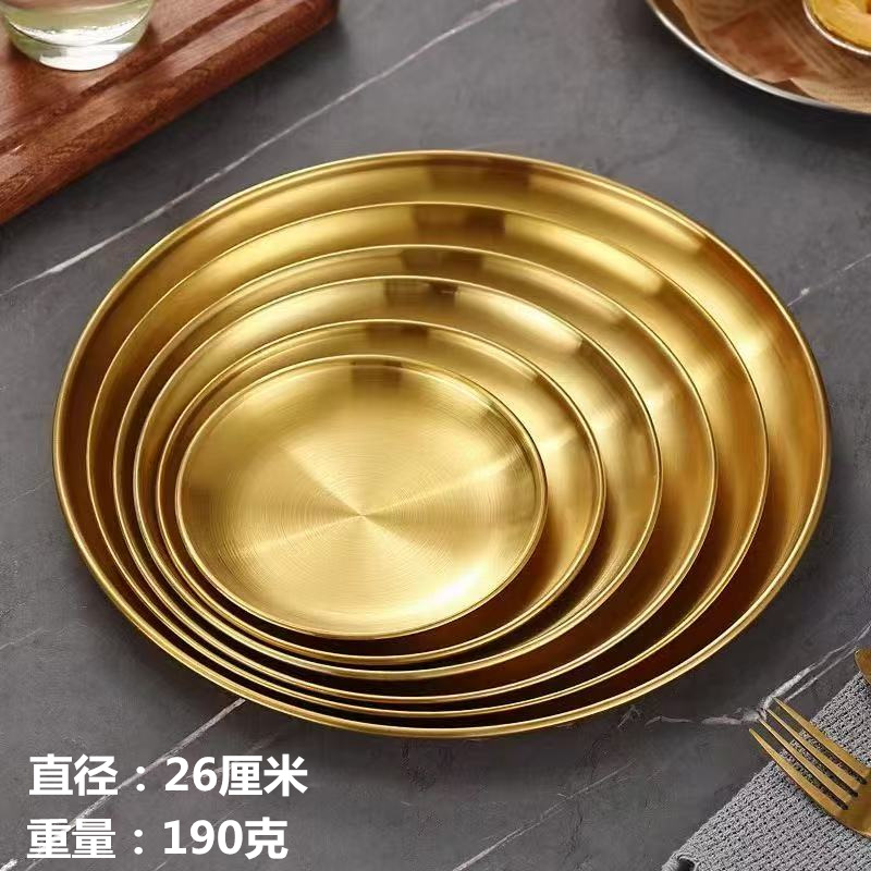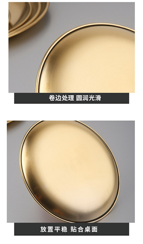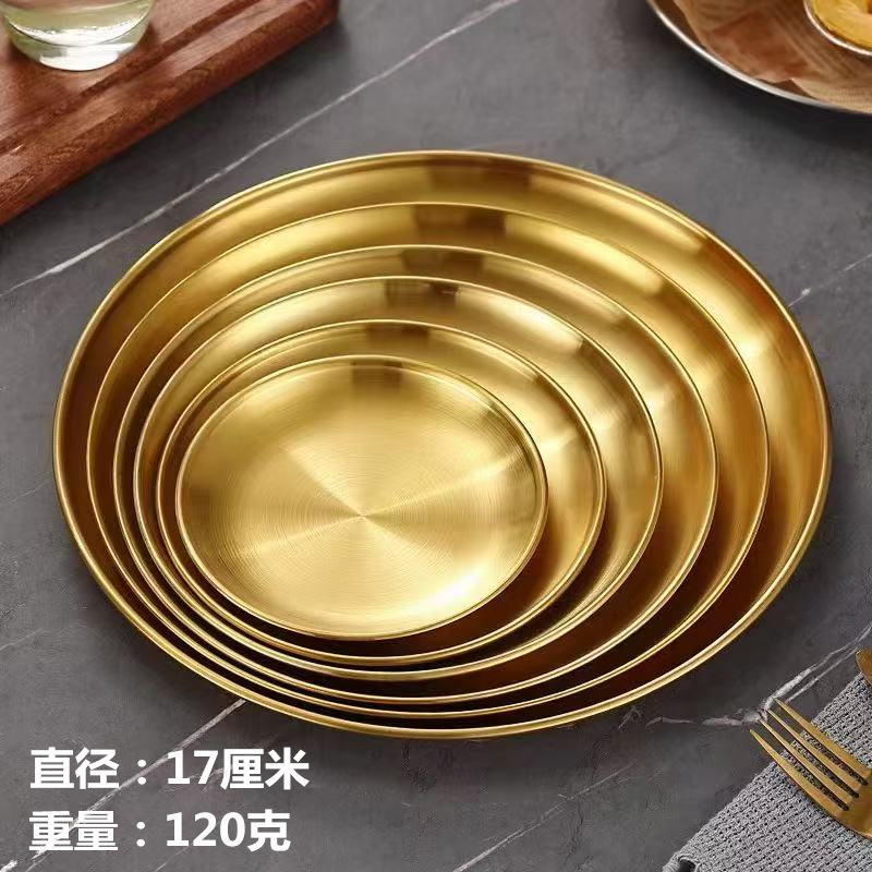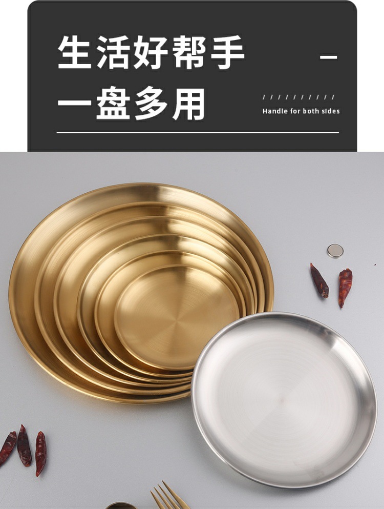 한국 스테인레스 스틸 바베큐 접시 가정용 데스크탑 잔류 뼈 접시 황금 원형 접시 과일 접시 원형 스낵 트레이
