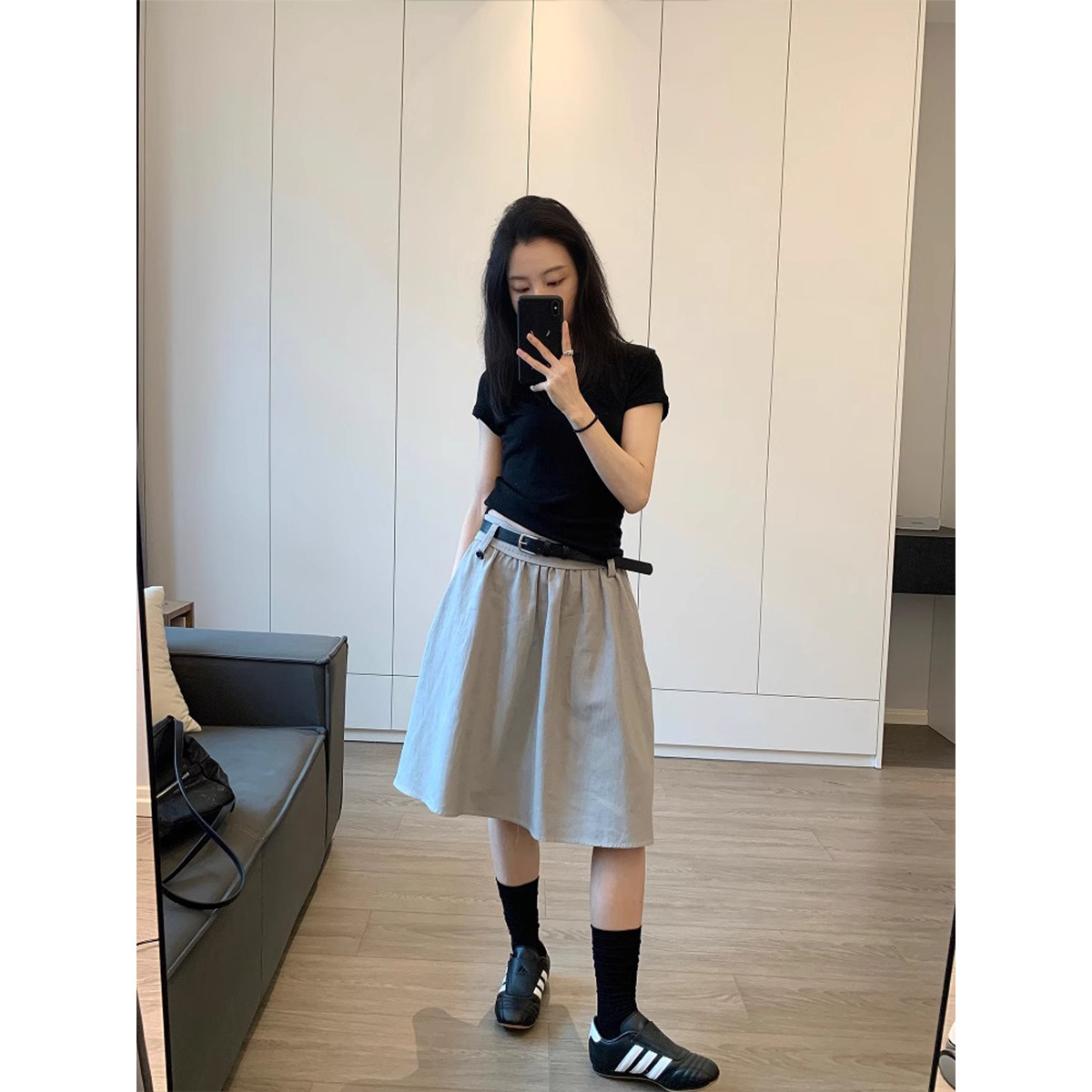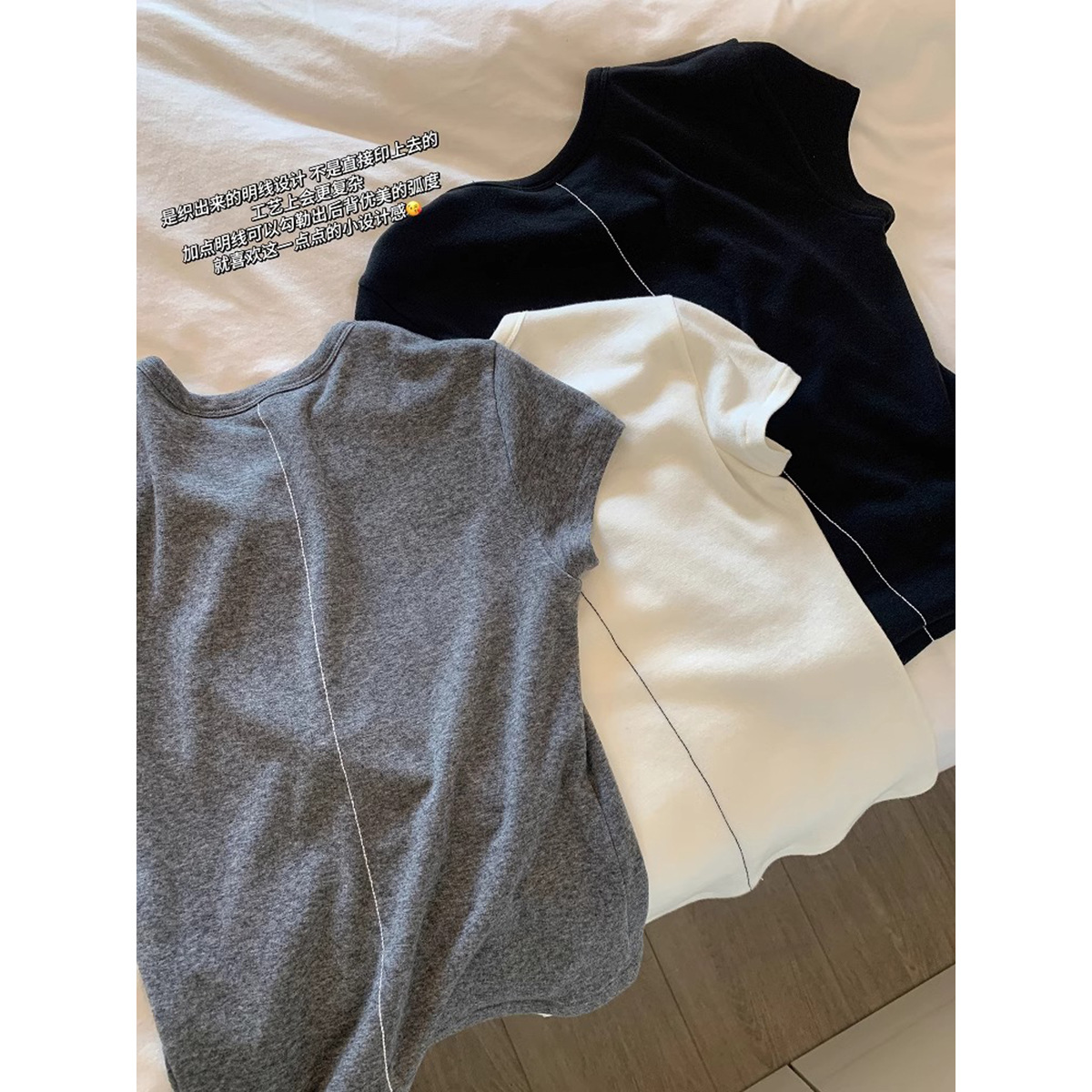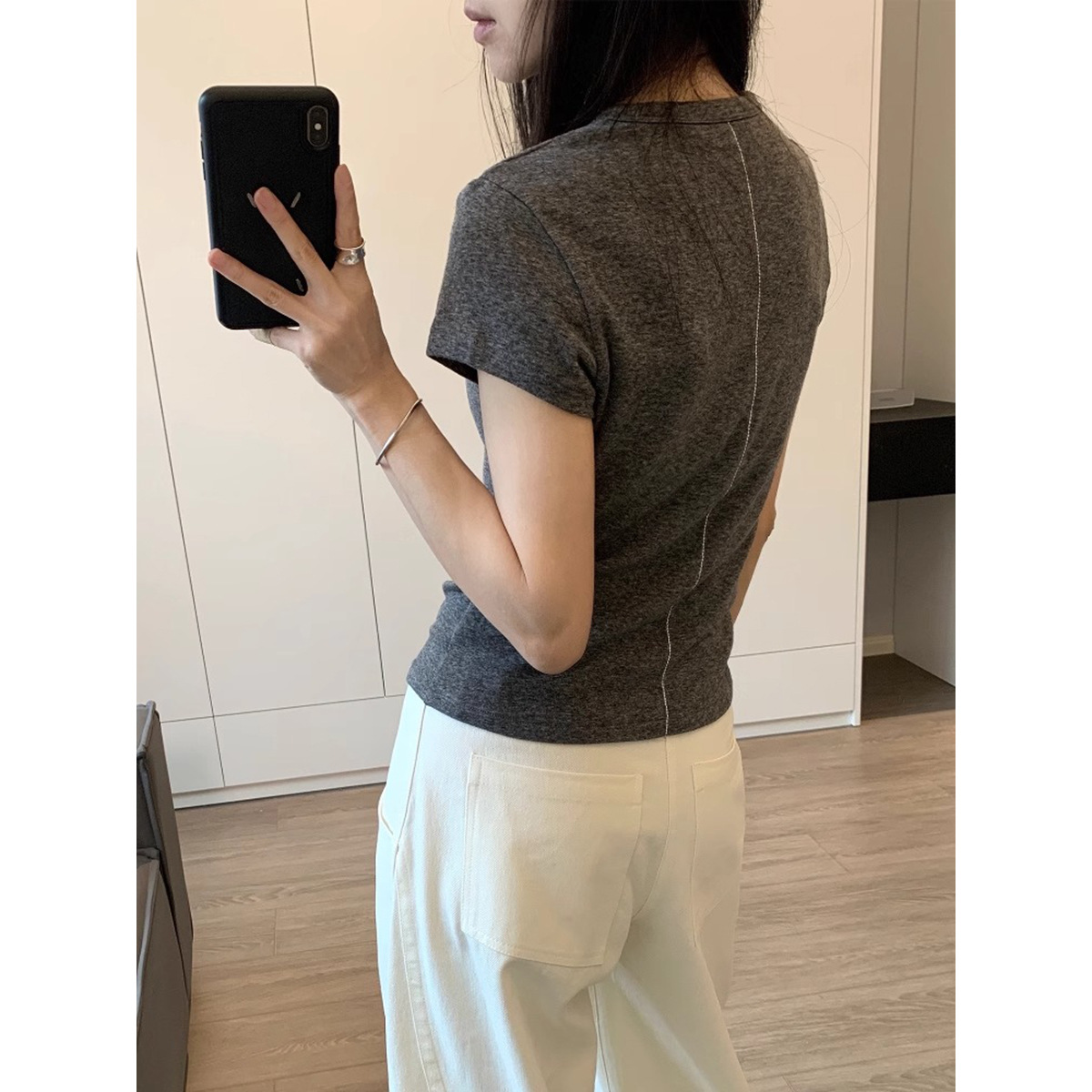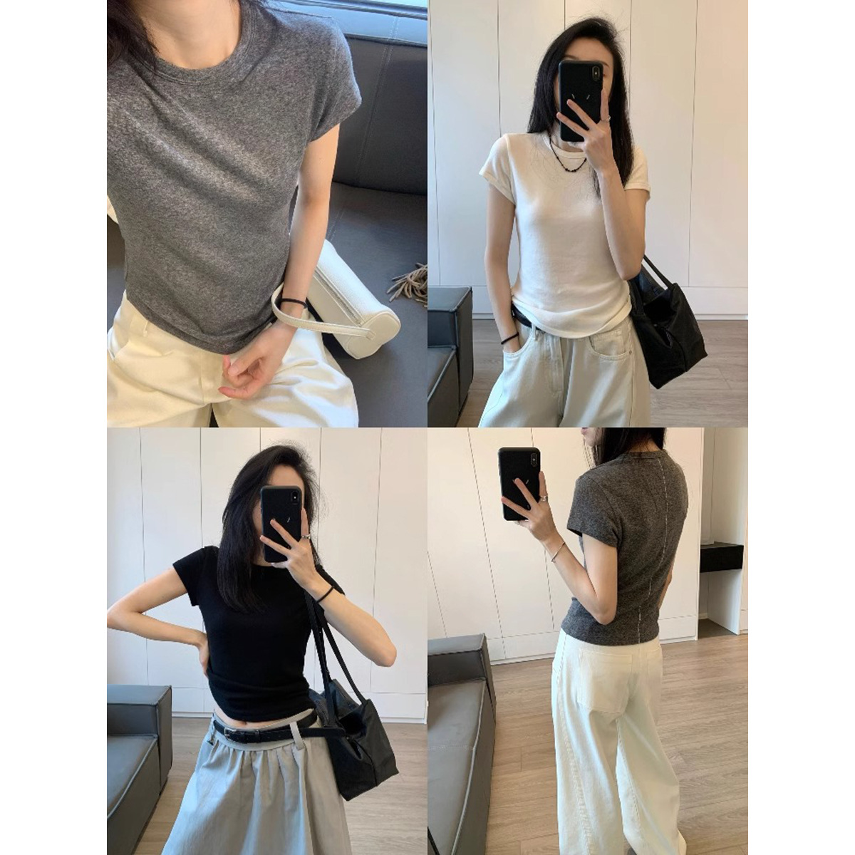3311 # Awencoat 어깨 반팔 티셔츠 여성용 여름 새 라운드 넥 높은 탄성 피부 친화적 인 슬리밍 탑스토어 가기