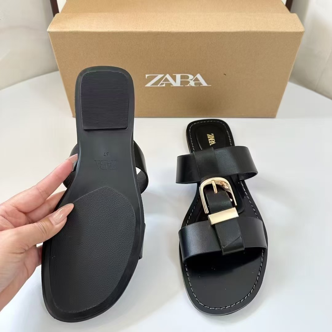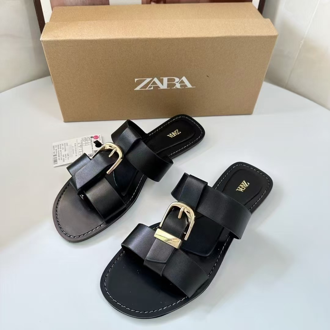 ZA 신상 2025 봄 플랫 샌들 여성 벨트 버클 유럽과 미국의 라운드 투 비치 슈즈 패션 아우터 슈즈스토어 가기