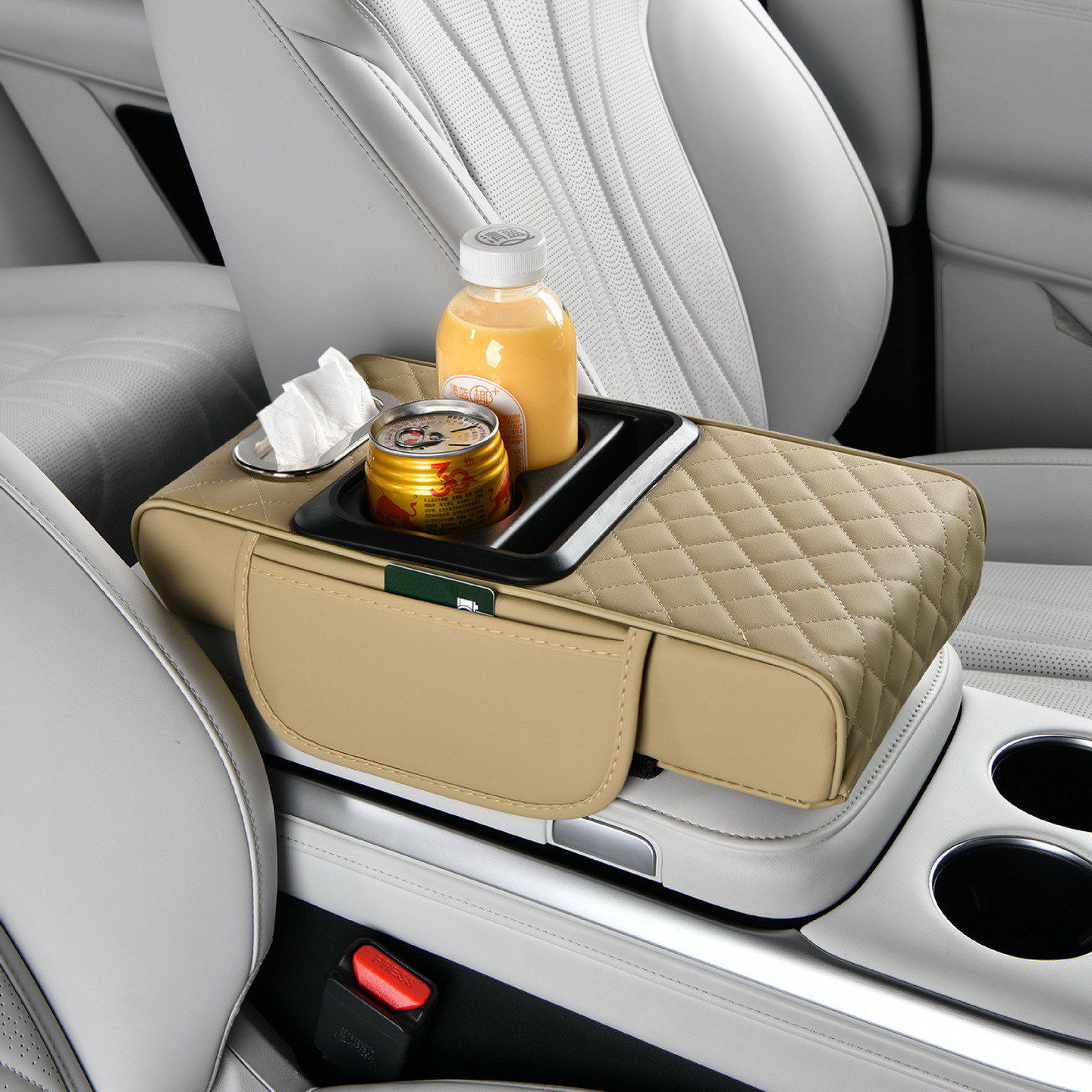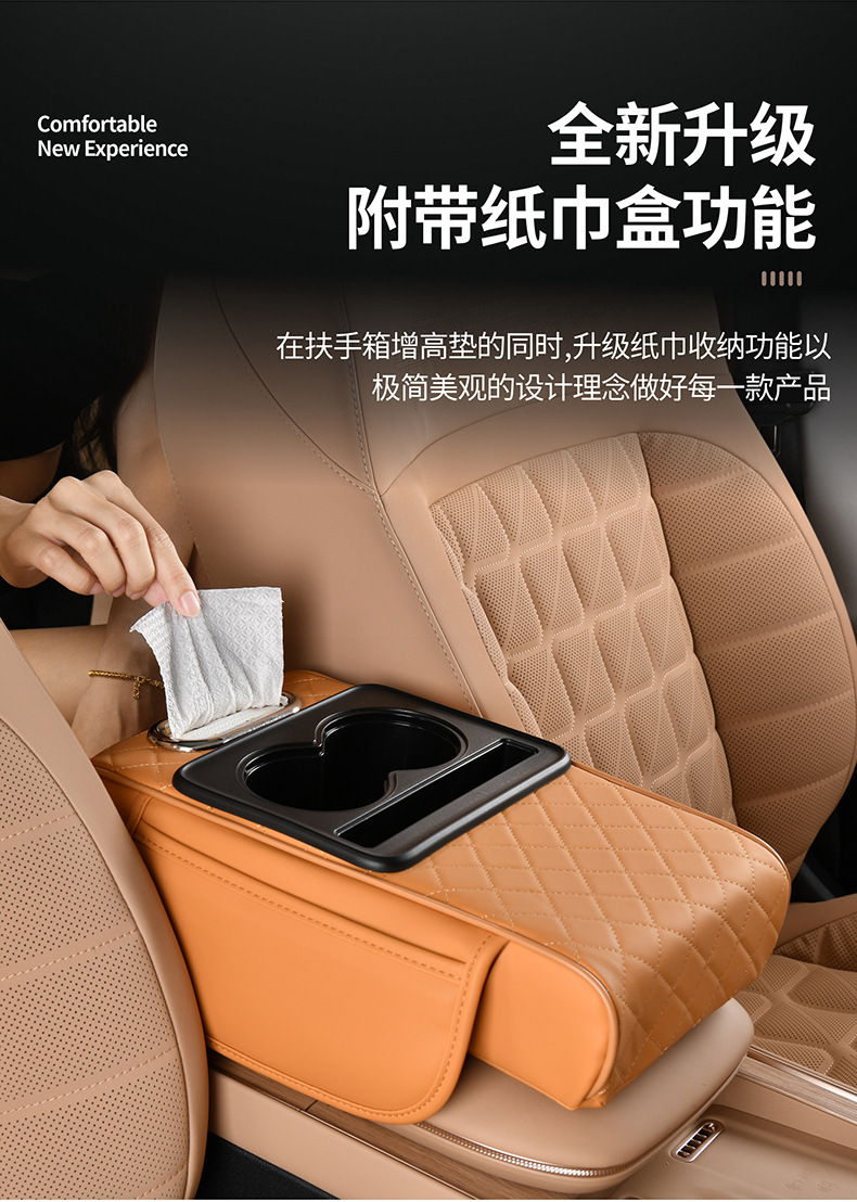 4-in-1 자동차 부스터 패드, 팔걸이 상자, 나파 가죽 이중 물컵 홀더, 자동차 보관함, 자동차 휴대용 티슈 박스