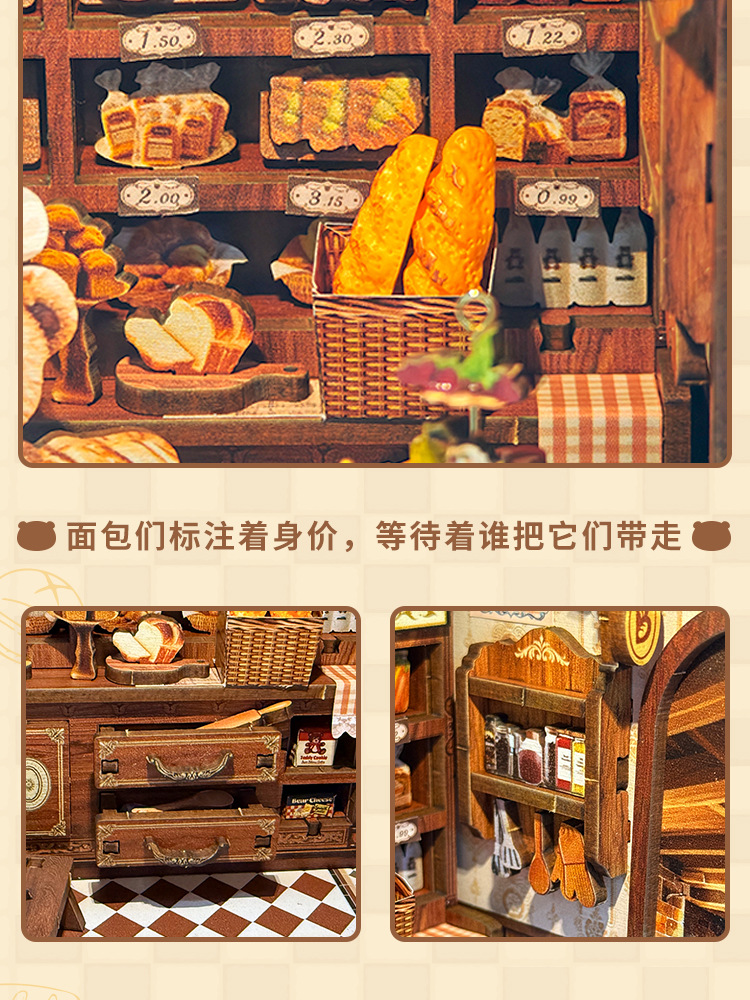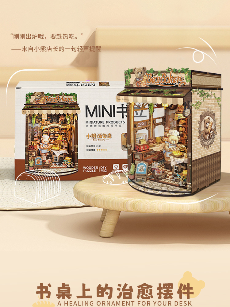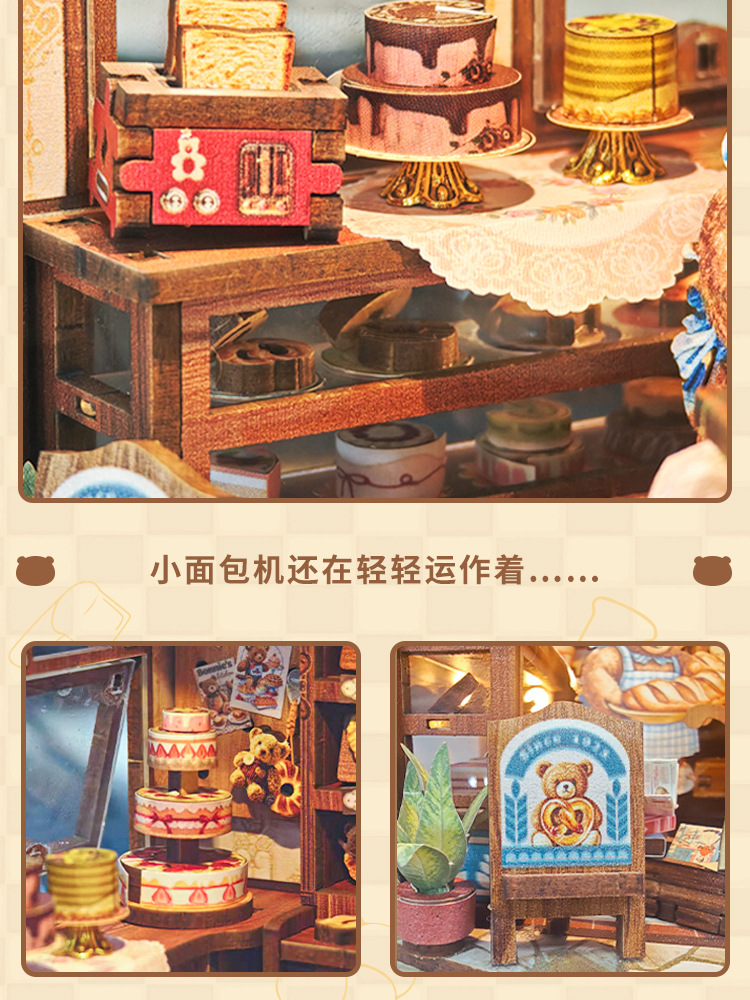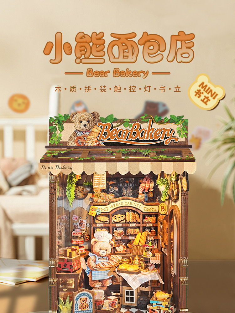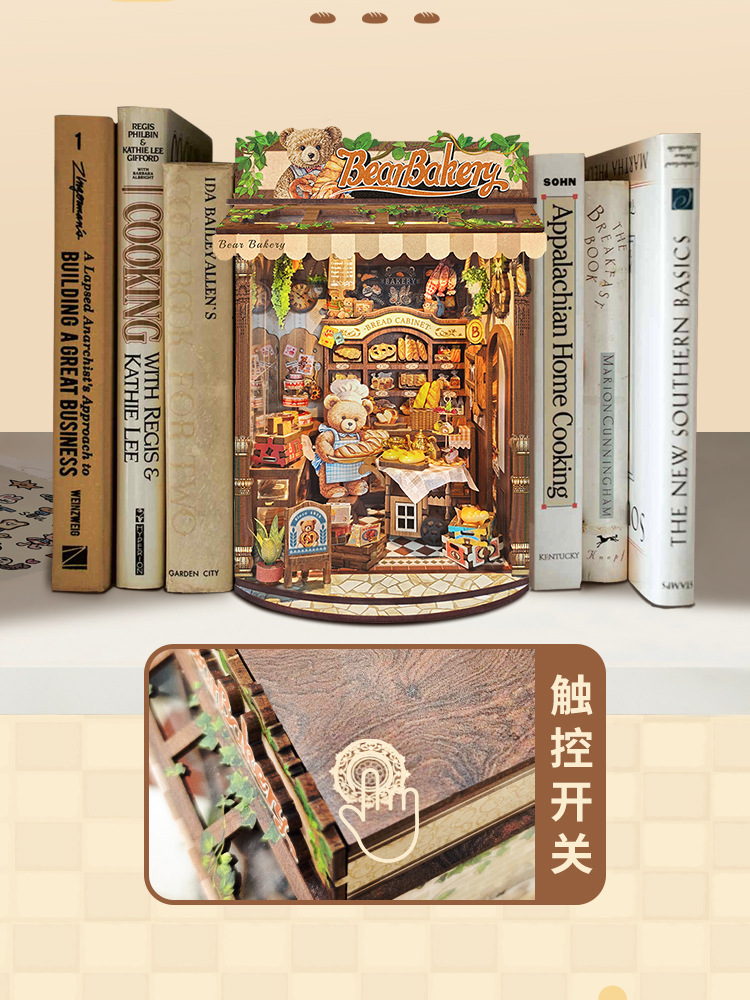 곰 빵집 작은 집 책 서 수제 DIY 오두막 미니어처 모델 입체 퍼즐 선물 영어 국경스토어 가기