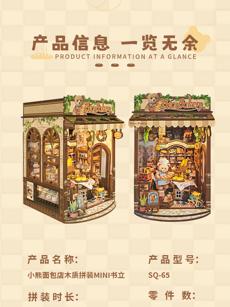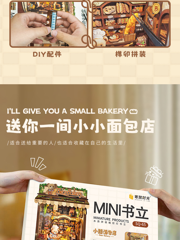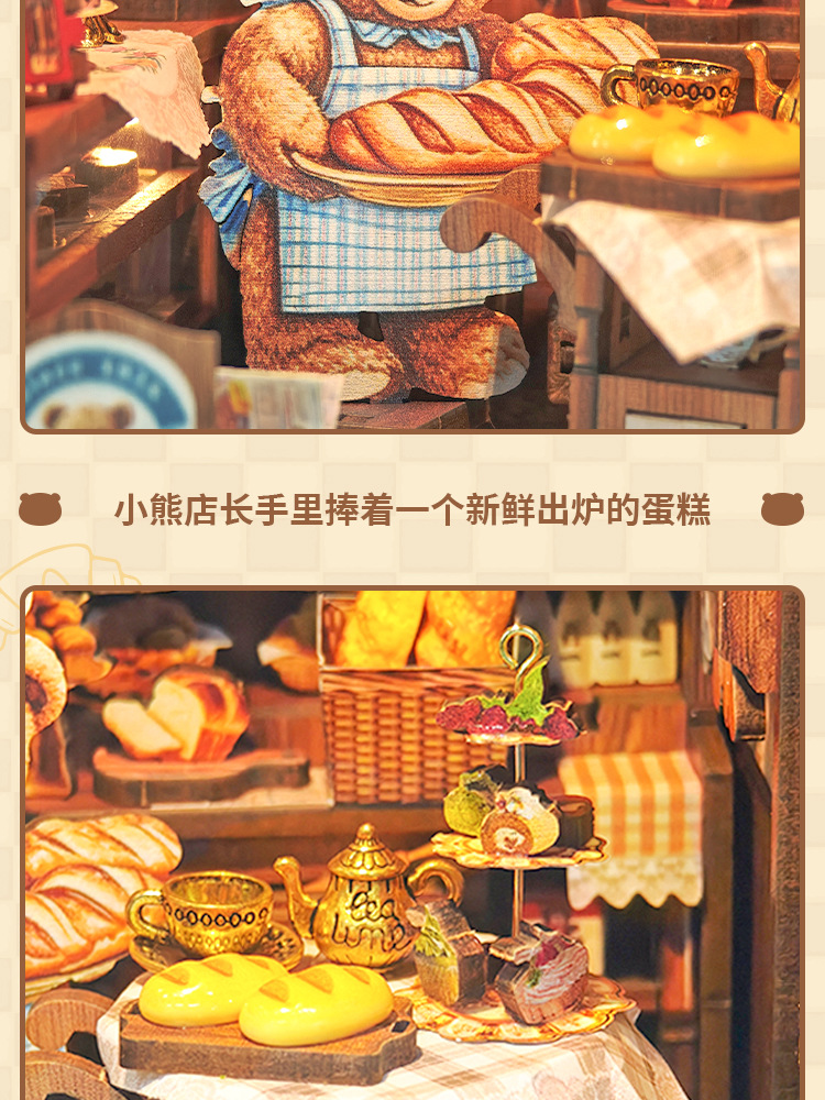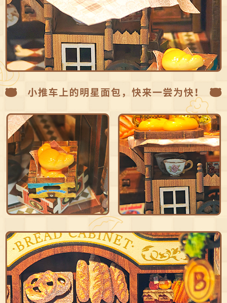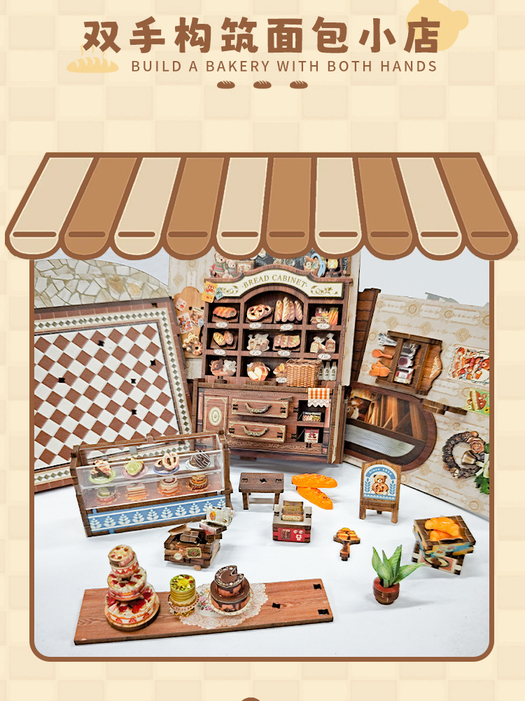 곰 빵집 작은 집 책 서 수제 DIY 오두막 미니어처 모델 입체 퍼즐 선물 영어 국경스토어 가기