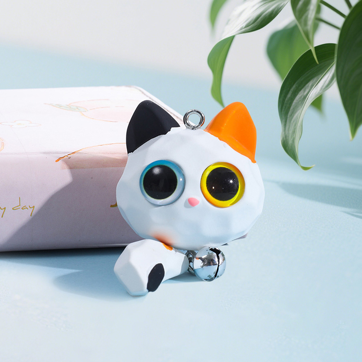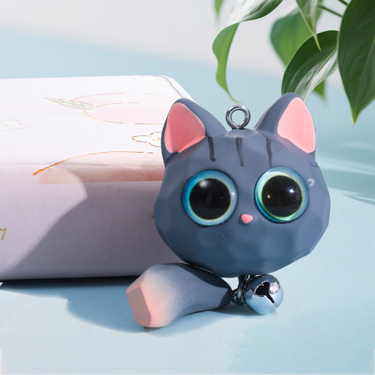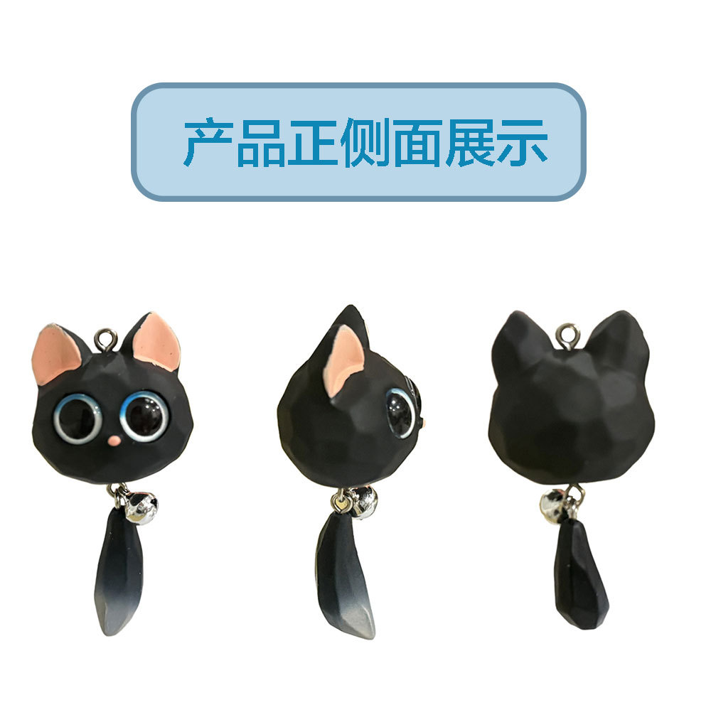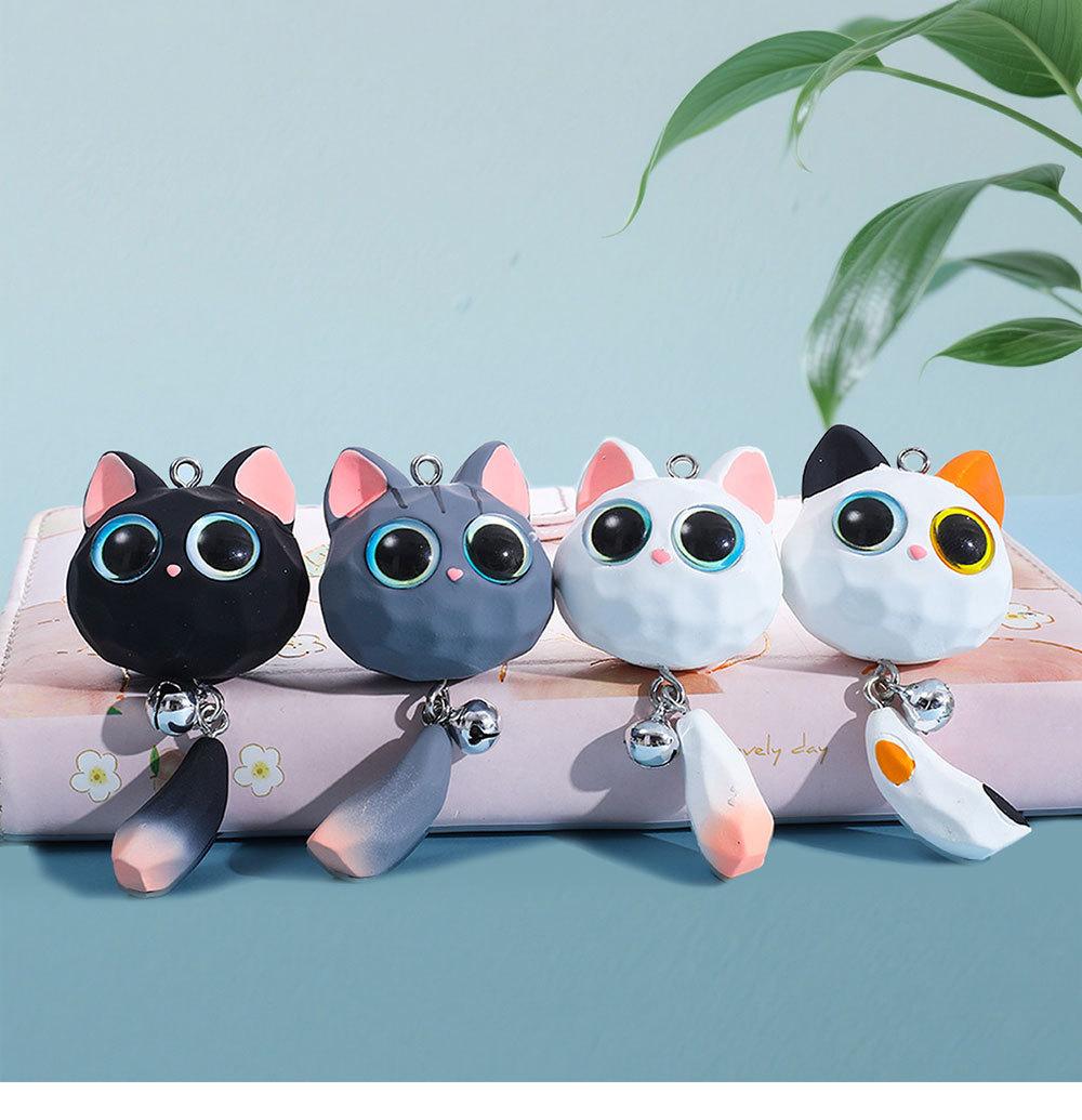 꼬리가 달린 만화 큰 눈 고양이, 수지 3차원 인형, 귀여운 새끼 고양이 머리띠, 벨 열쇠고리 액세서리
