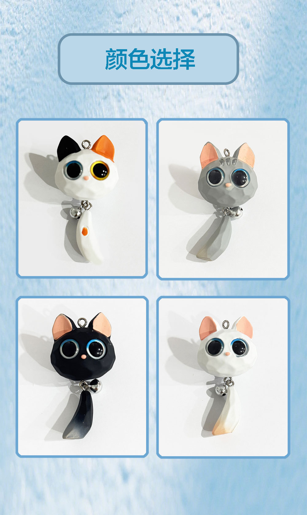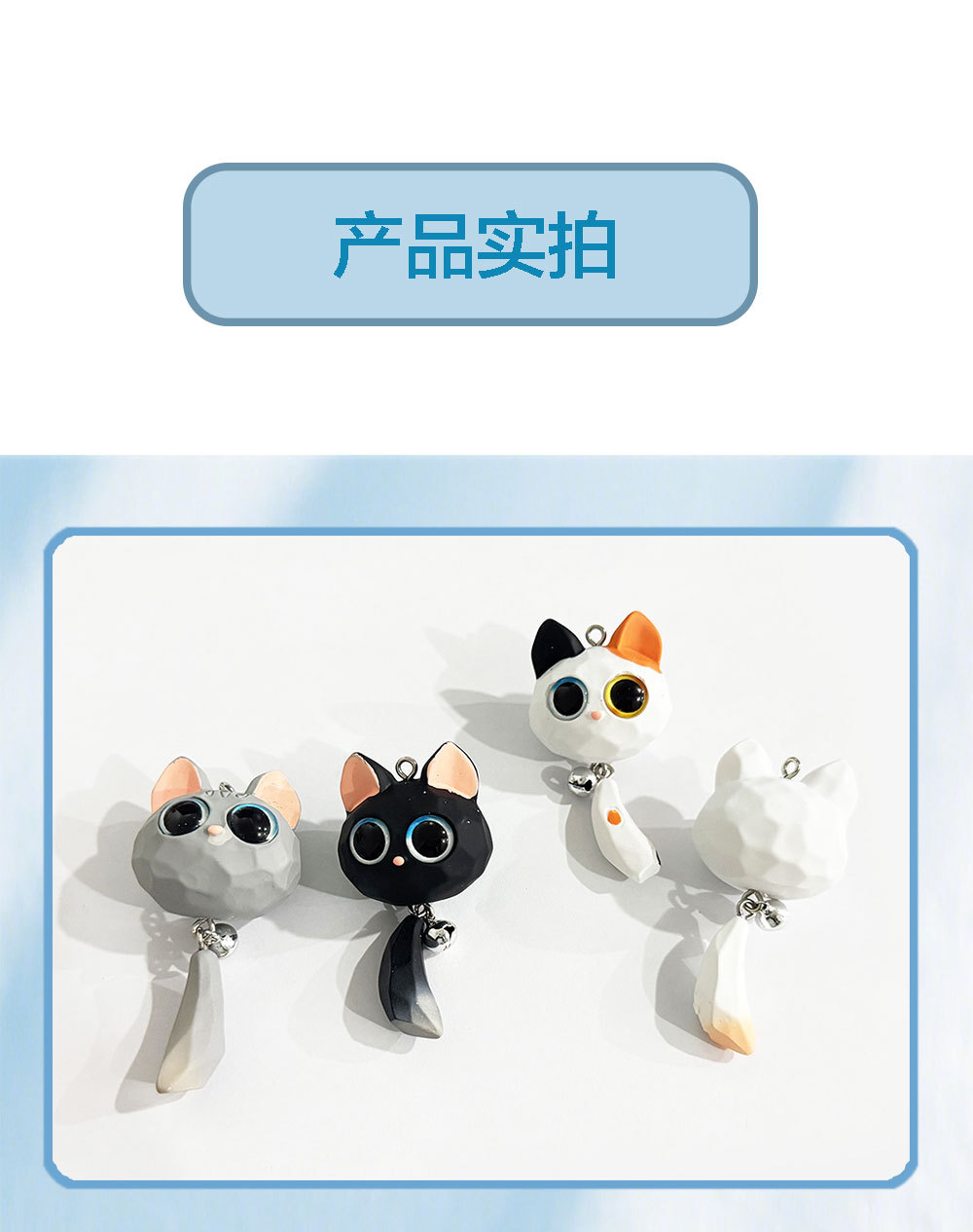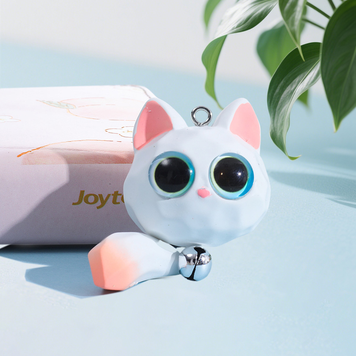 꼬리가 달린 만화 큰 눈 고양이, 수지 3차원 인형, 귀여운 새끼 고양이 머리띠, 벨 열쇠고리 액세서리