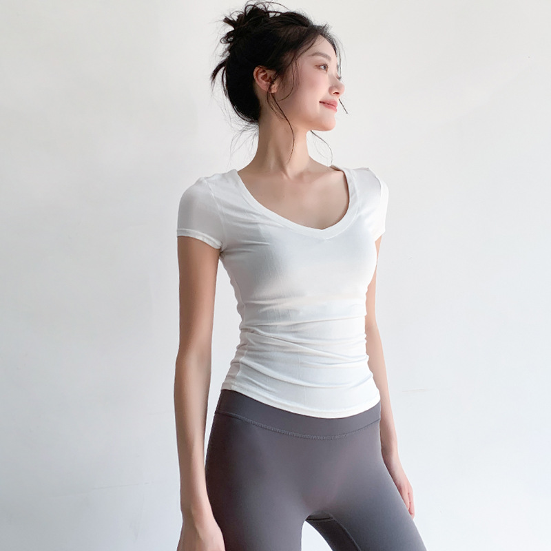 패셔너블한 속건성 캐주얼 만능 스포츠 반팔 봄여름 타이트한 브이넥 요가 티셔츠 야외 러닝 트레이닝 피트니스 상의스토어 가기