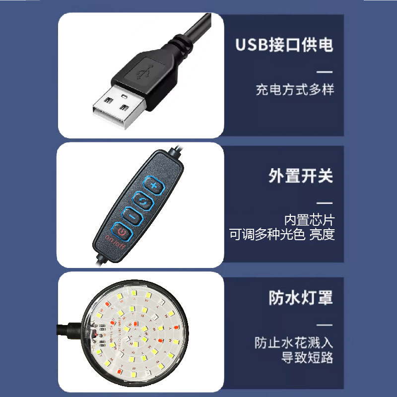풀 스펙트럼 LED 수조 클립 라이트, 조류 폭발 램프, 관상용 수조 특수 조명, 소형 수조 다이빙 램프