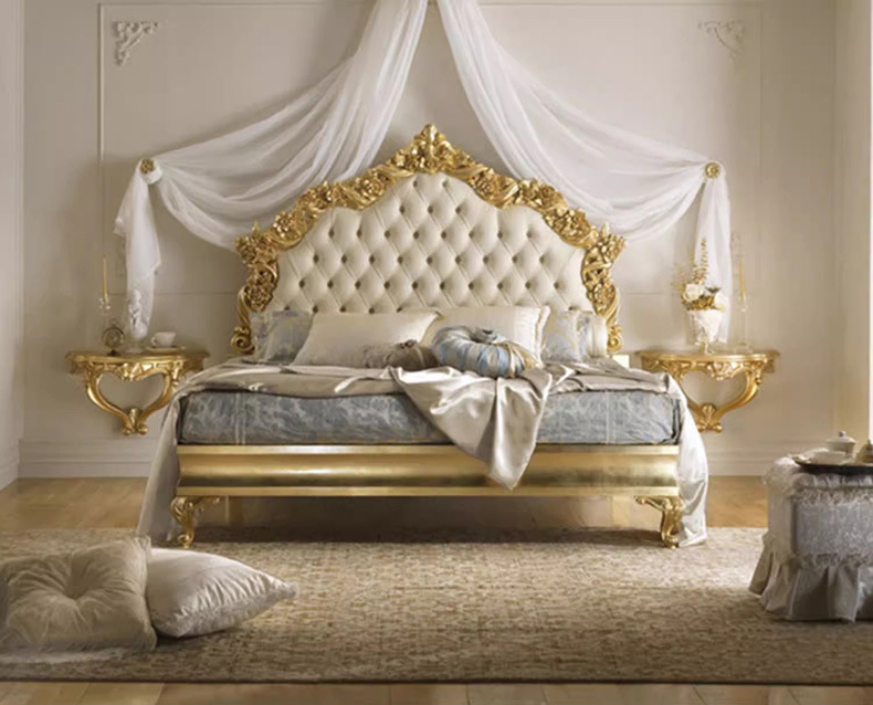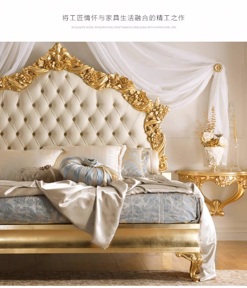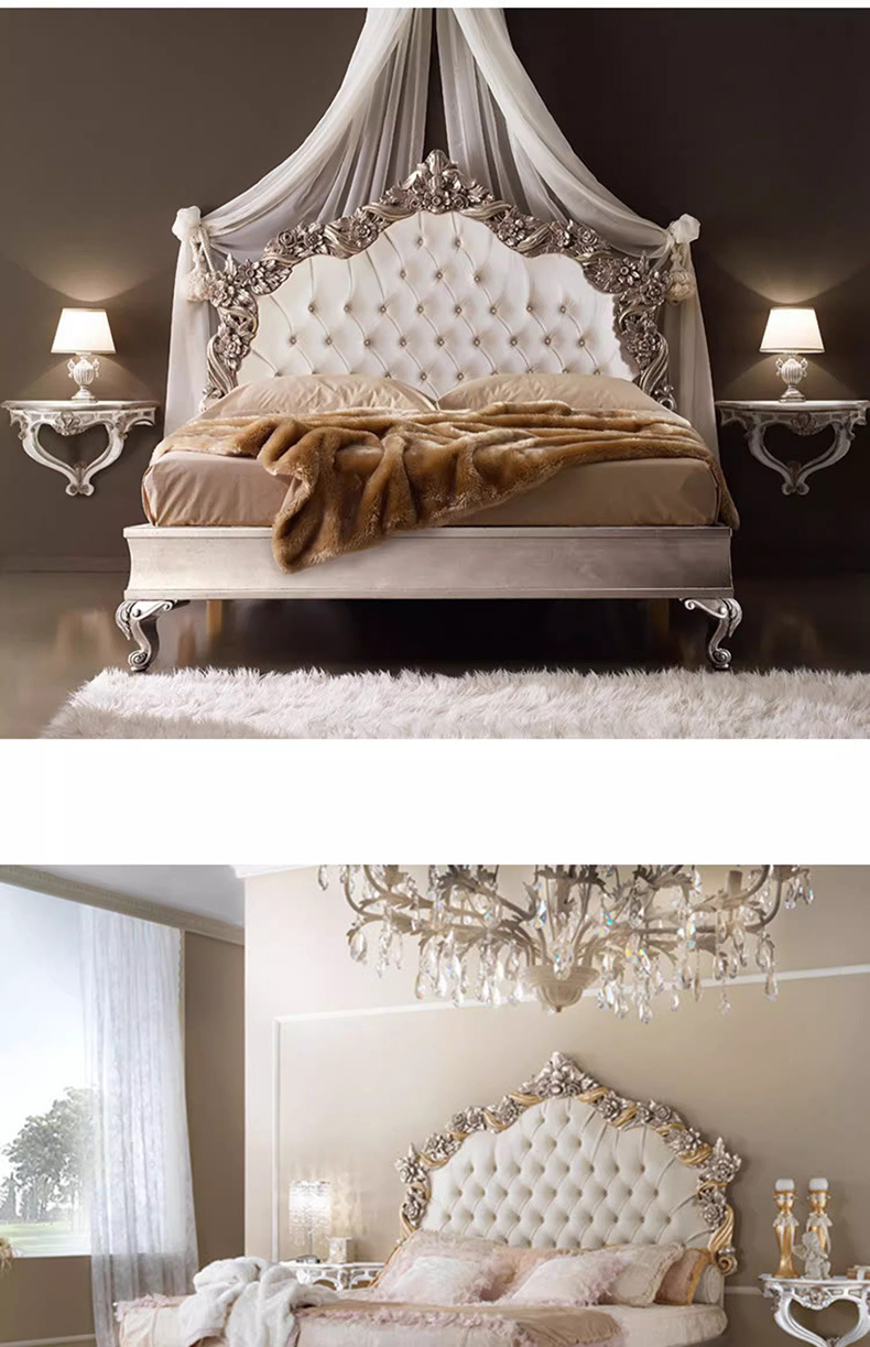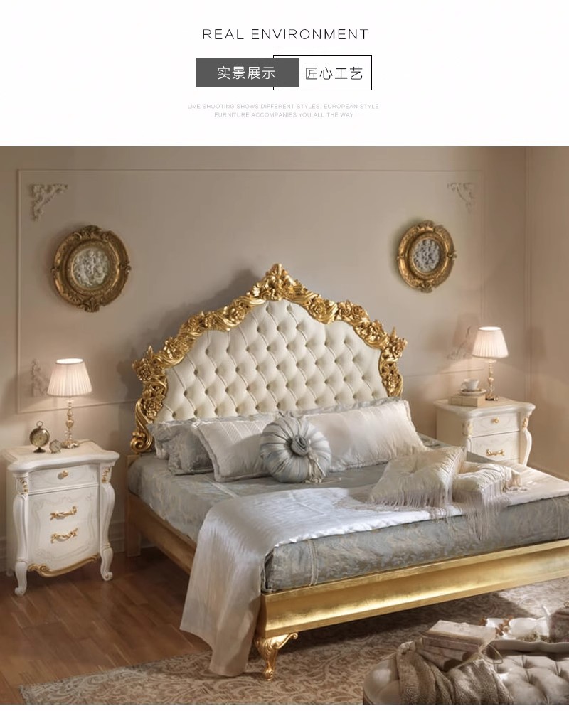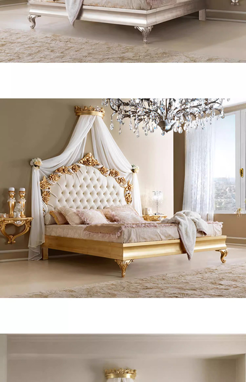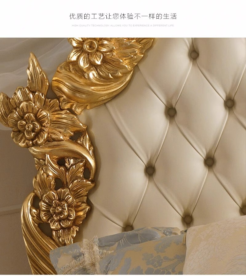 마스터 침실 더블 침대 유럽 스타일의 단단한 나무 공주 침대 인터넷 연예인 프레임 조각 가죽 침대 프랑스 금박 웨딩 침대 침실 대형 침대스토어 가기