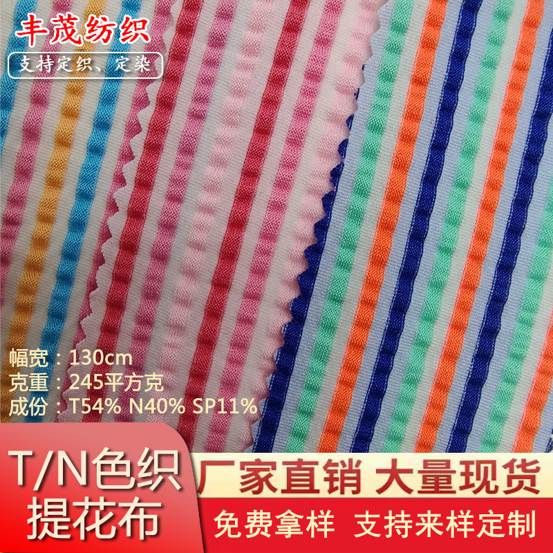 스팟 폴리에스터 나일론 원사 염색 자카드 레인보우 스트라이프 원단 요가 수영복 속옷 원단 크로스 미러 여성용 원단스토어 가기