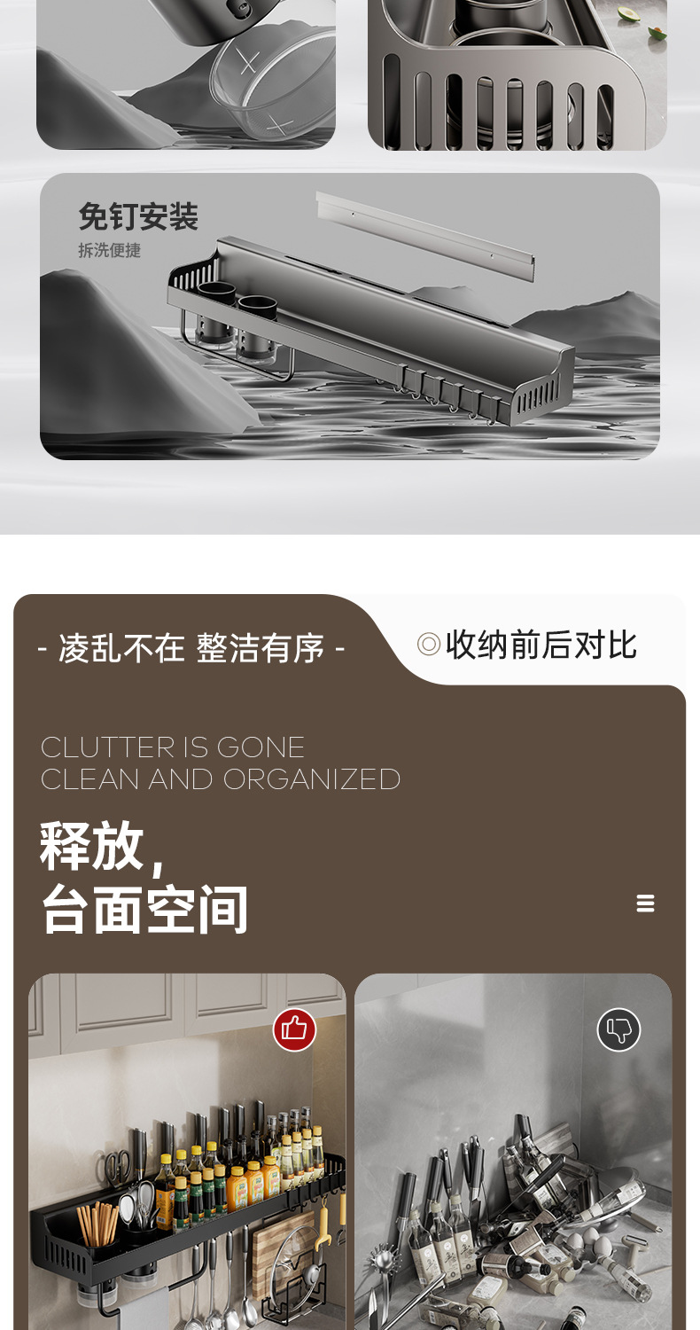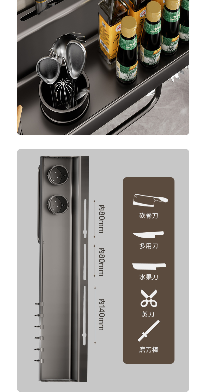 탄소강 다기능 펀치없는 벽걸이 형 조미료 젓가락 칼 홀더 주방 및 욕실 용품 보관함 주방 보관함