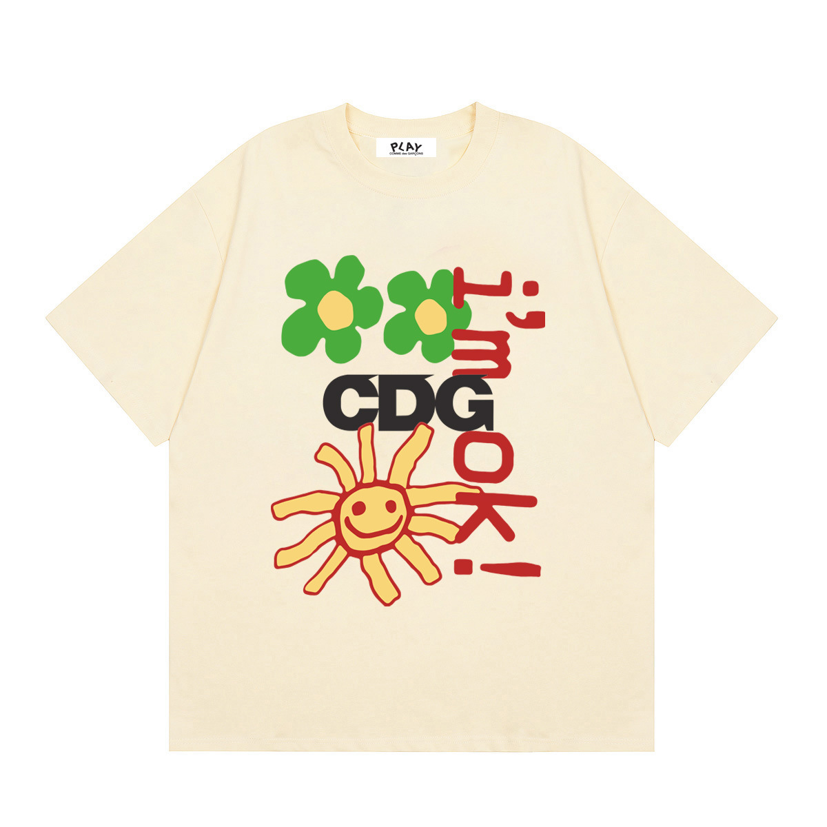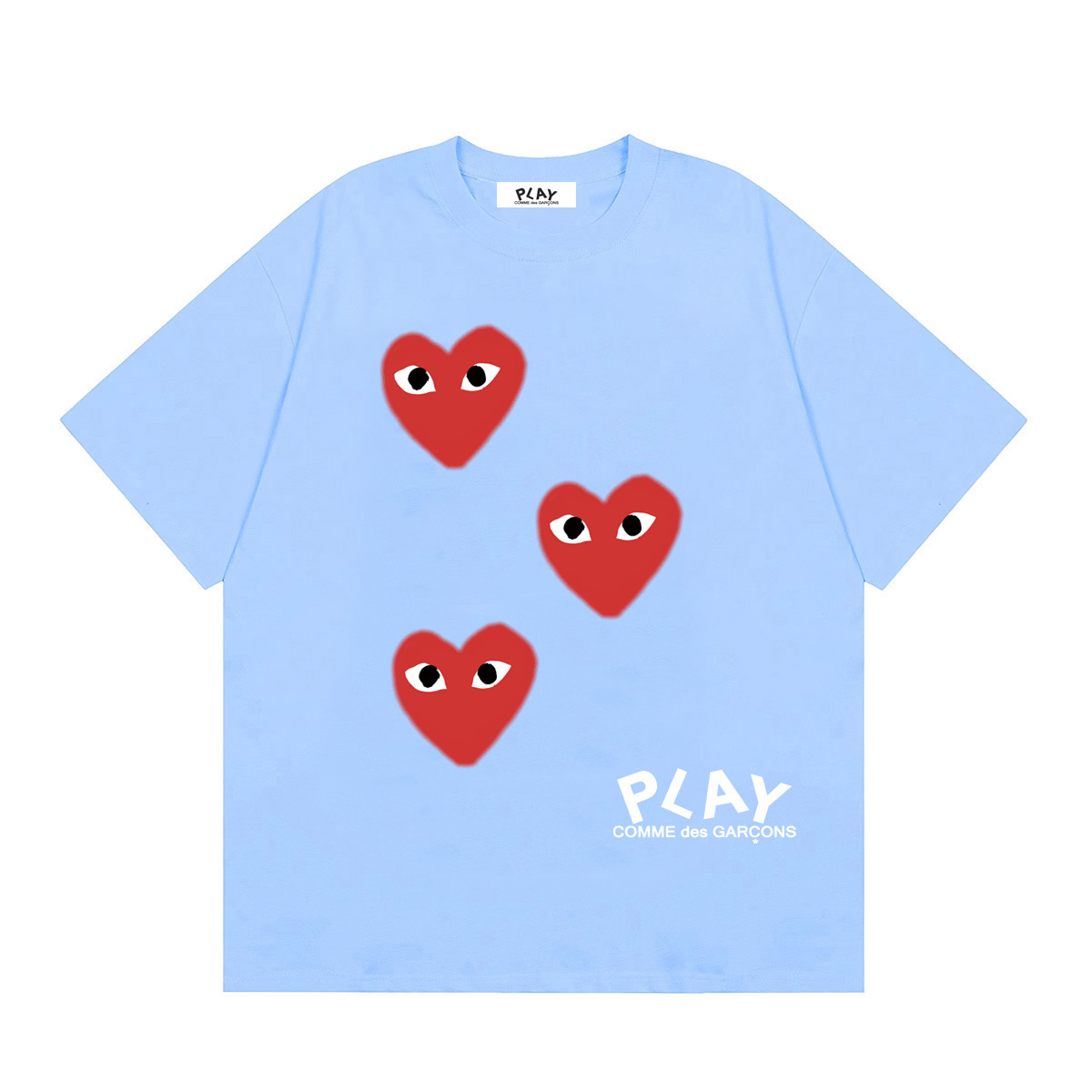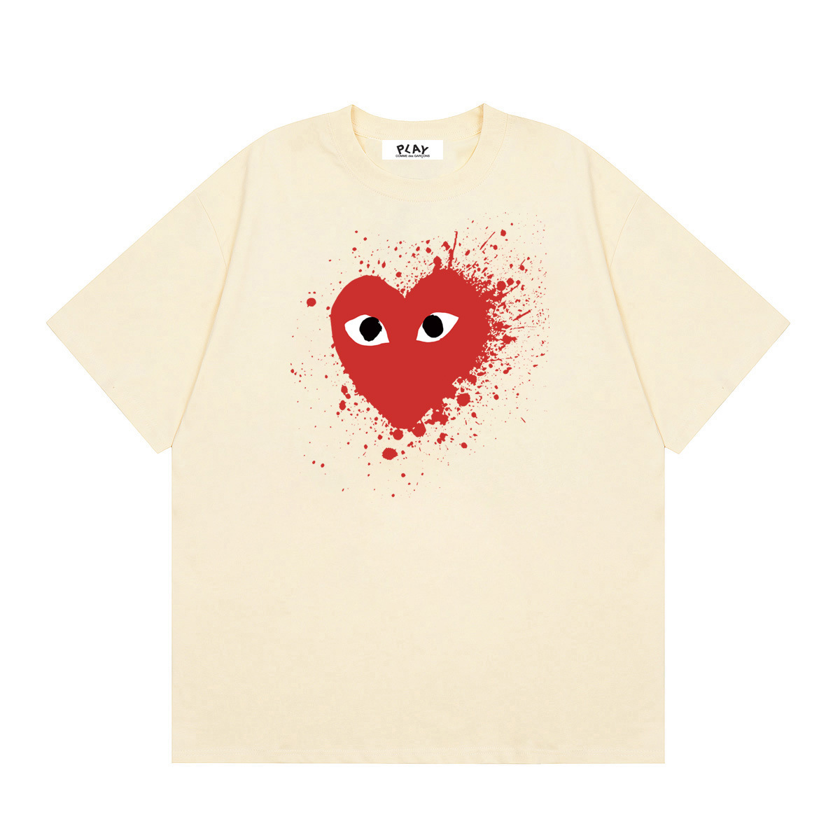 2025년 여름 Comme des Garcons 새로운 Chuanjiu 러브 레터 프린트 풀오버 반팔 남성 및 여성