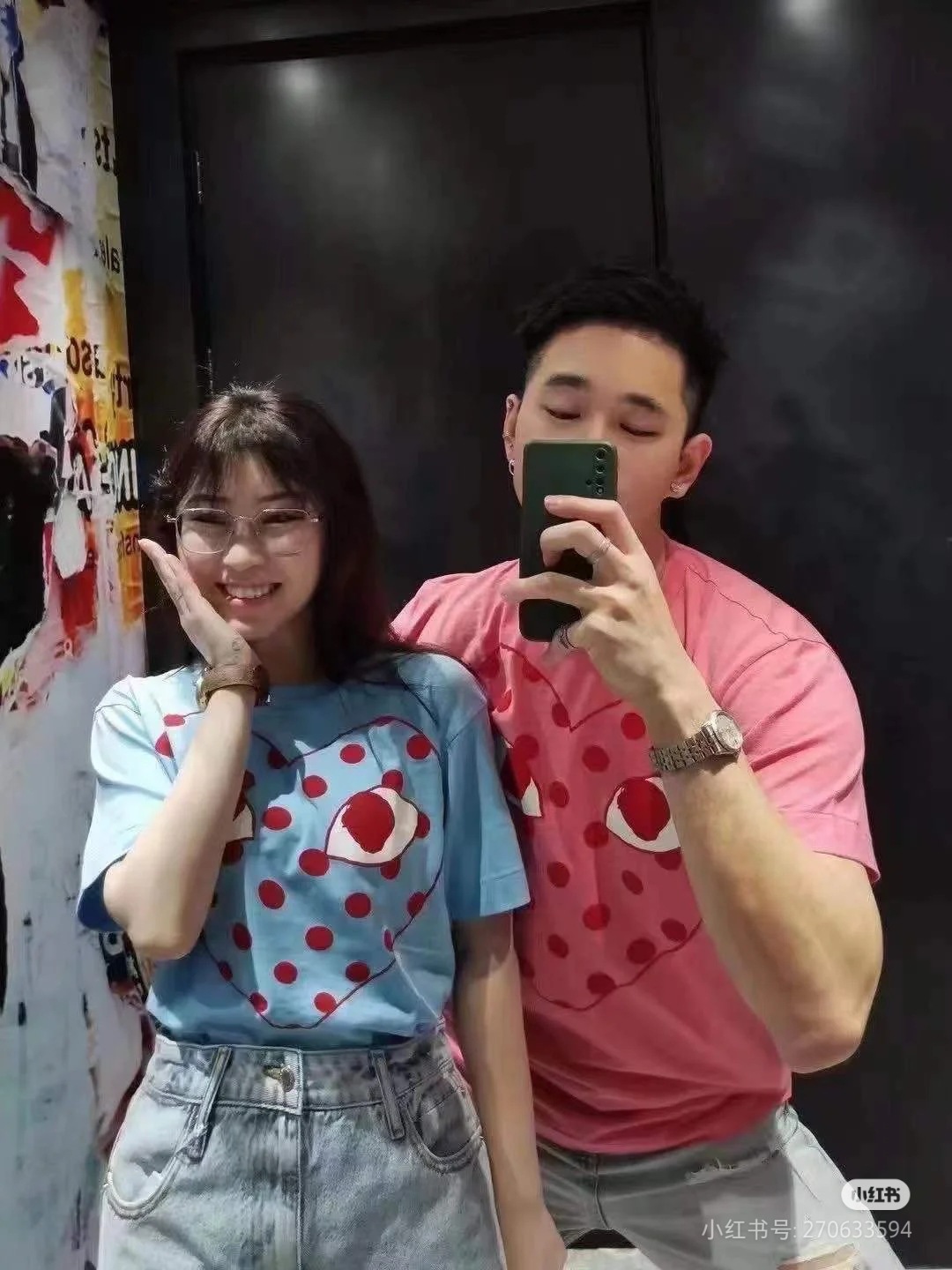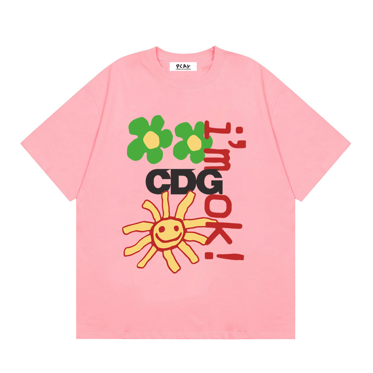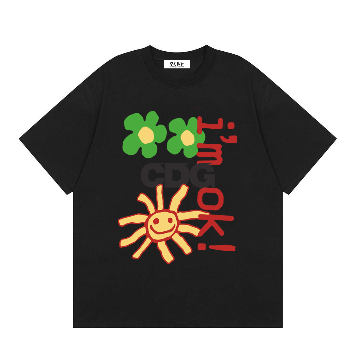 2025년 여름 Comme des Garcons 새로운 Chuanjiu 러브 레터 프린트 풀오버 반팔 남성 및 여성