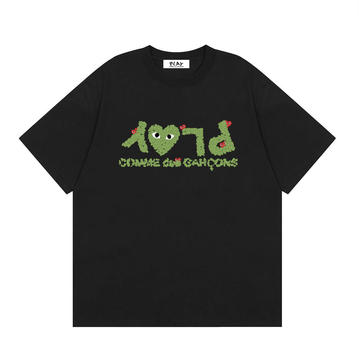 2025년 여름 Comme des Garcons 새로운 Chuanjiu 러브 레터 프린트 풀오버 반팔 남성 및 여성스토어 가기