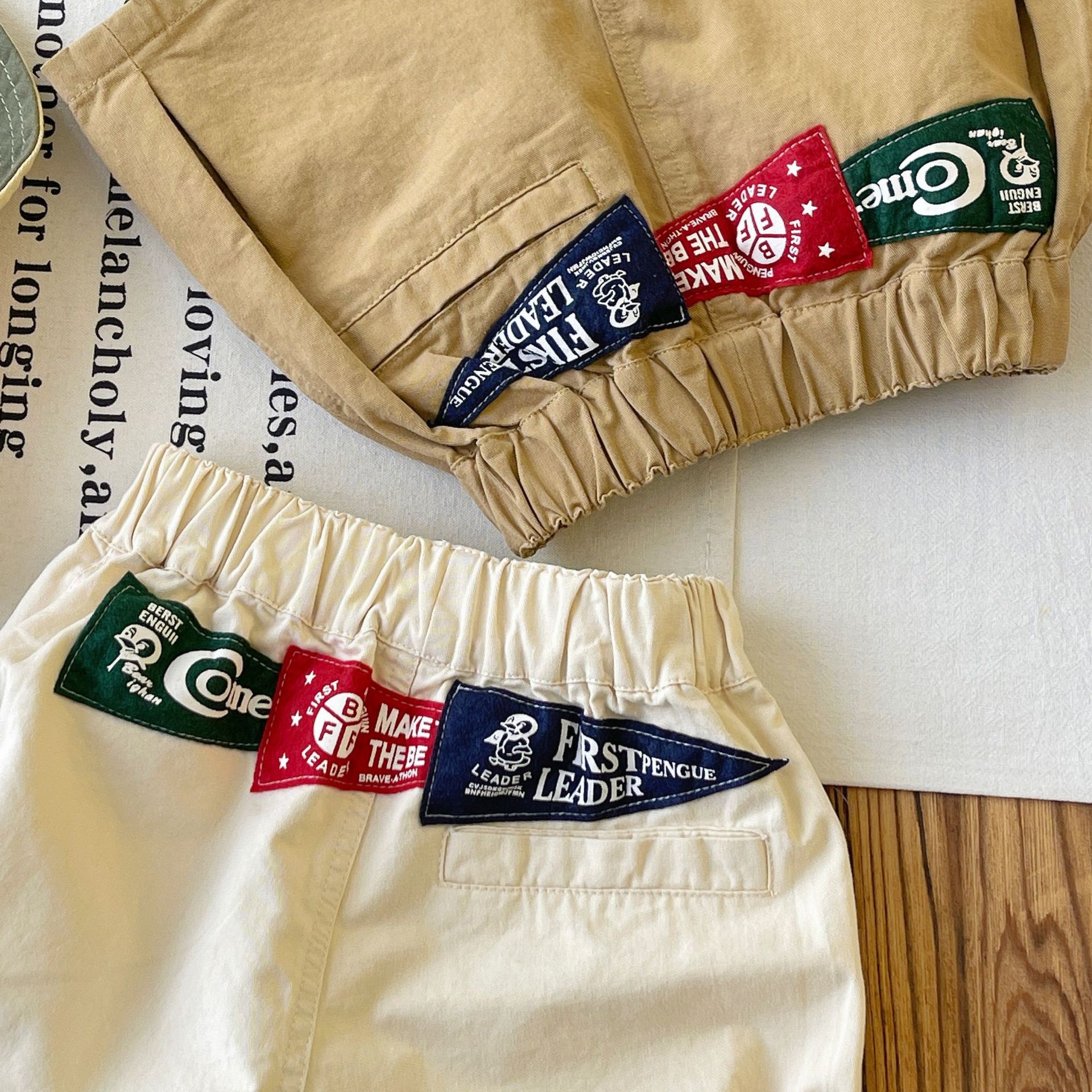 [재고 있음] 일본 아동복 DD 아동 배지 라벨 캐주얼 반바지 여름 중간 바지