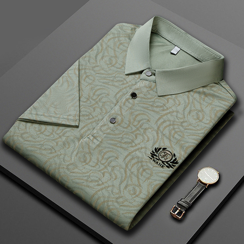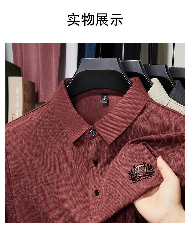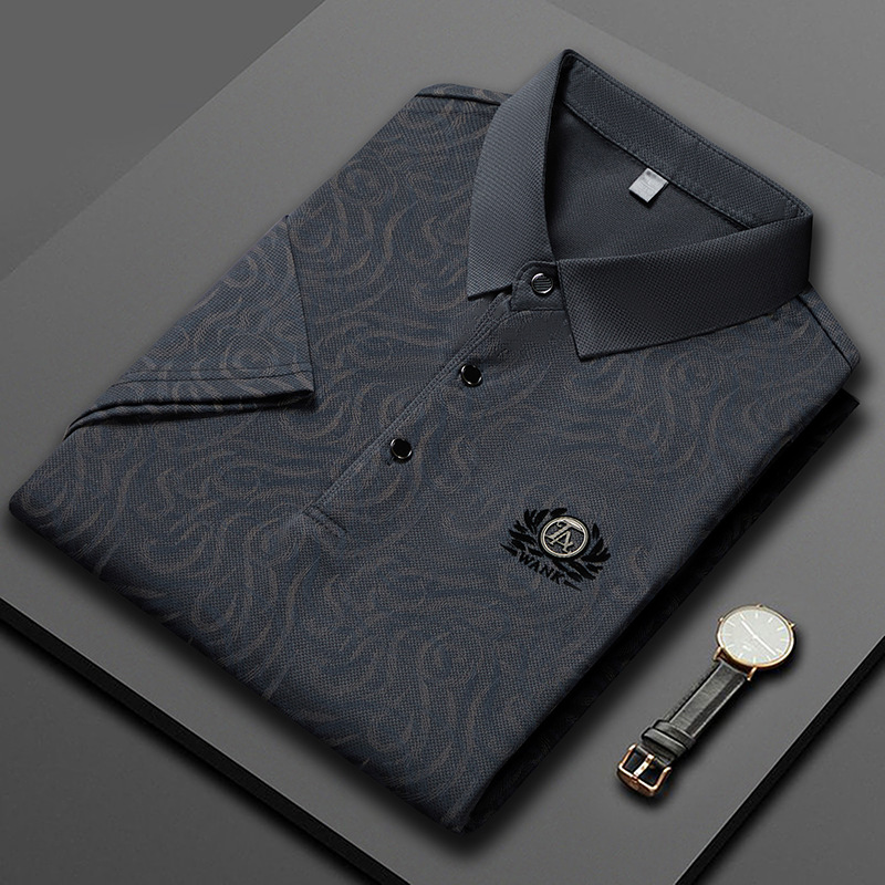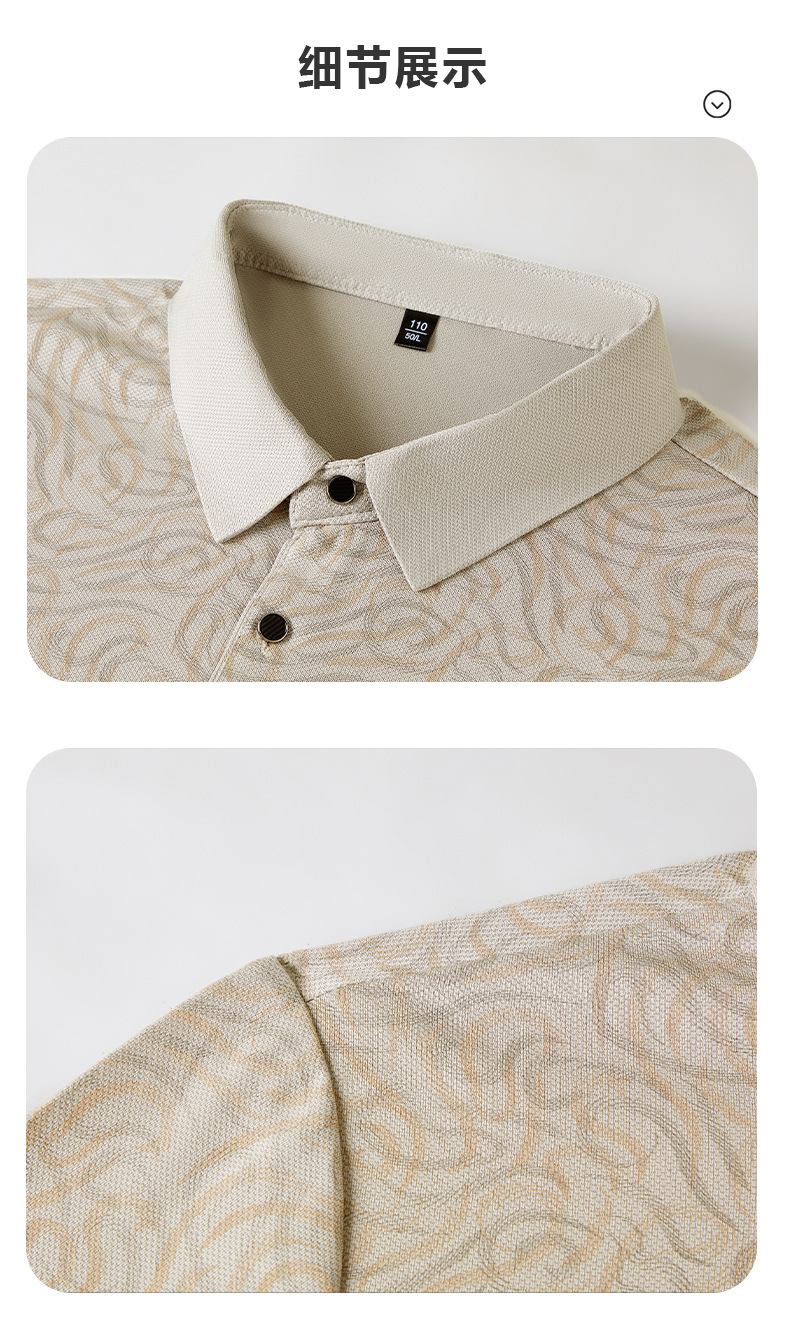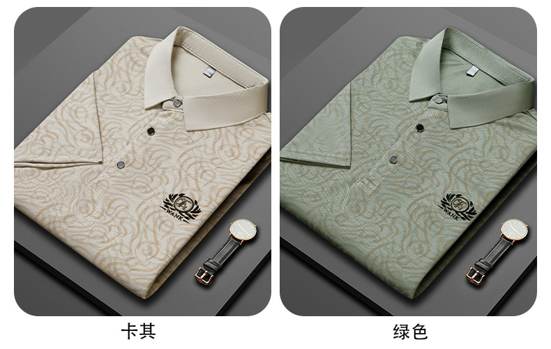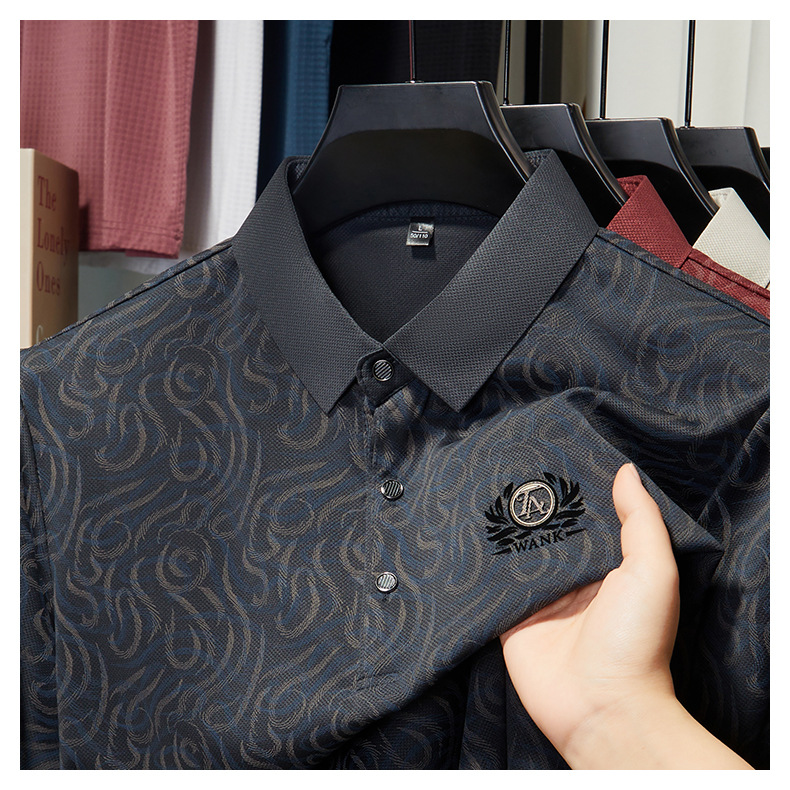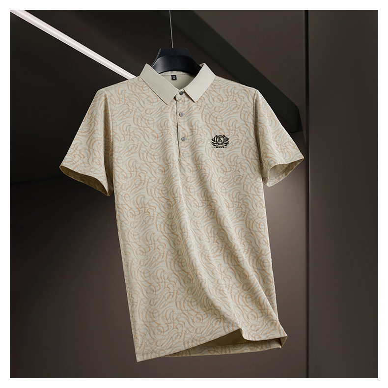 여름 신작 남성 반팔 폴로 셔츠 라펠 비즈니스 캐주얼 얇은 프린트 아이스 실크 반팔 티셔츠 남성 의류스토어 가기