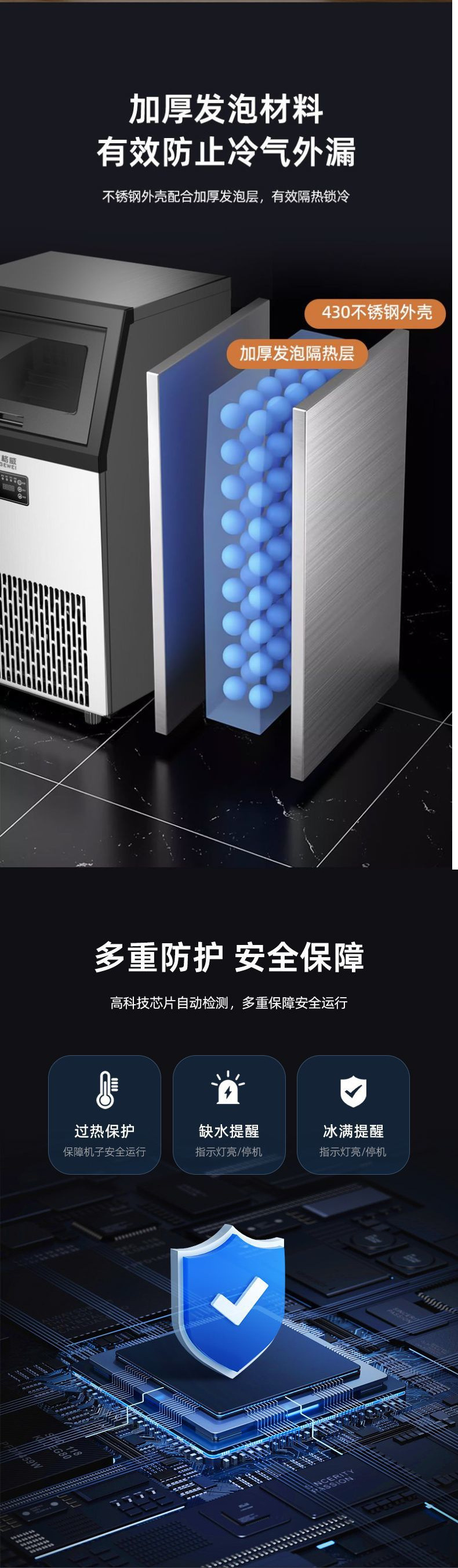 • 78개의 얼음 트레이 - 일일 80KG - 스테인레스 스틸 생수 모델
