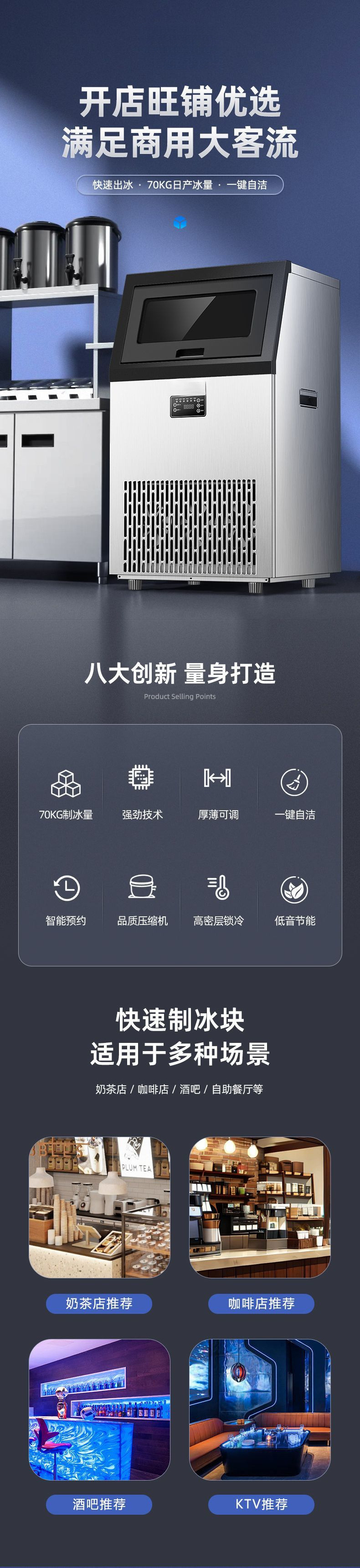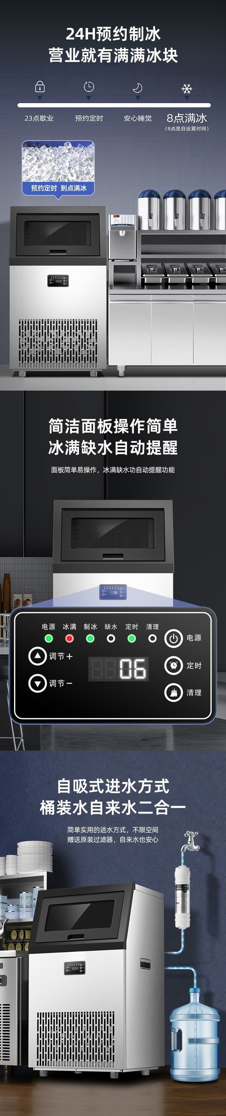 새로운 제빙기 상업용 대형 완전 자동 소형 기숙사 밀크 티 샵 제빙기 사각형 KTV 바 아이스 큐브