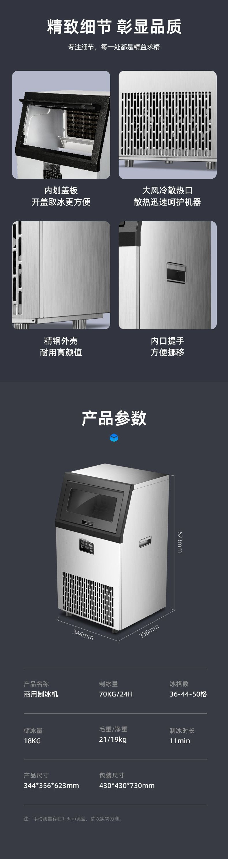 • 65개의 얼음 트레이 - 일일 70KG - 스테인레스 스틸 생수 모델