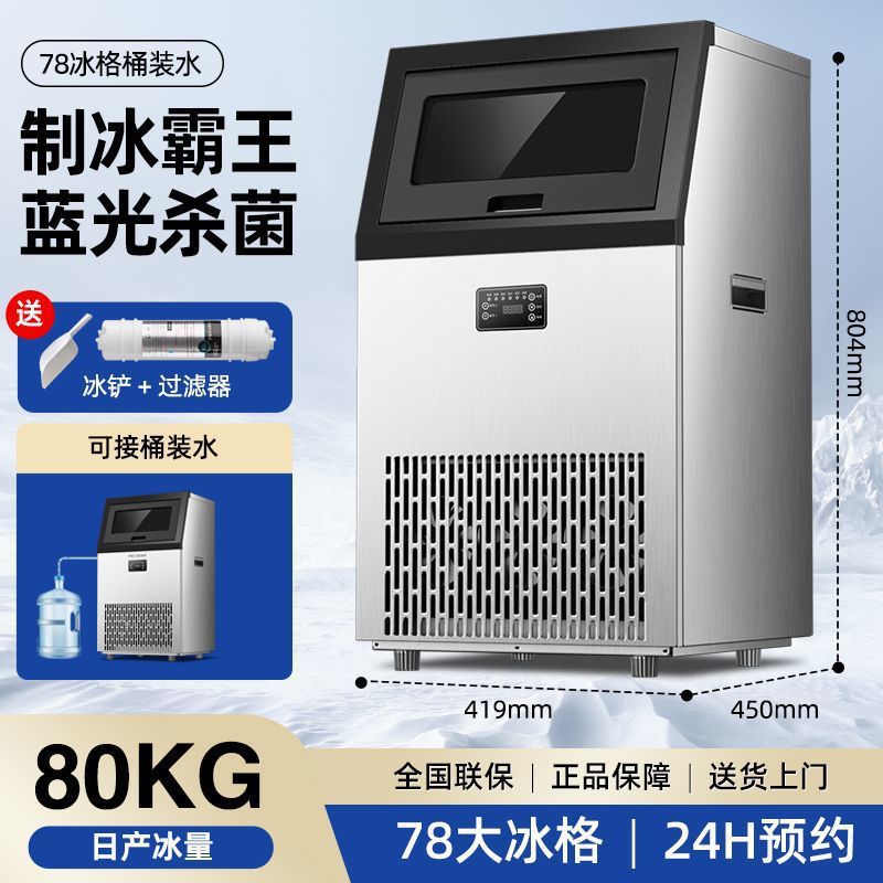 • 78개의 얼음 트레이 - 일일 80KG - 스테인레스 스틸 이중 물 유입구 모델