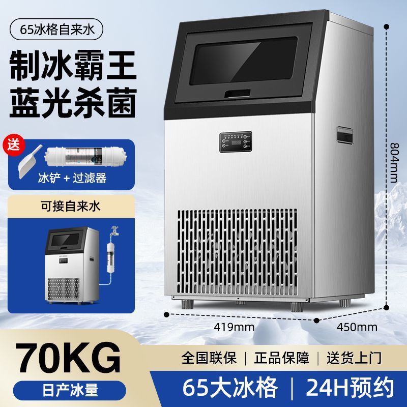 • 65개의 얼음 트레이 - 일일 70KG - 스테인레스 스틸 이중 물 유입구 모델