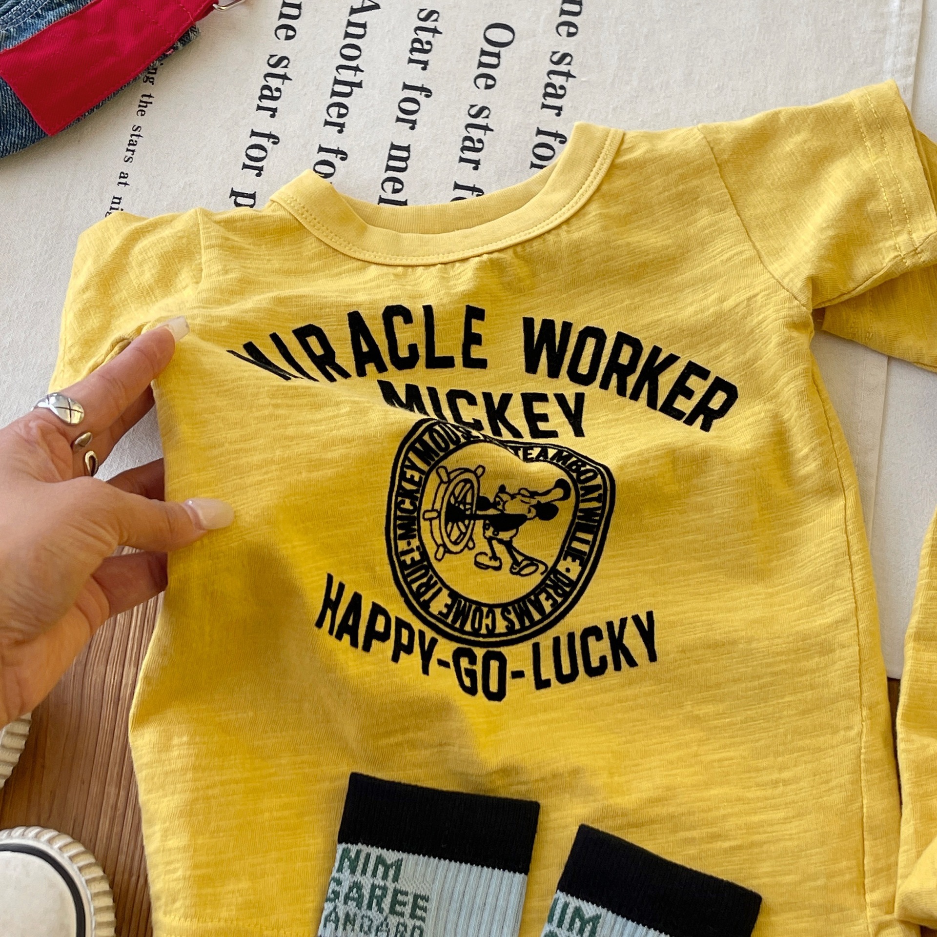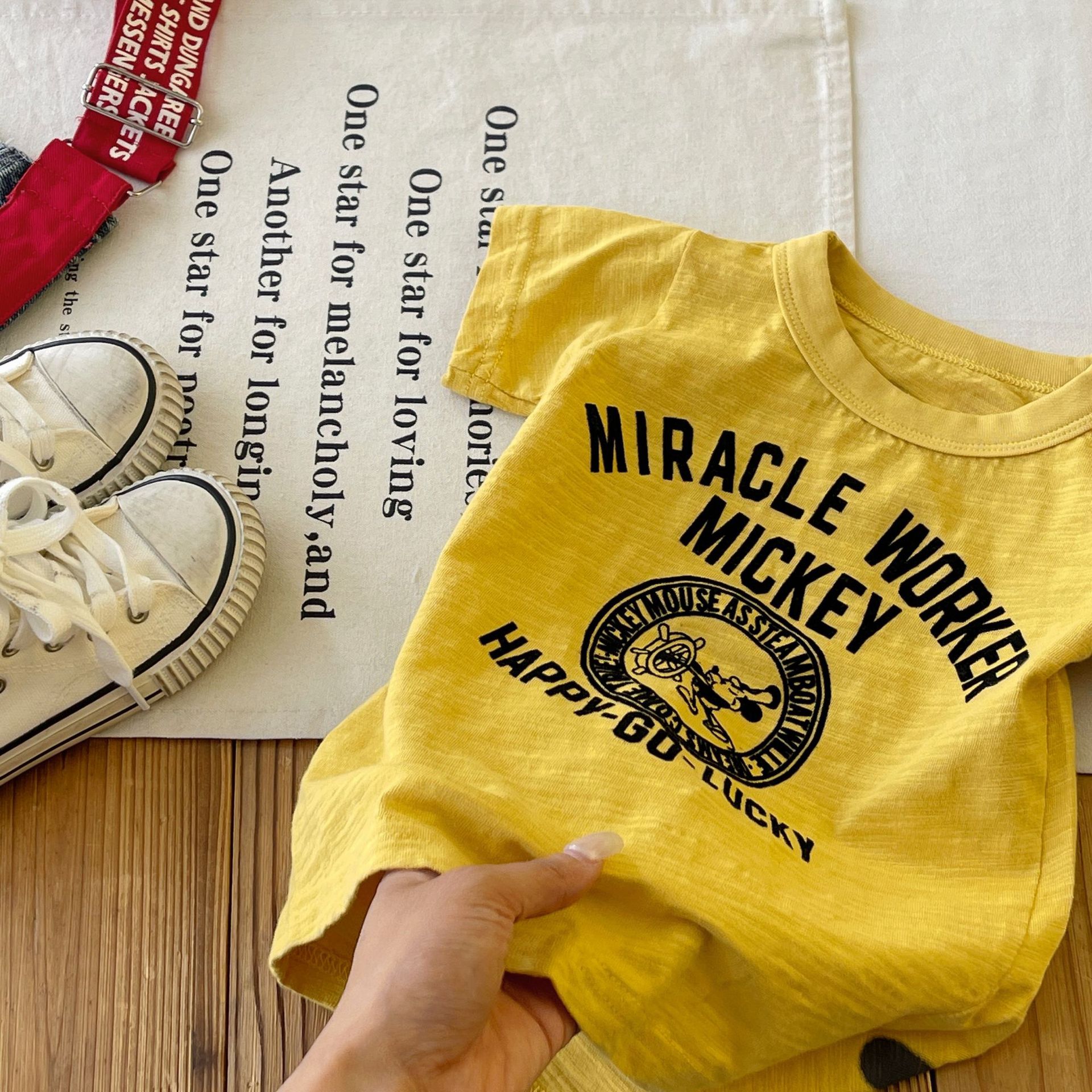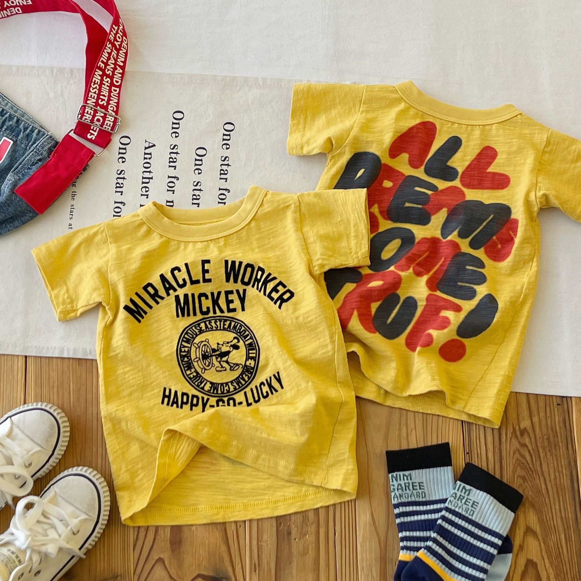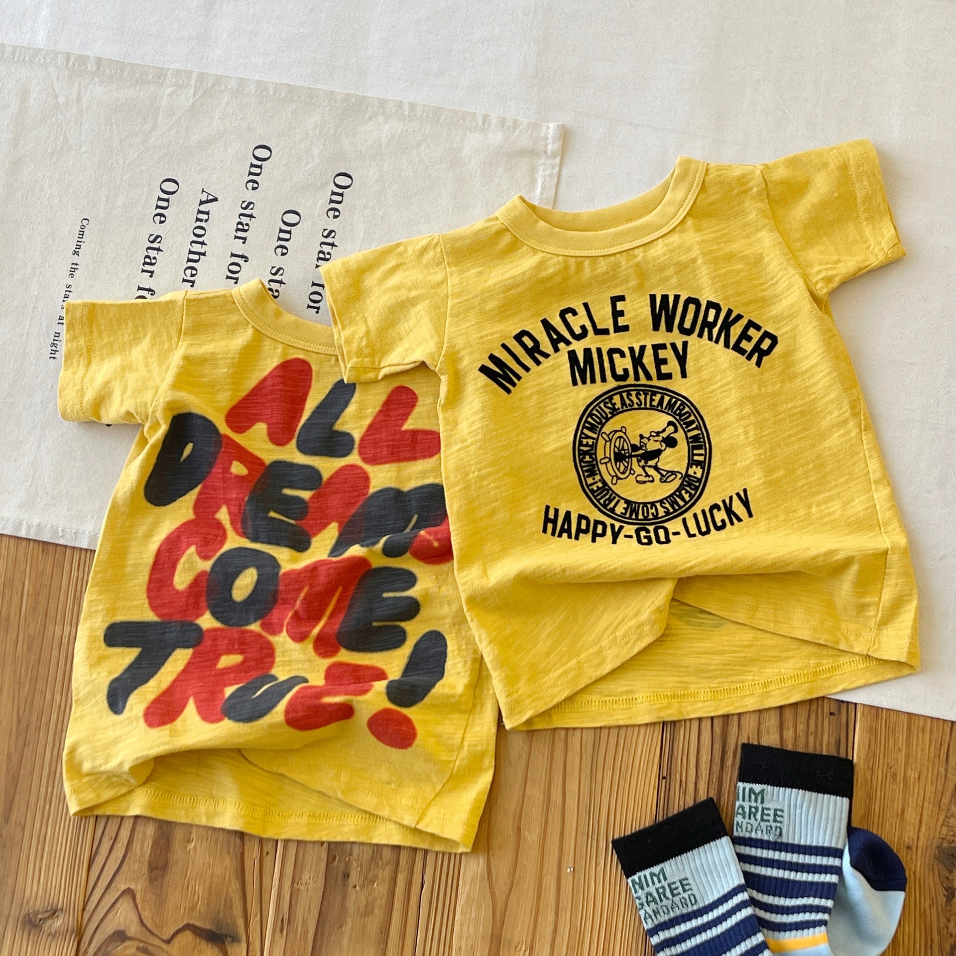 [재고 있음] 일본 아동복 중고 DD 아동 여름 프린트 반팔 올드 레터 티셔츠스토어 가기