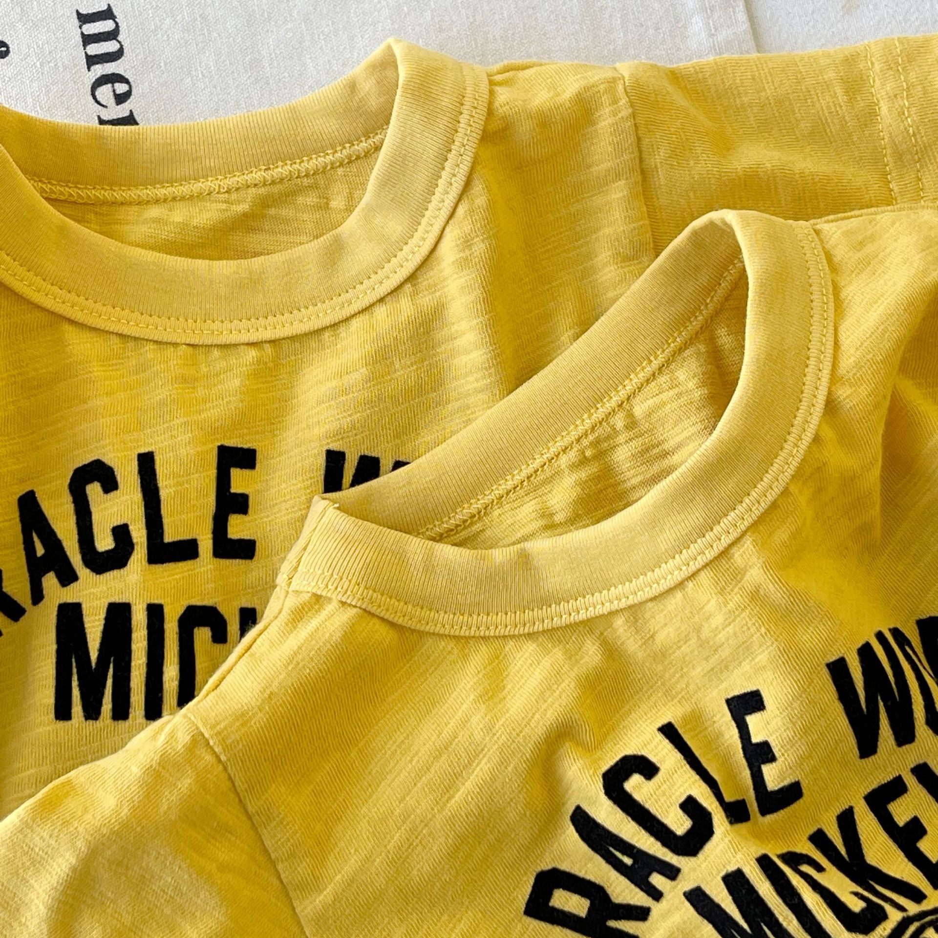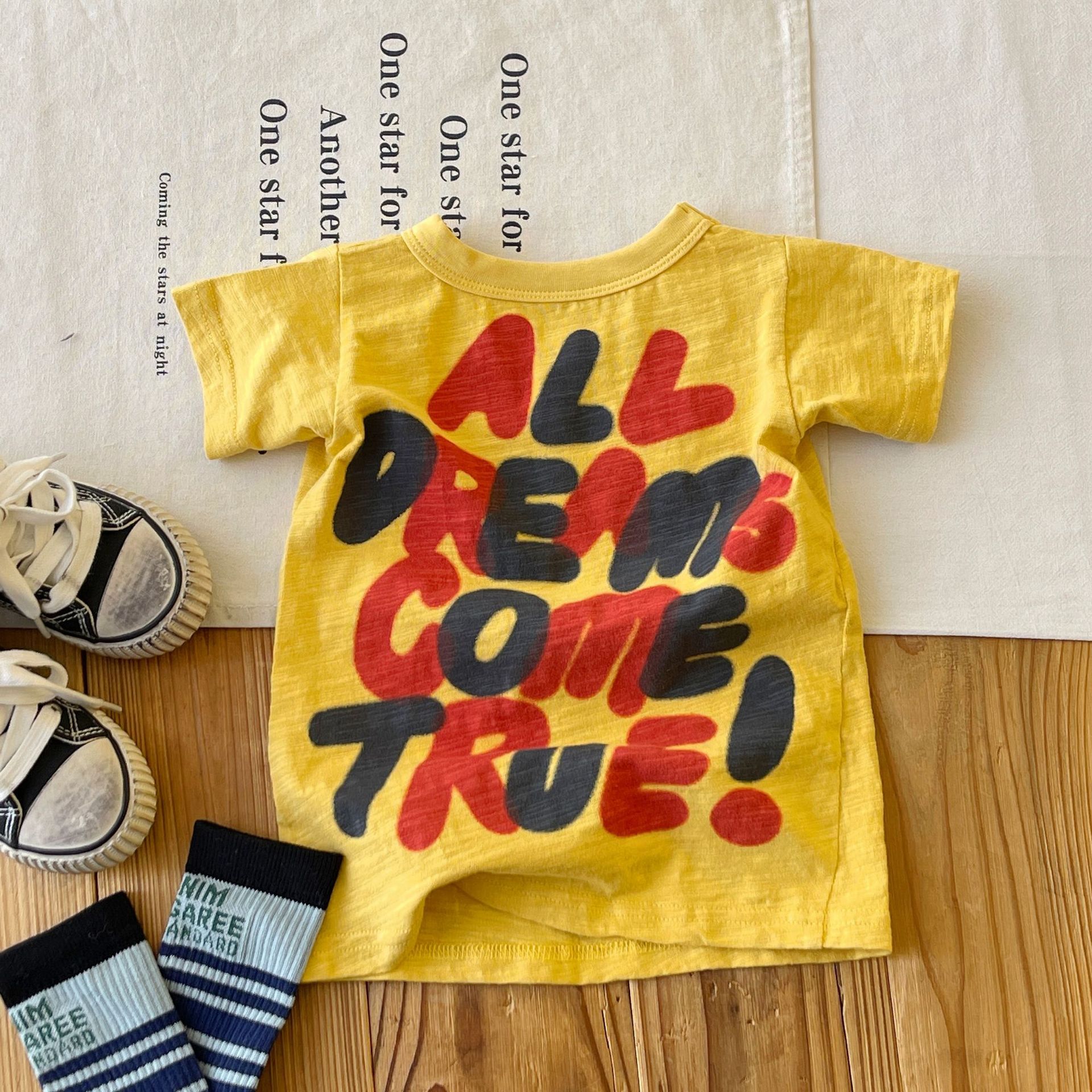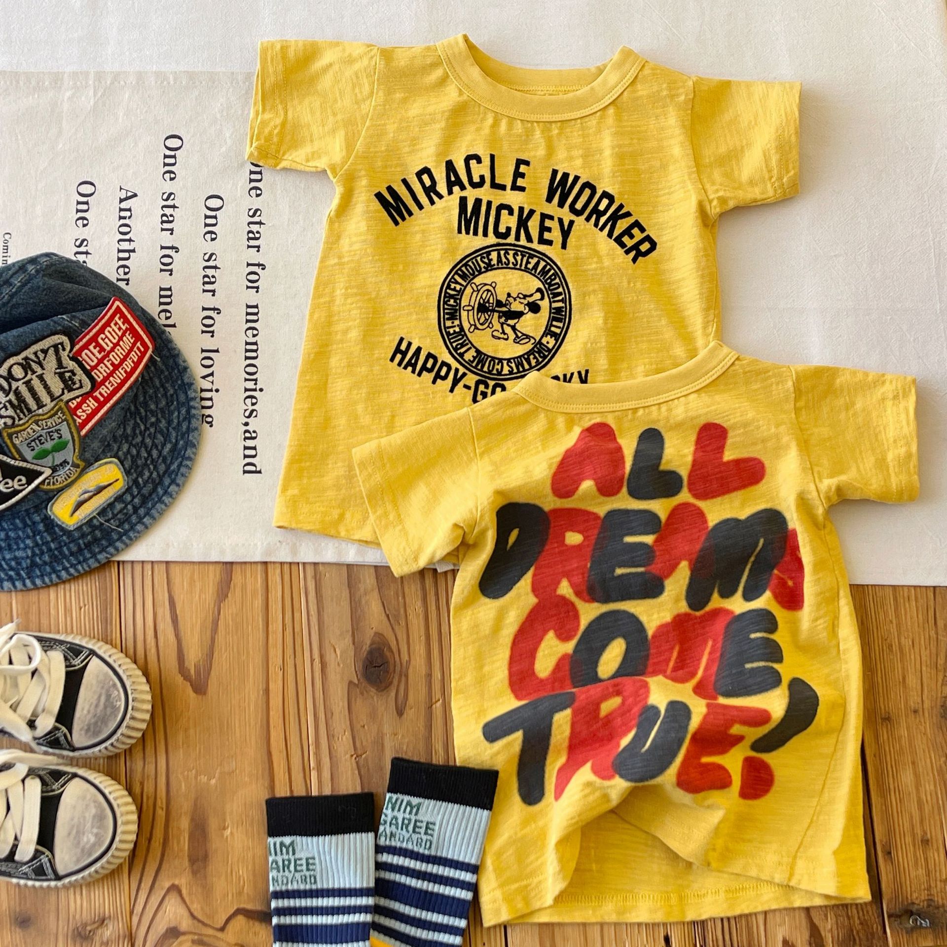 [재고 있음] 일본 아동복 중고 DD 아동 여름 프린트 반팔 올드 레터 티셔츠