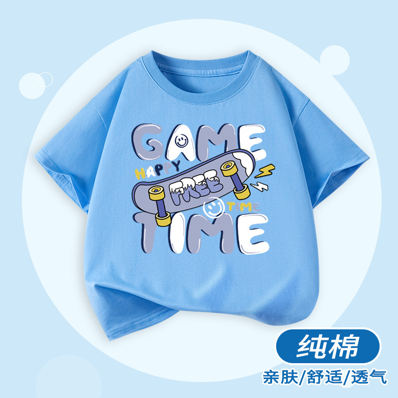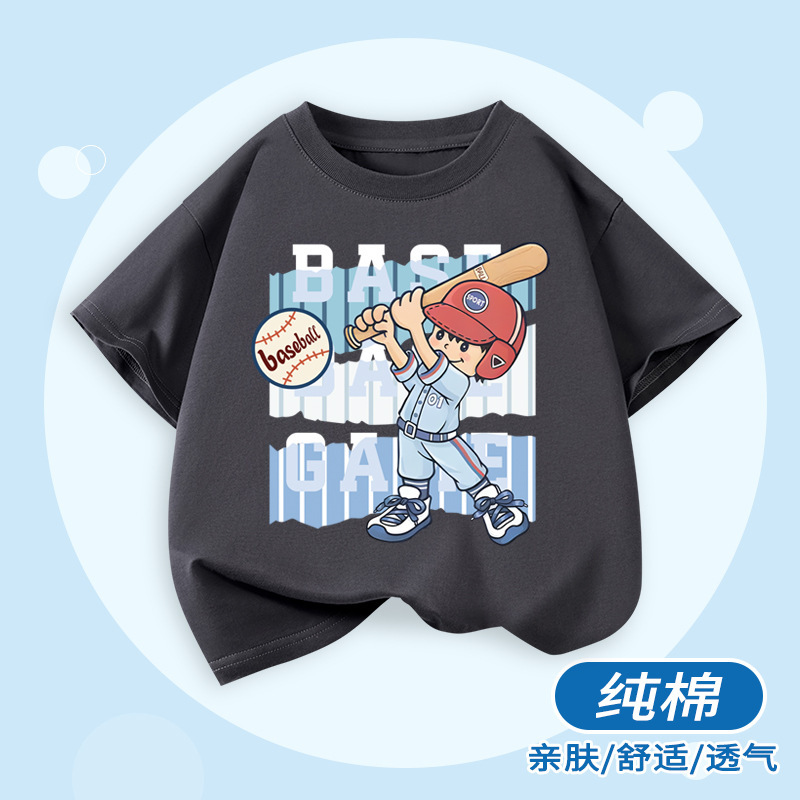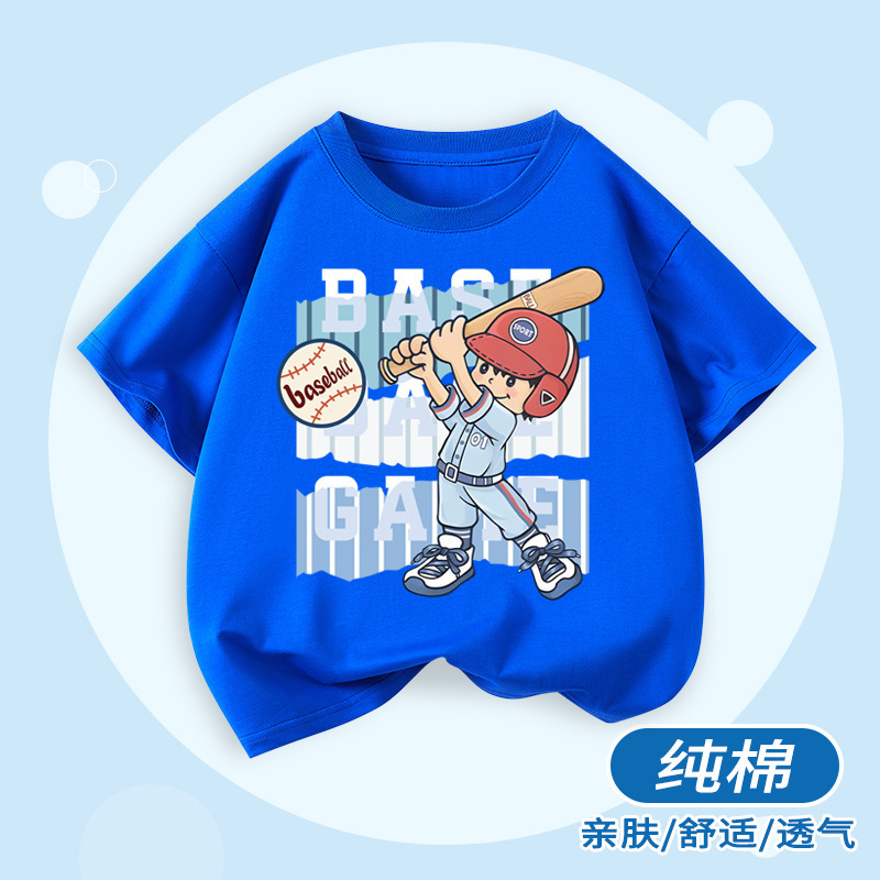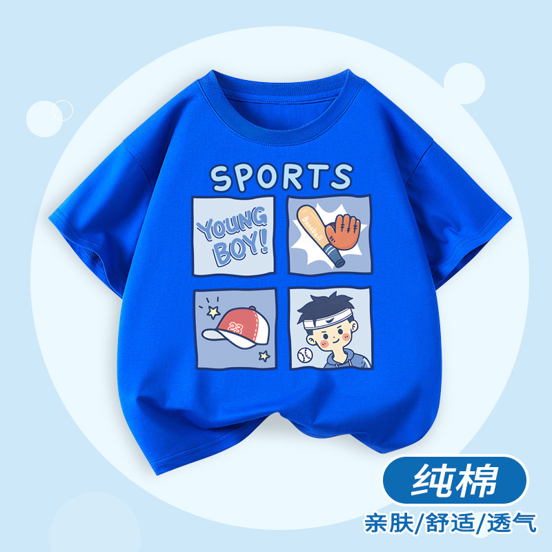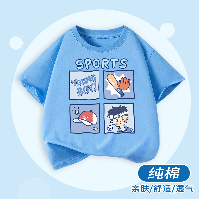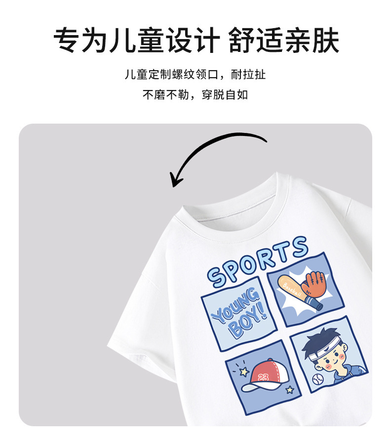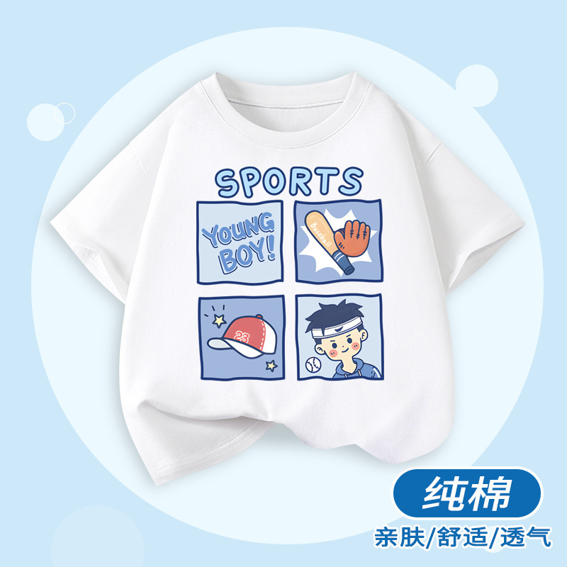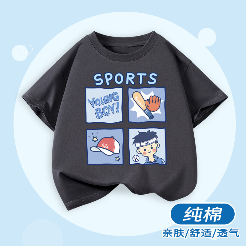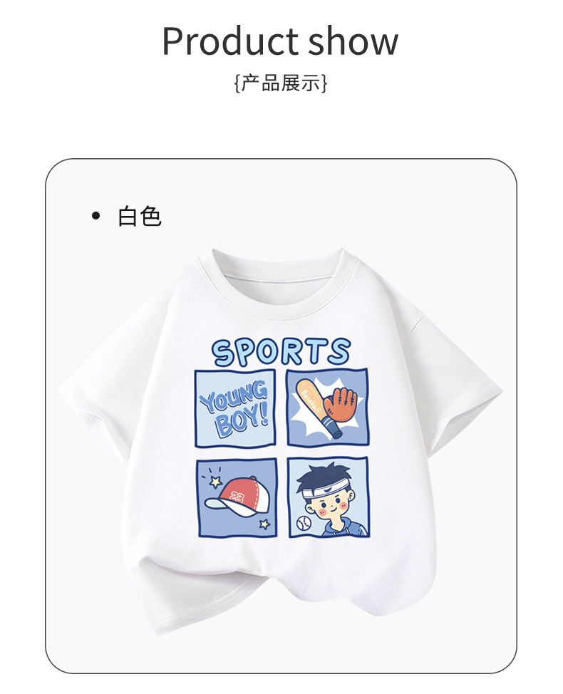 도매 소년 순수 코튼 반팔 티셔츠 인쇄 새로운 봄, 여름 소년 캐주얼 라운드 넥 아동 의류 아동 드롭 배송