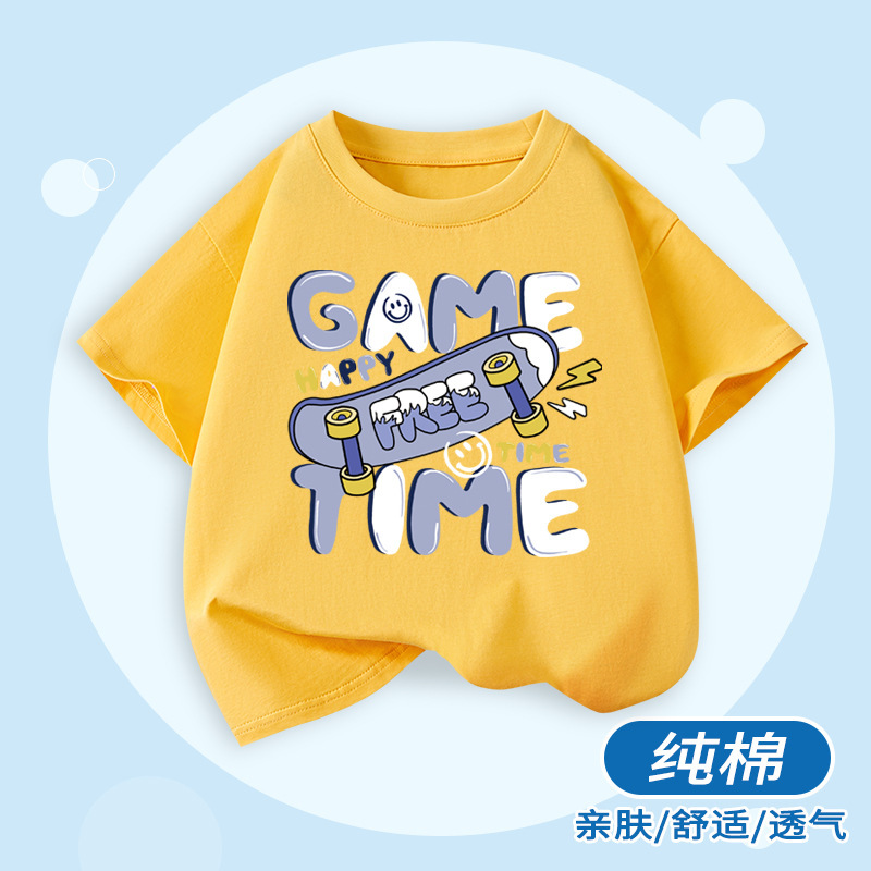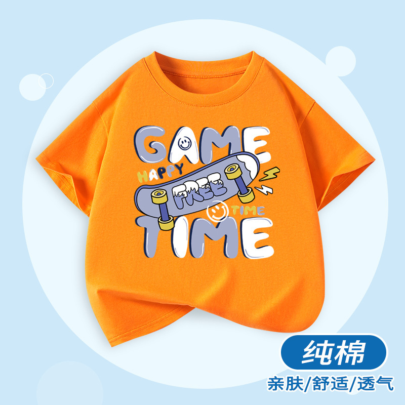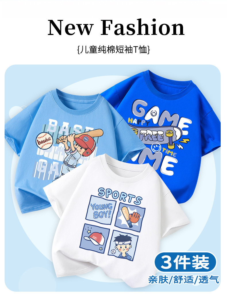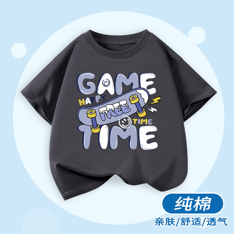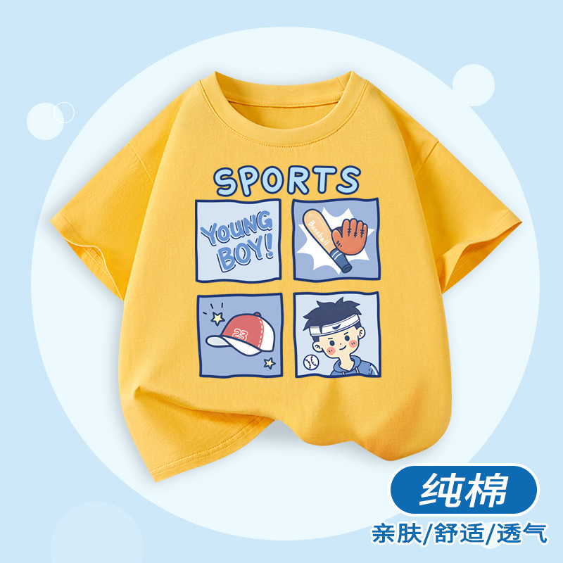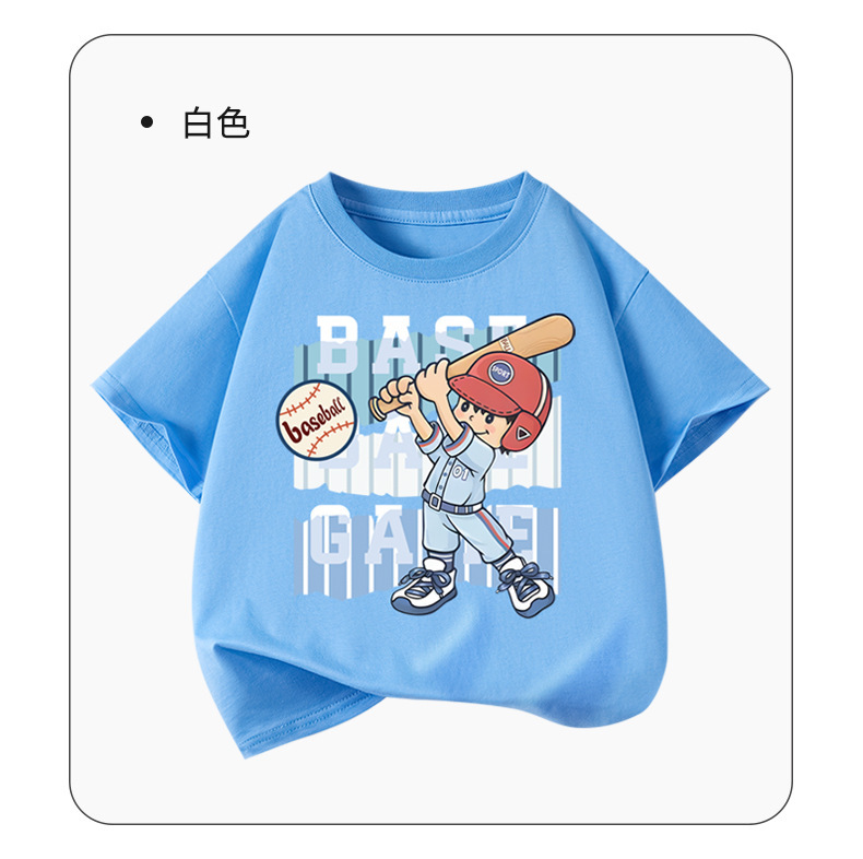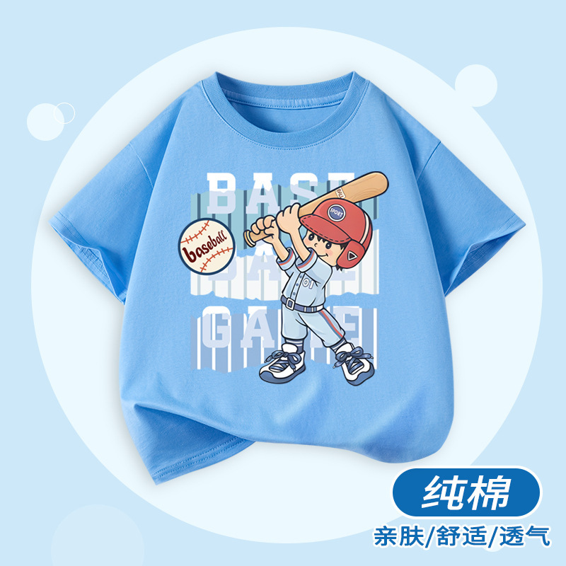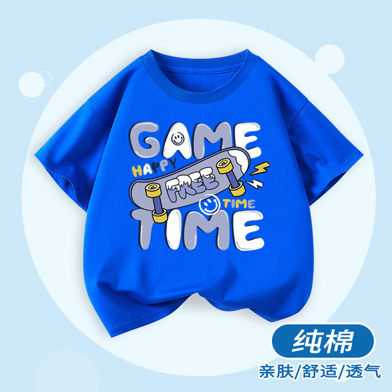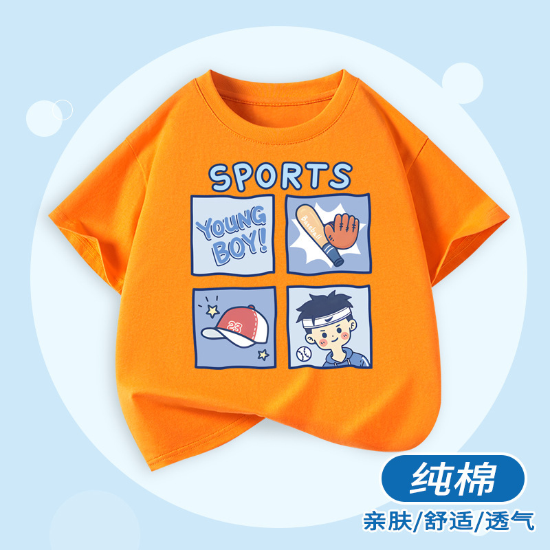 도매 소년 순수 코튼 반팔 티셔츠 인쇄 새로운 봄, 여름 소년 캐주얼 라운드 넥 아동 의류 아동 드롭 배송