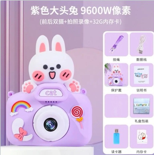 • 보라색 큰 머리 토끼+64G 카드+HD 듀얼 카메라+끈