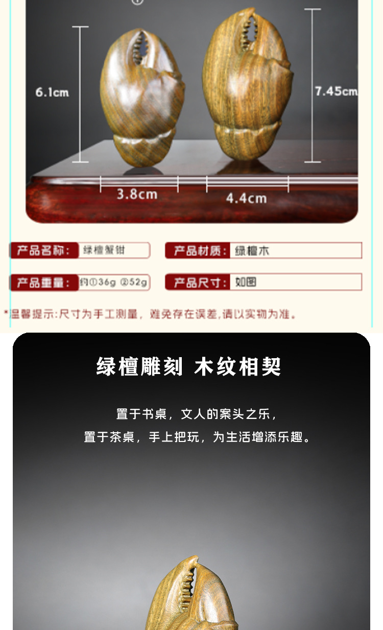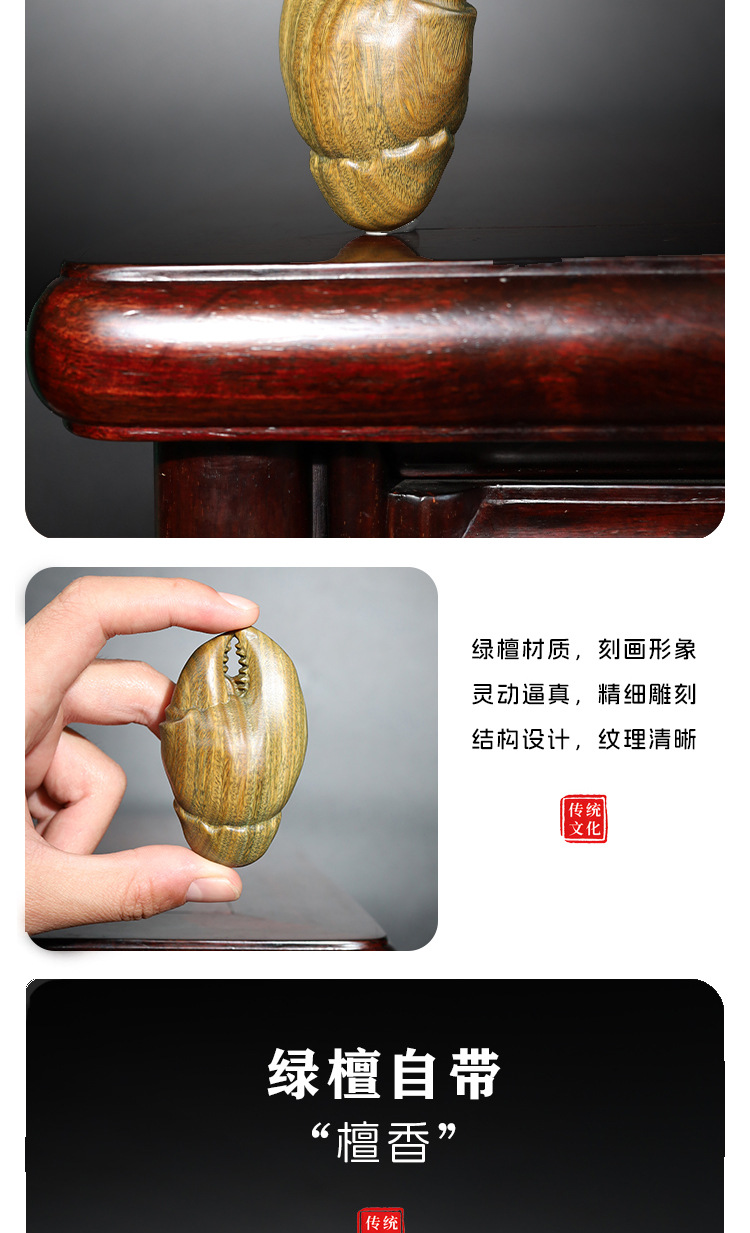 천연 녹색 백단향 재미 있고 창의적인 손으로 놀기 게 집게 플레이 장식품 맞춤형 단단한 나무 데스크탑 장식품스토어 가기