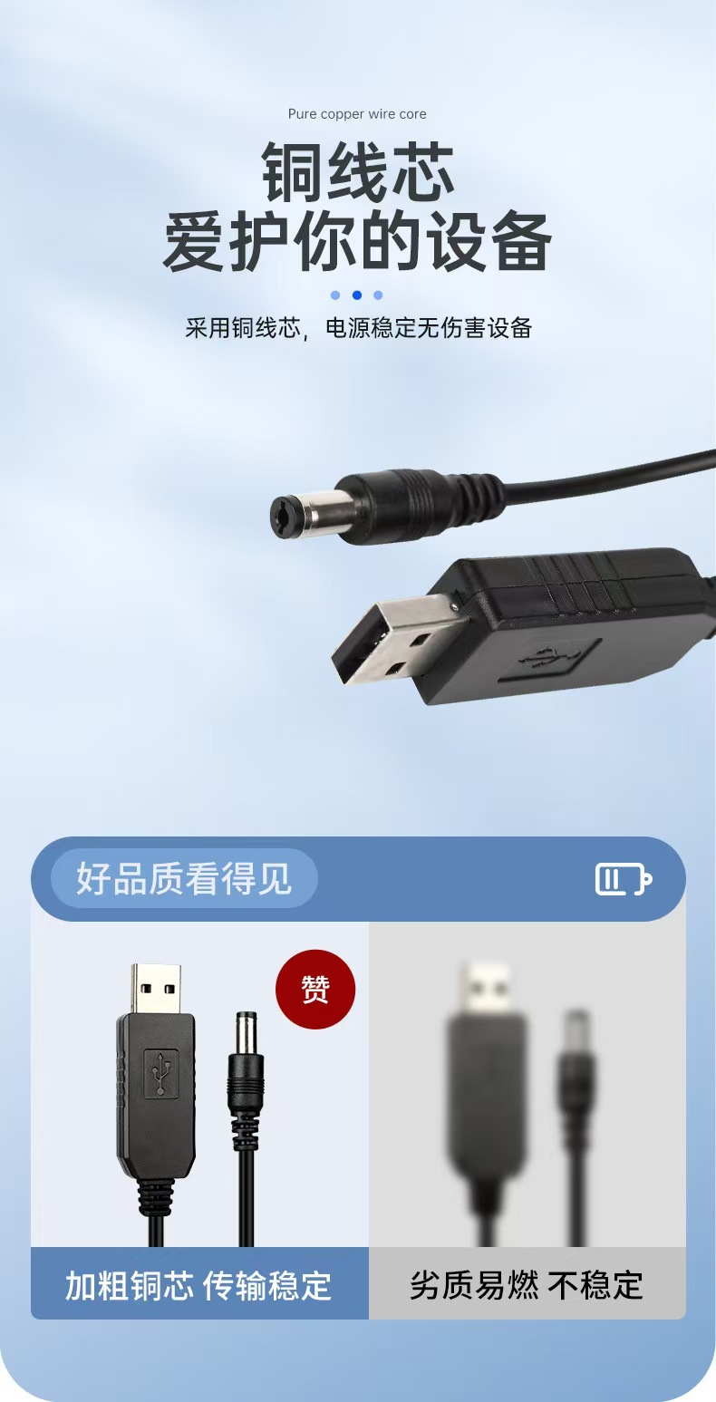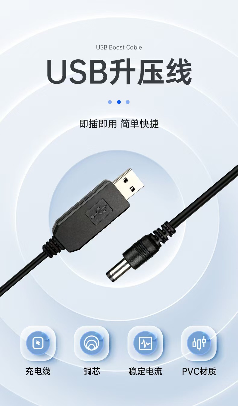 USB 부스트 케이블 5V ~ 12V 변압기 케이블 소형 가전 제품용 1m 전원 케이블 5.5mmDC 인터페이스 전원 공급 장치 케이블스토어 가기