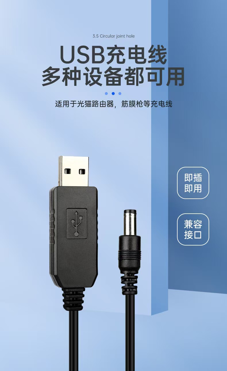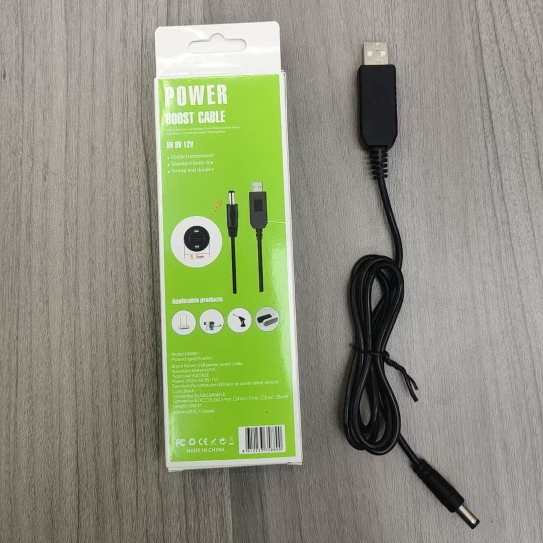 • 포장이 없는 1m 검정색 USB 부스트 케이블 DC5.5 단일 케이블