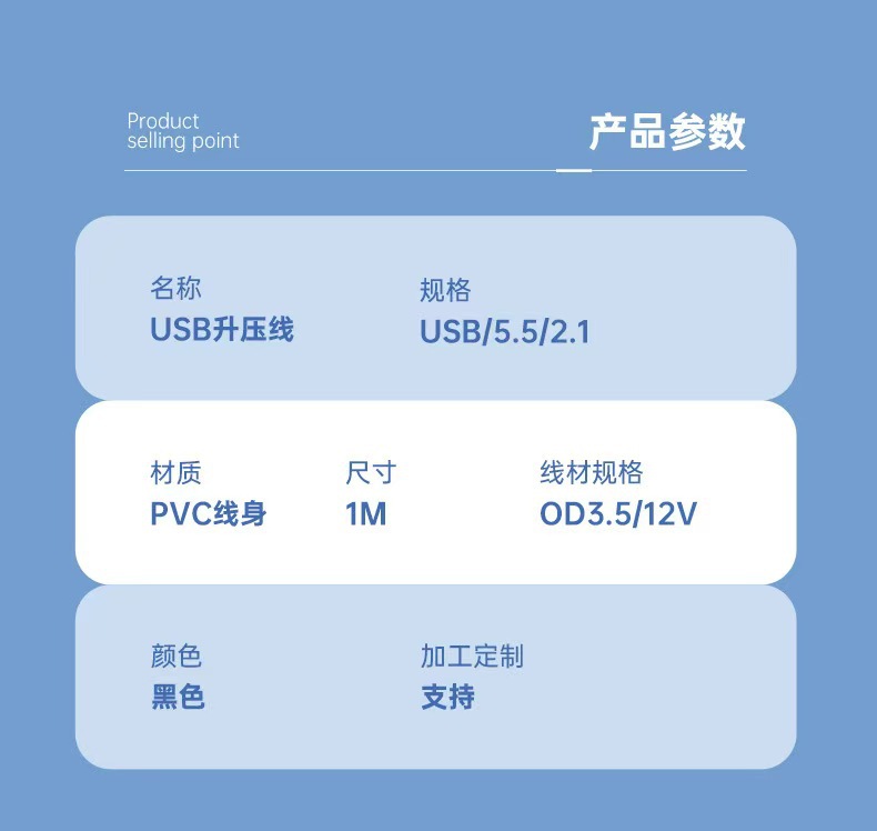 USB 부스트 케이블 5V ~ 12V 변압기 케이블 소형 가전 제품용 1m 전원 케이블 5.5mmDC 인터페이스 전원 공급 장치 케이블