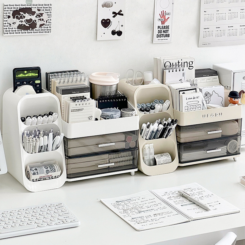 데스크탑 수납함 서랍형 학생 사무실 책상 문구 대용량 수납 선반 다기능 탁상용 펜 홀더