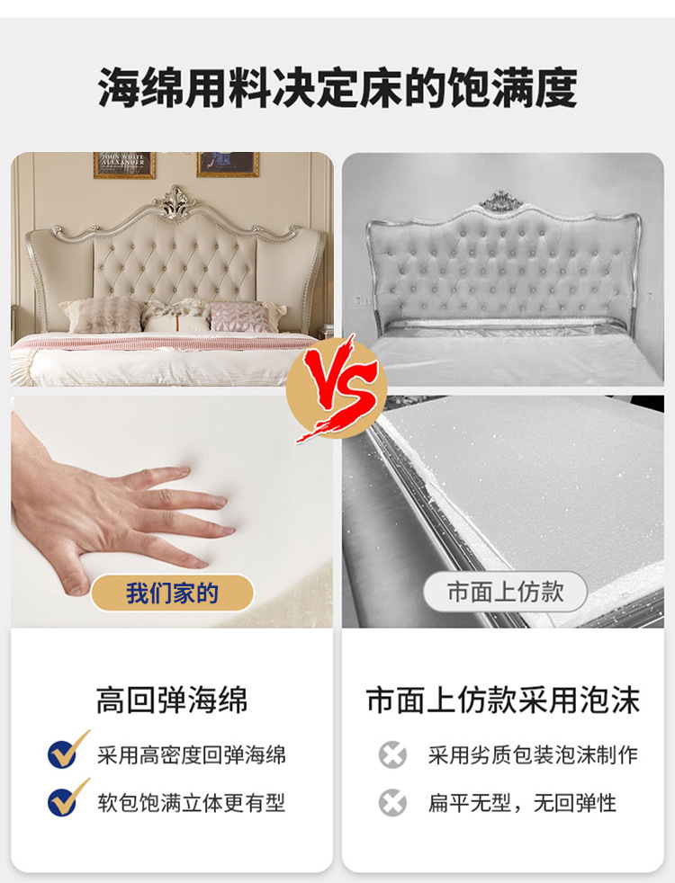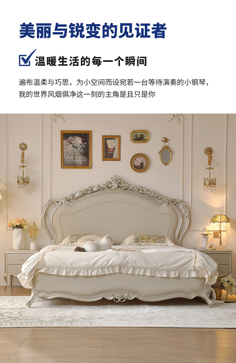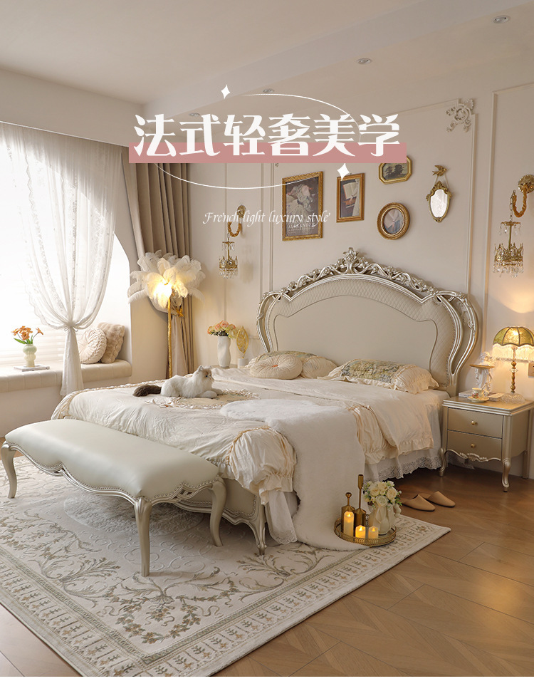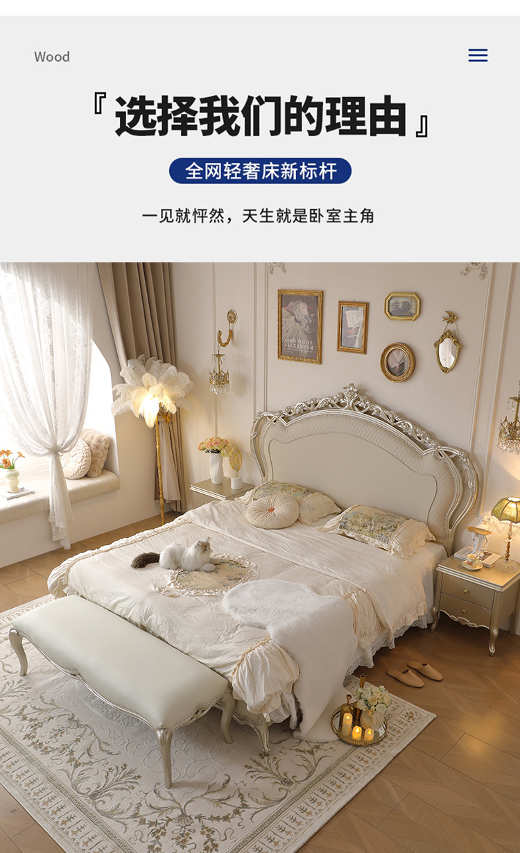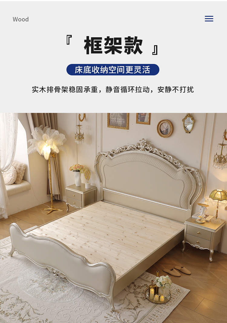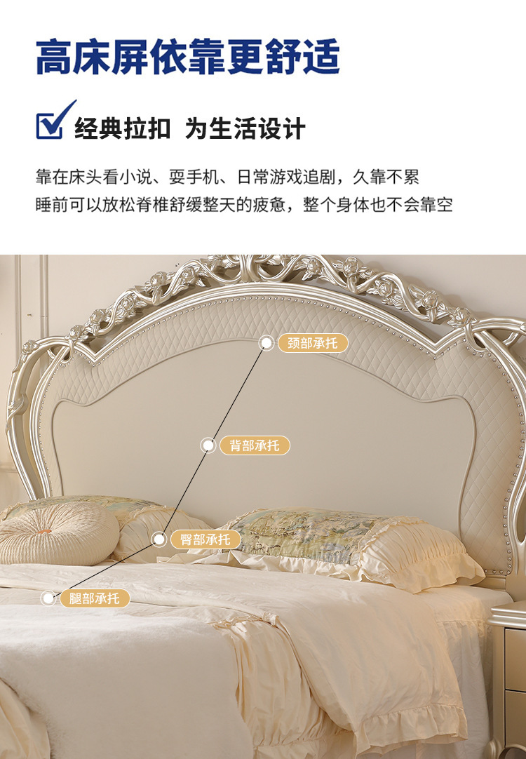 미국 고급 단단한 나무 침대 유럽 스타일의 궁전 단단한 나무 조각 1.8m 더블 킹 사이즈 침대 로맨틱 침실 공주 침대 웨딩 침대스토어 가기