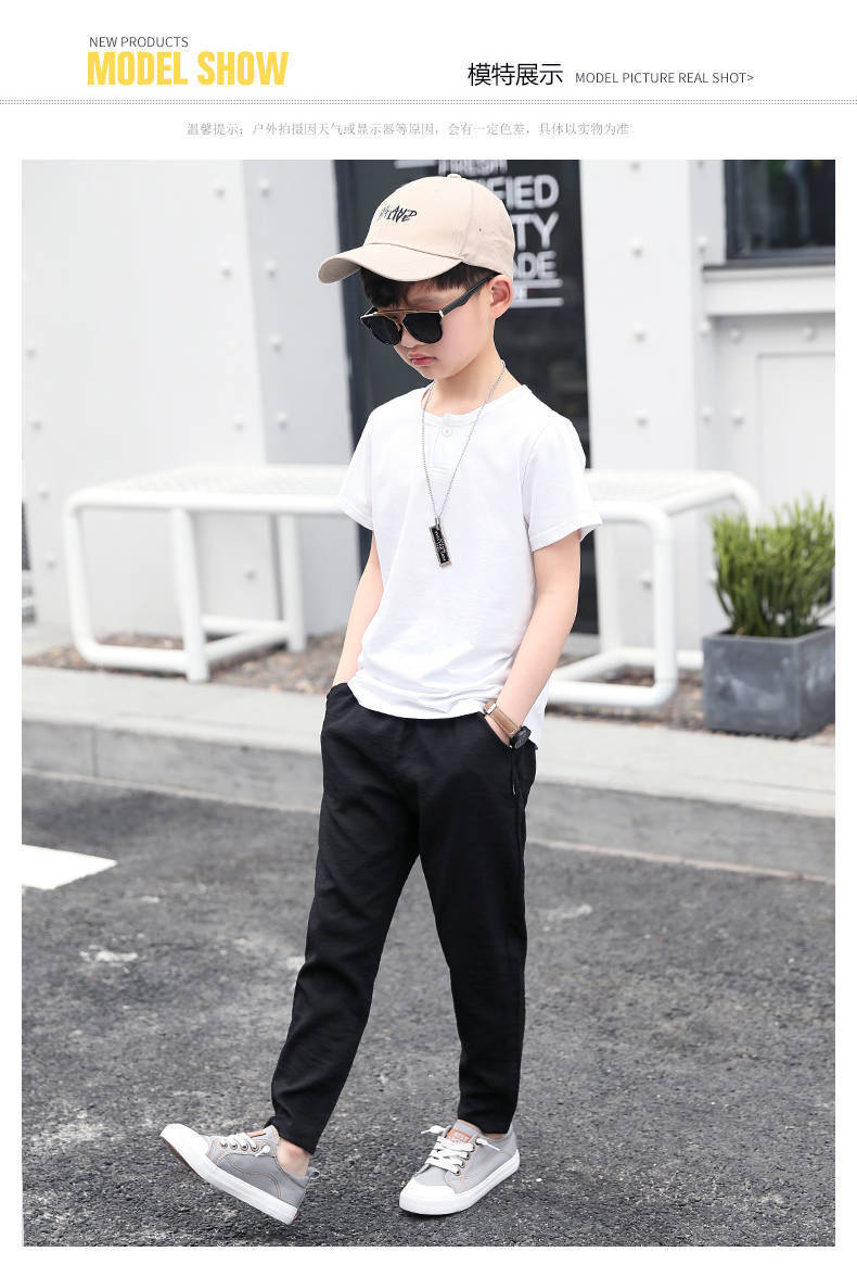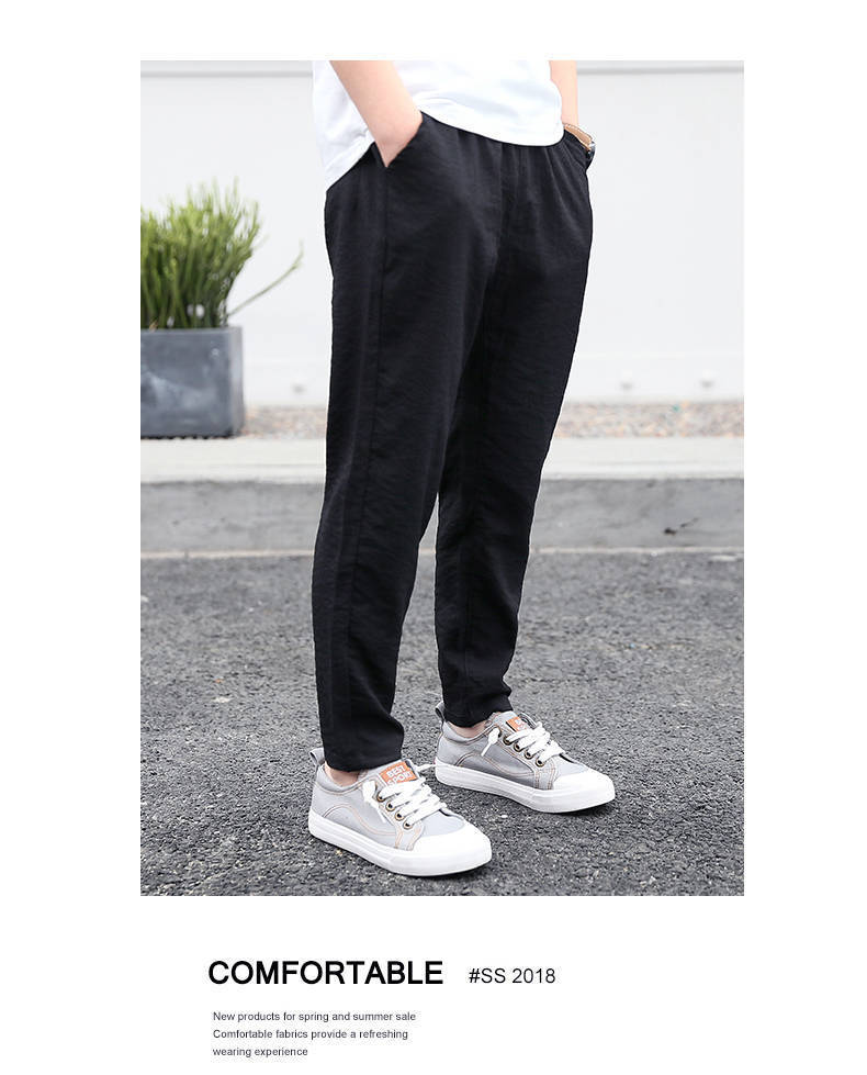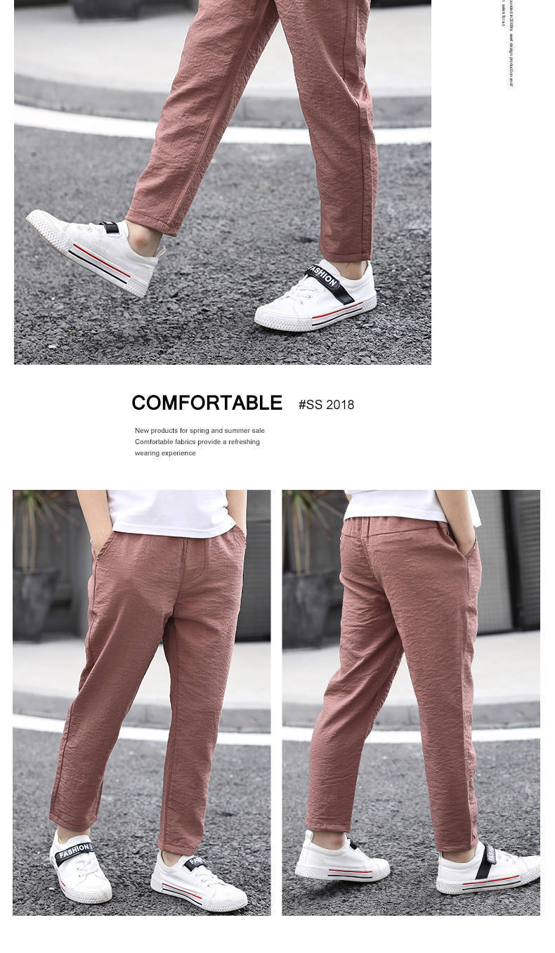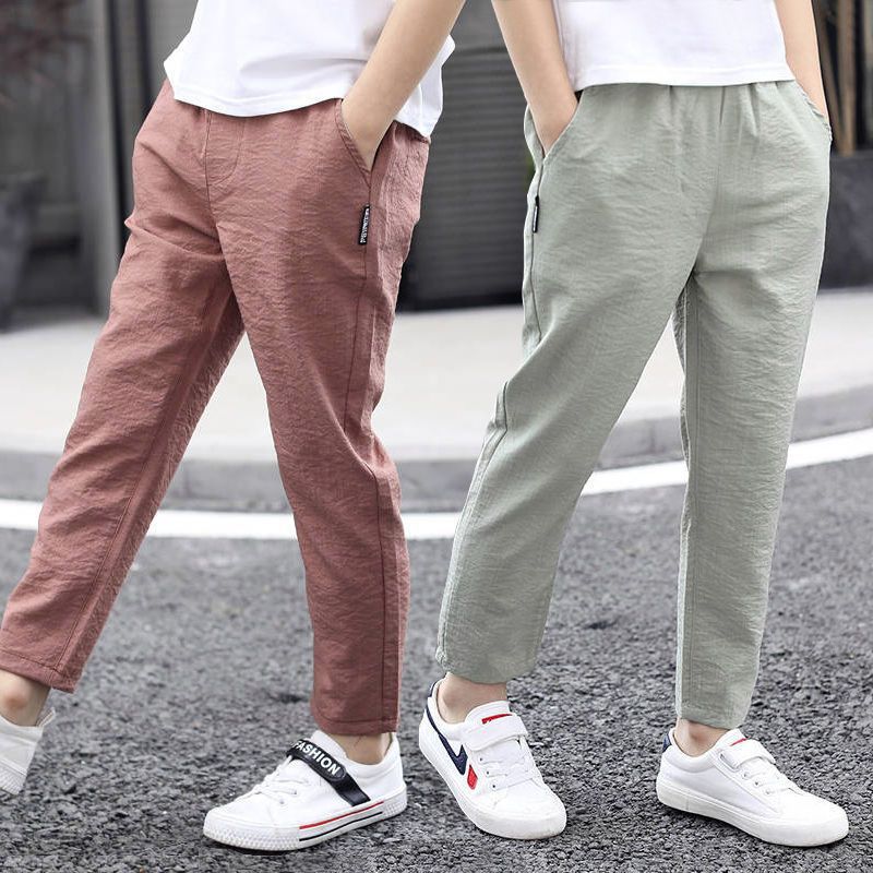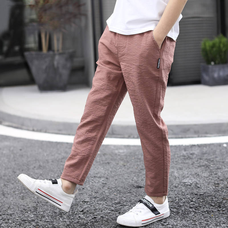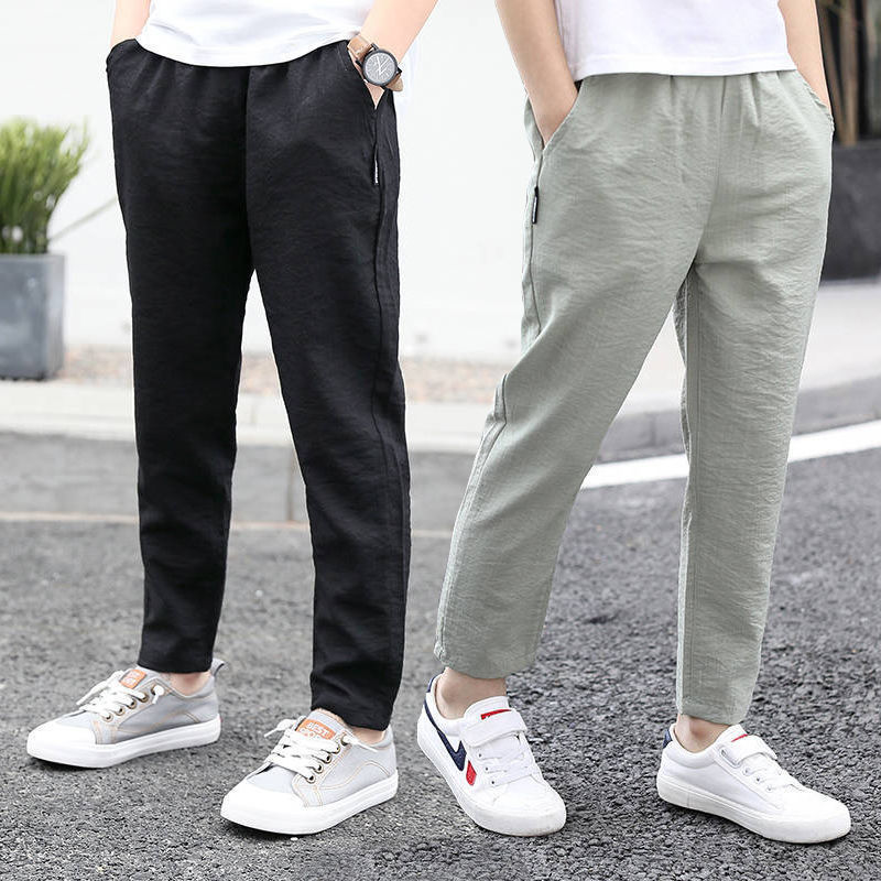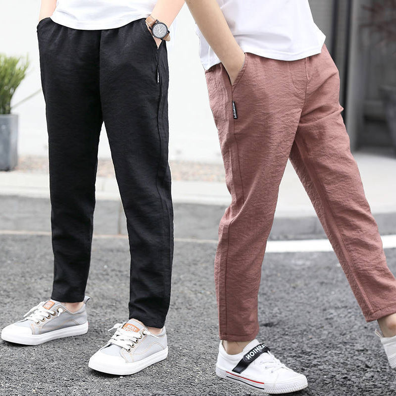 소년 얇은 면 및 린넨 바지 여름과 가을 어린이 캐주얼 바지 중대형 아동복 모기 방지 바지 어린 소년 바지 여름