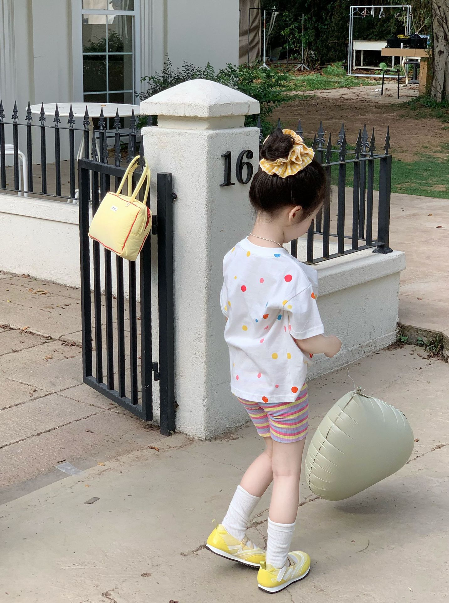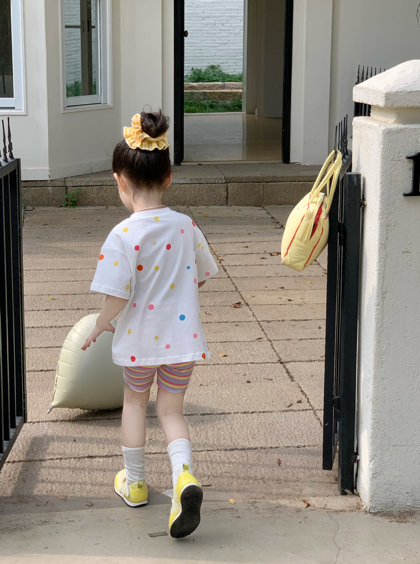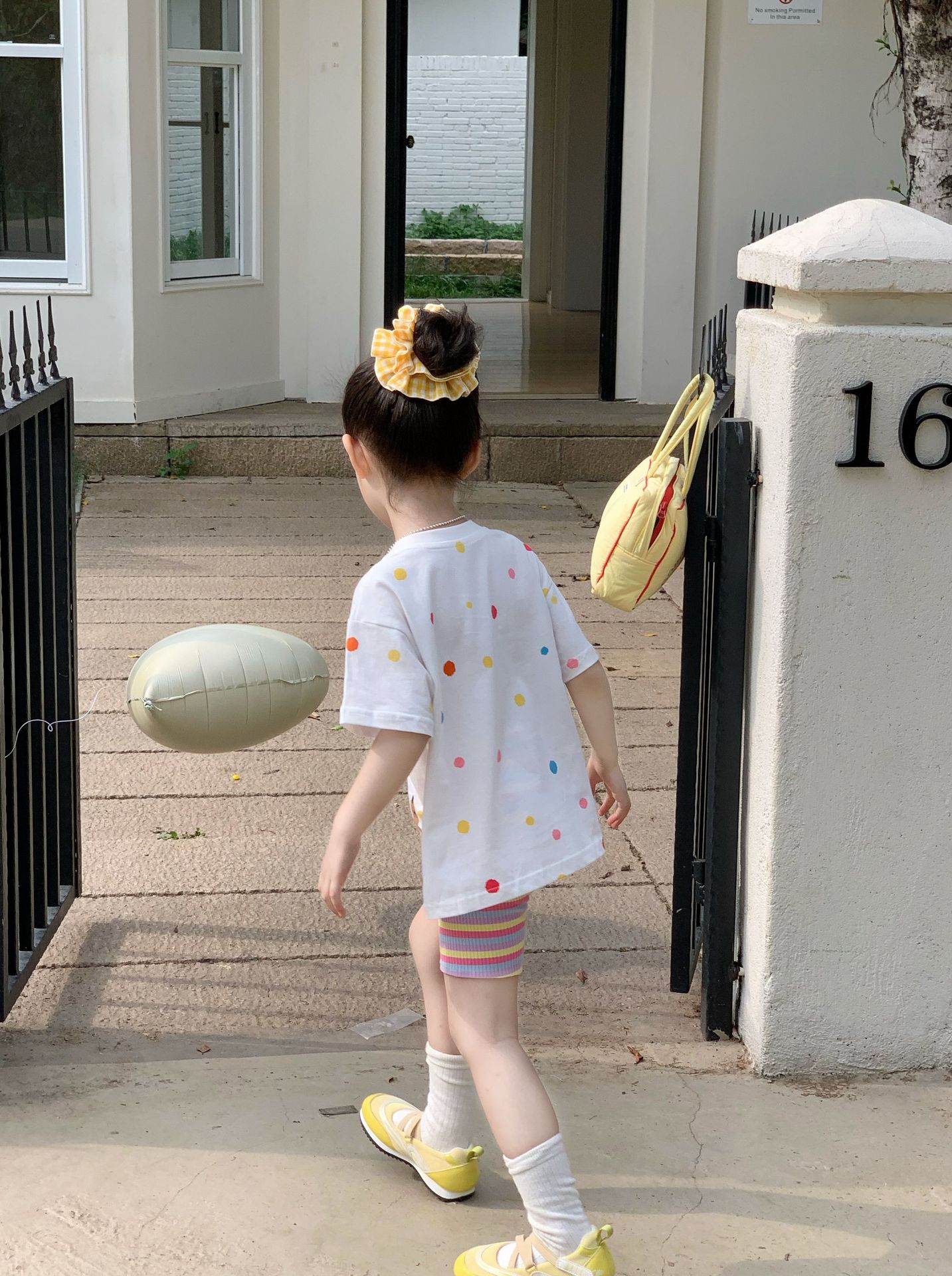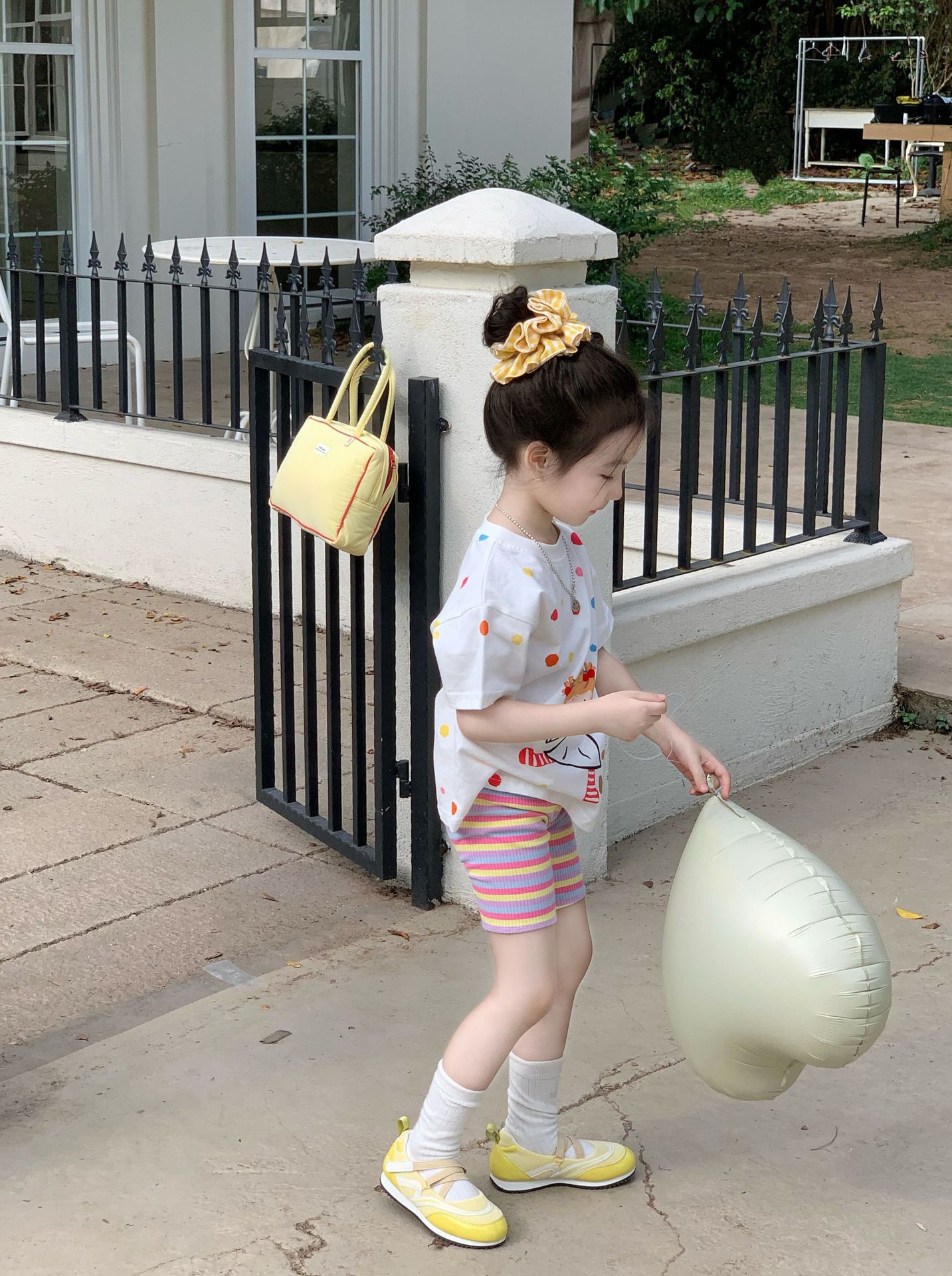 소녀 컬러 폴카 도트 티셔츠 중간 길이 2025 여름 아기 소녀를위한 새로운 한국식 만화 느슨한 스타일 탑스토어 가기