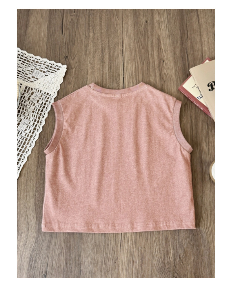 소년 민소매 티셔츠 여름 착용 2025 새로운 어린이 여름 한국 캐주얼 조끼 어린이 얇은 양복 조끼 유행 t스토어 가기