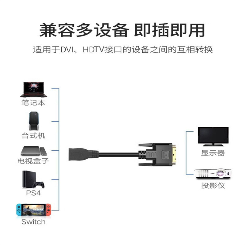 HDMI-DVI 변환 케이블 남성-여성 어댑터 1080P 고화질 양방향 상호 변환 컴퓨터 TV 케이블